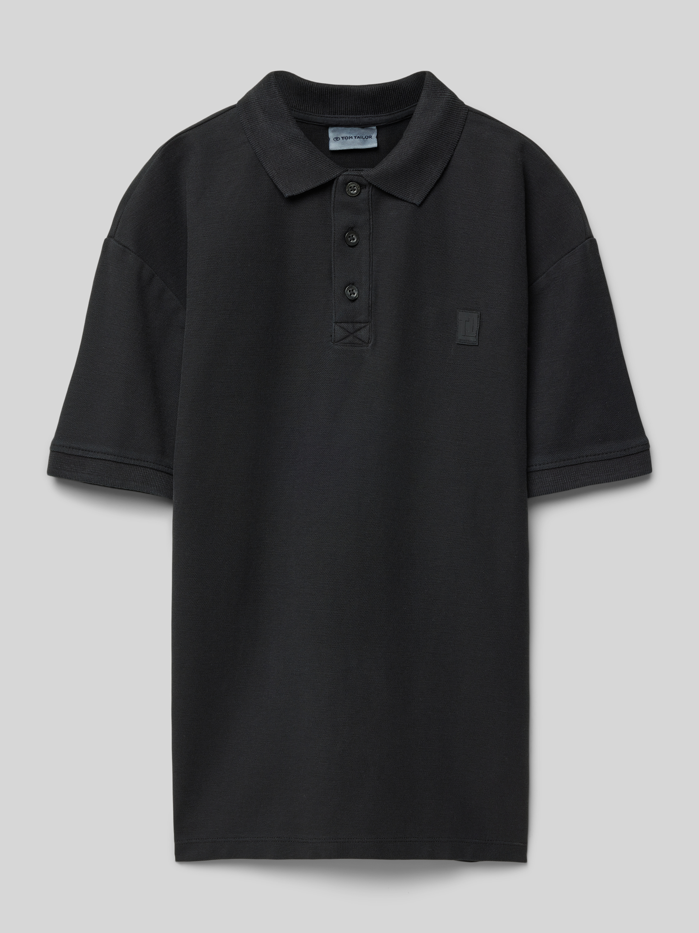 Koszulka polo o kroju oversized z piki - czarny