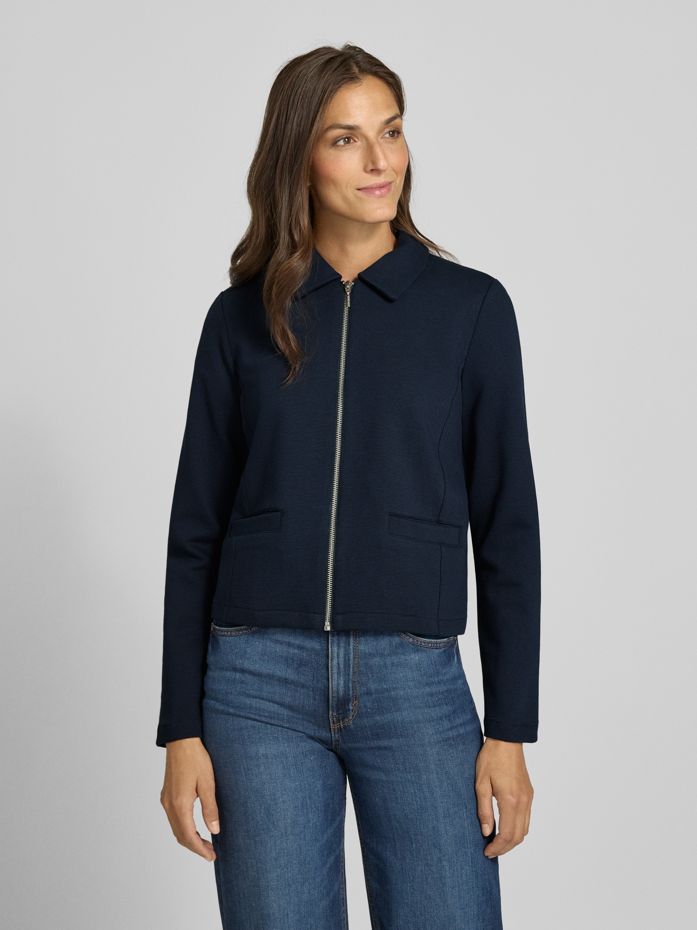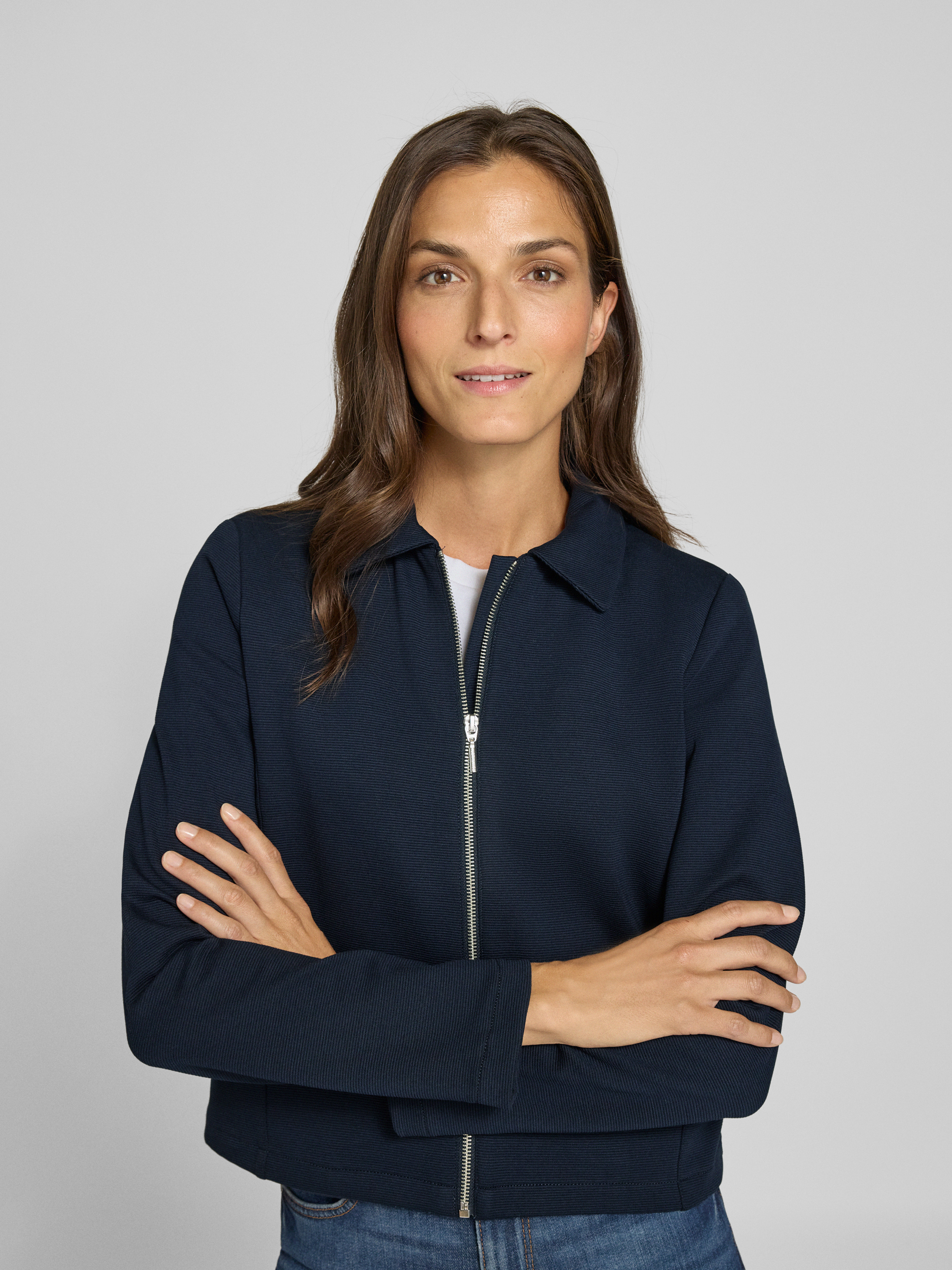 Kurtka żakietowa o kroju regular fit z mieszanki bawełny - granatowy