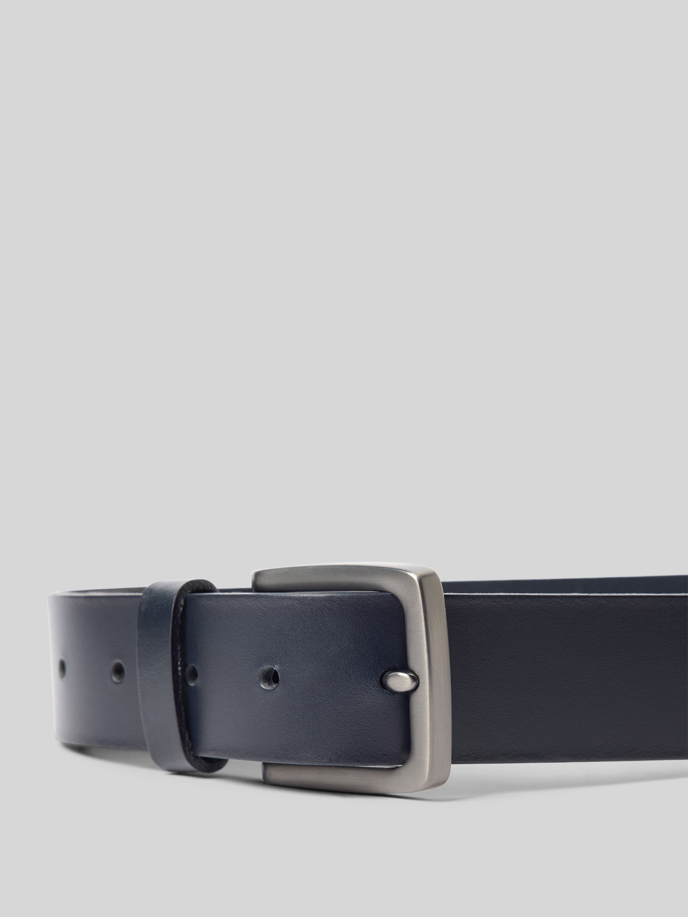 Pasek skórzany ze sprzączką model ‘Scott’ - granatowy