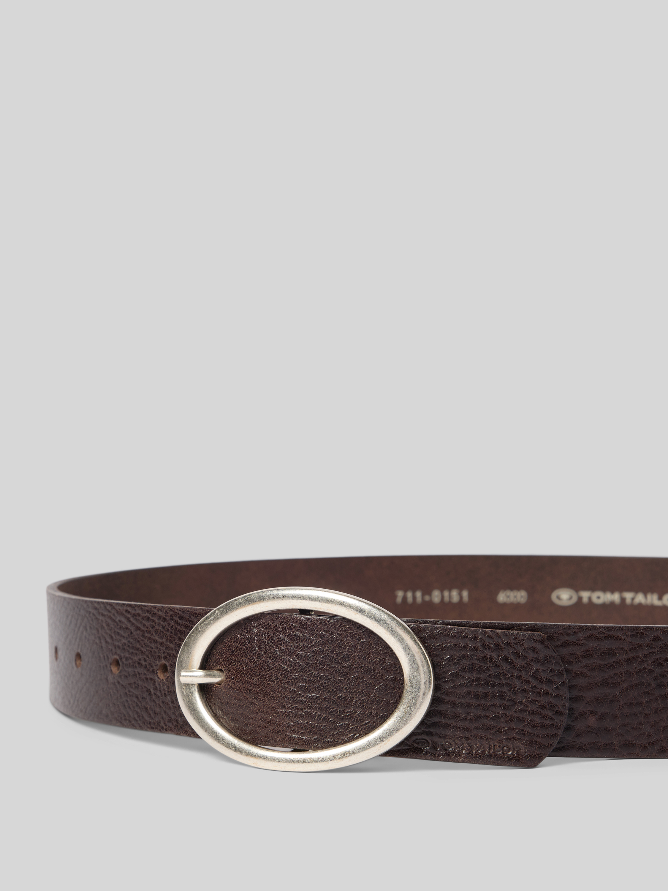 Tom TailorPasek z gładkiej skóry - ciemnobrązowy