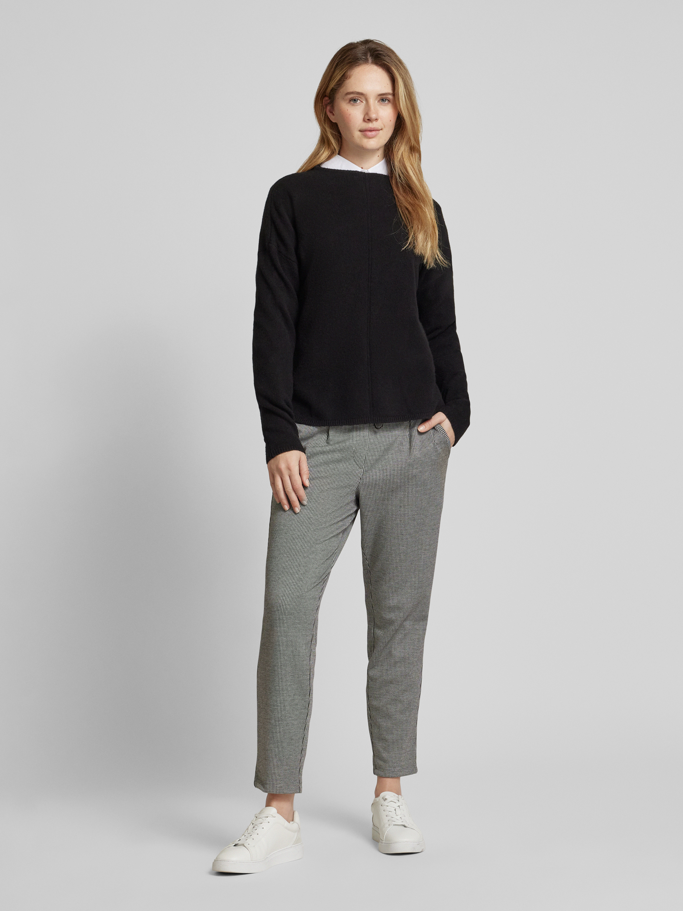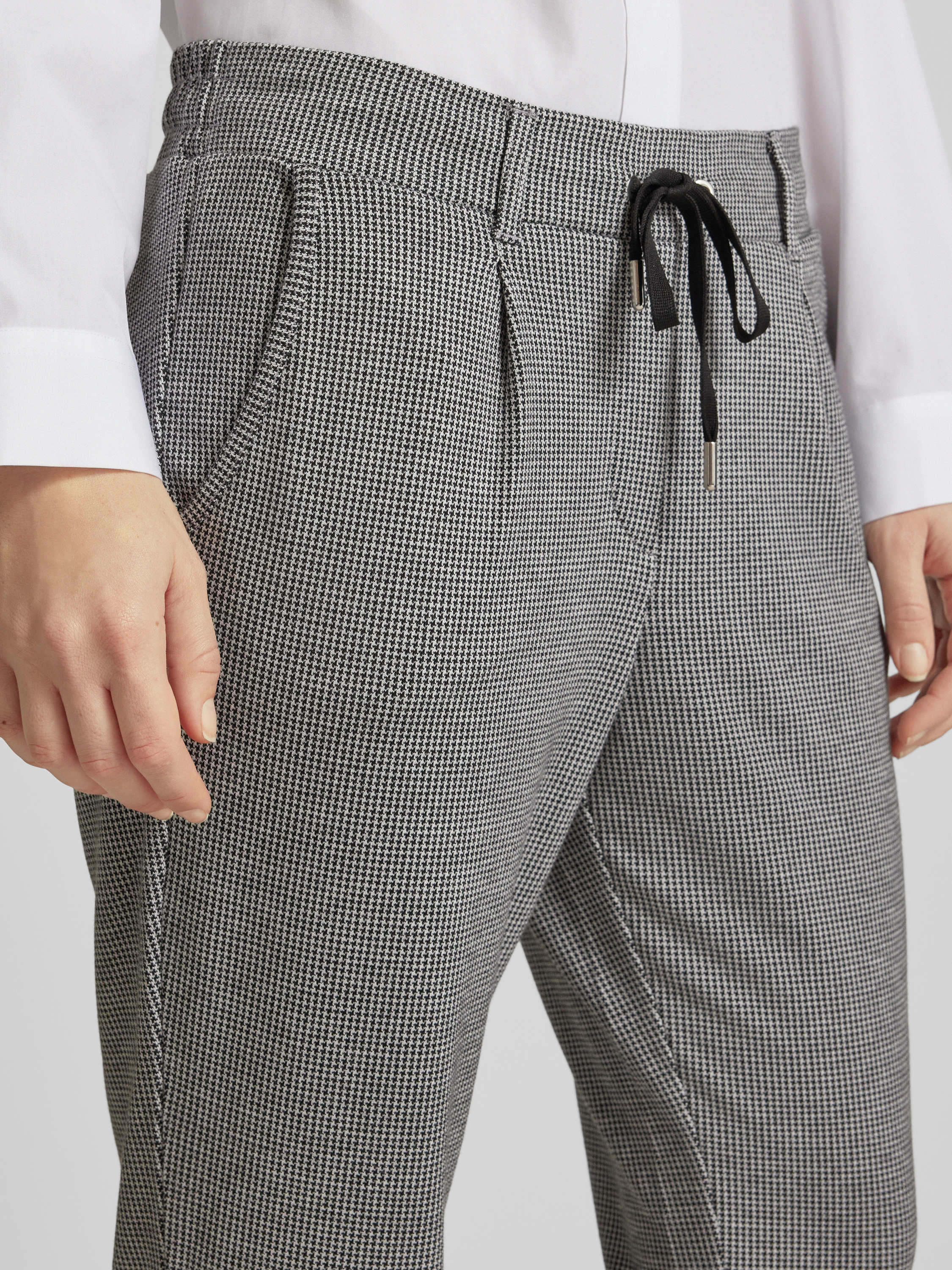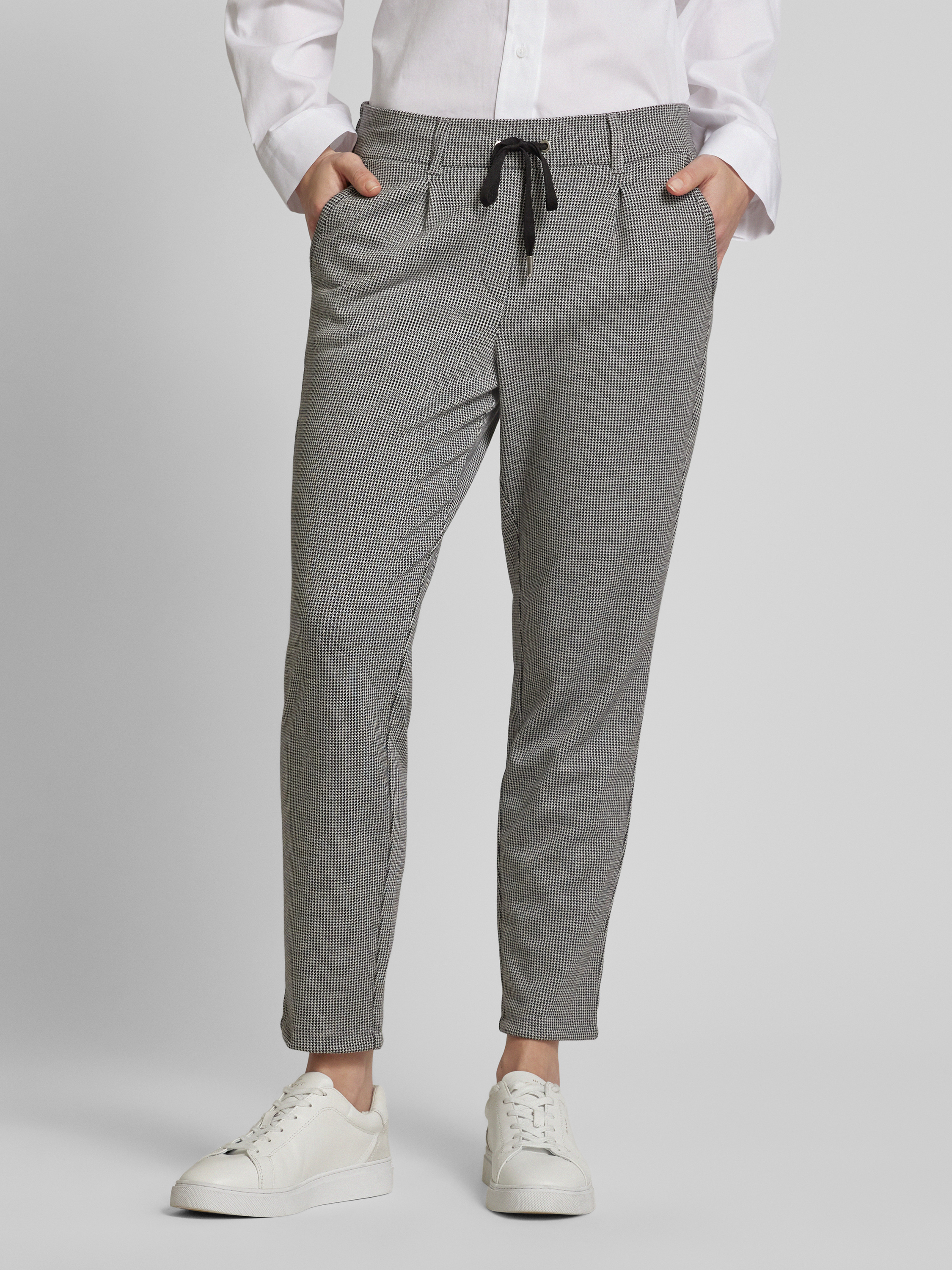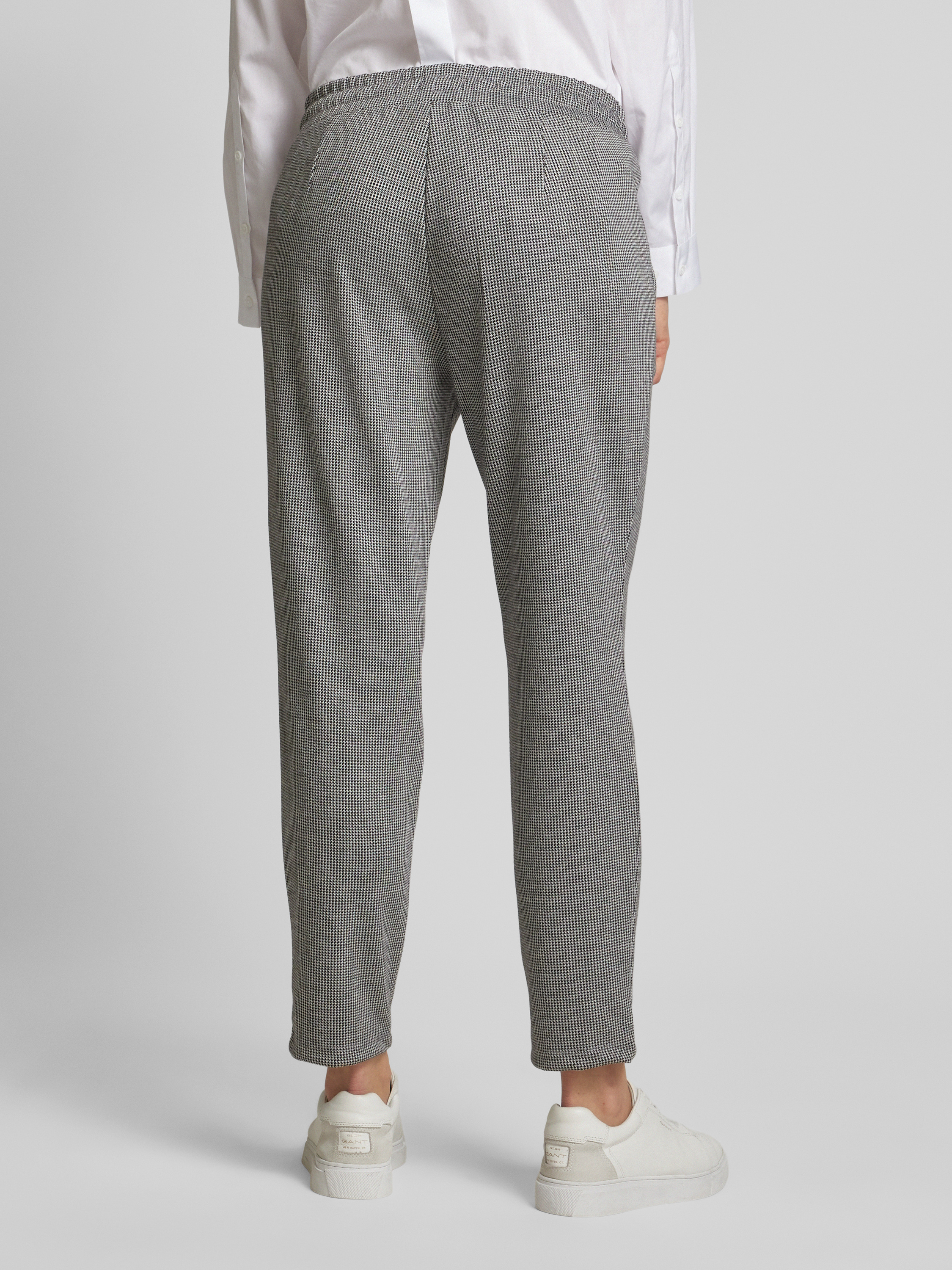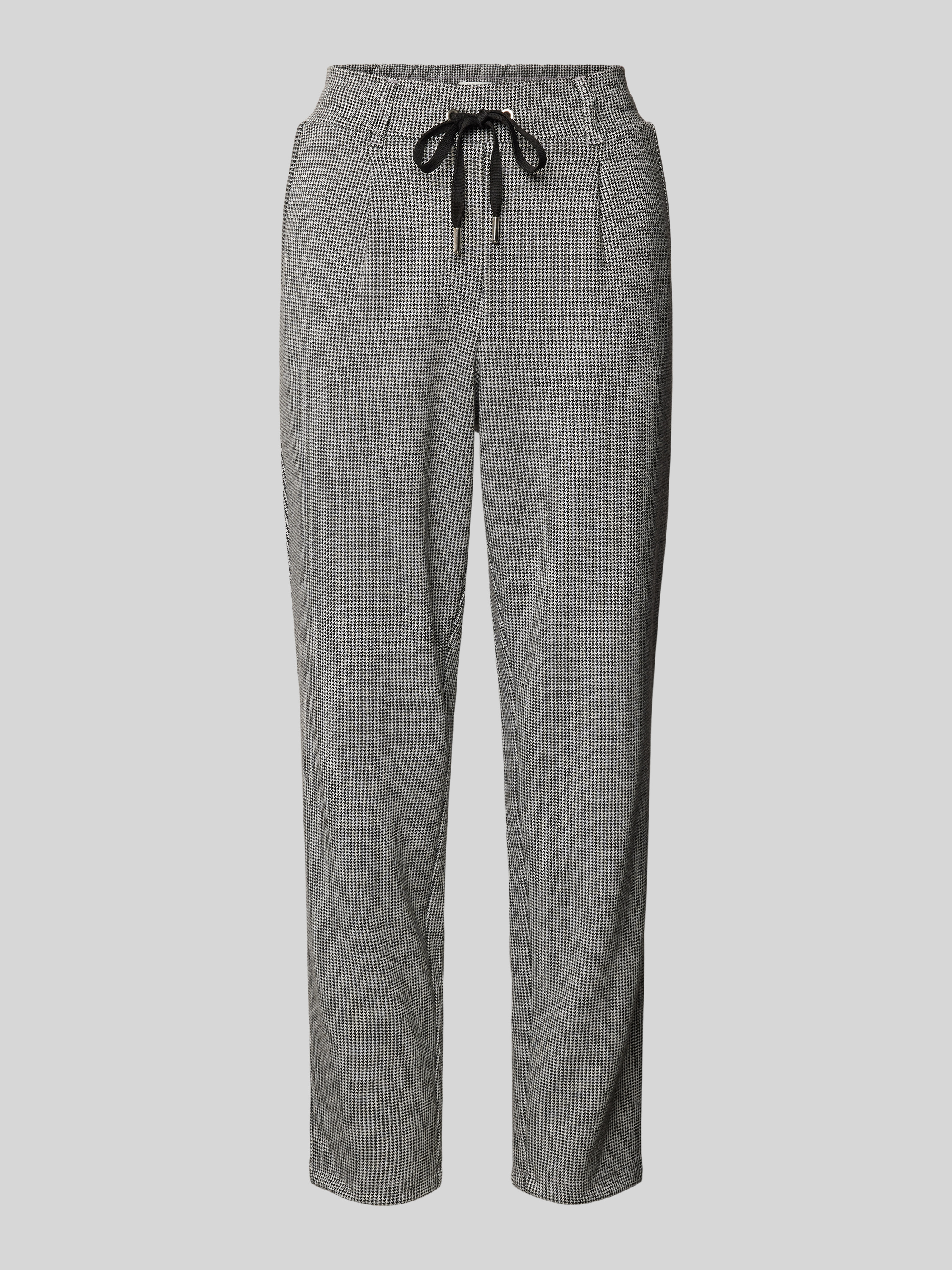 Spodnie materiałowe o kroju regular fit ze wzorem w pepitkę i tunelem - czarny