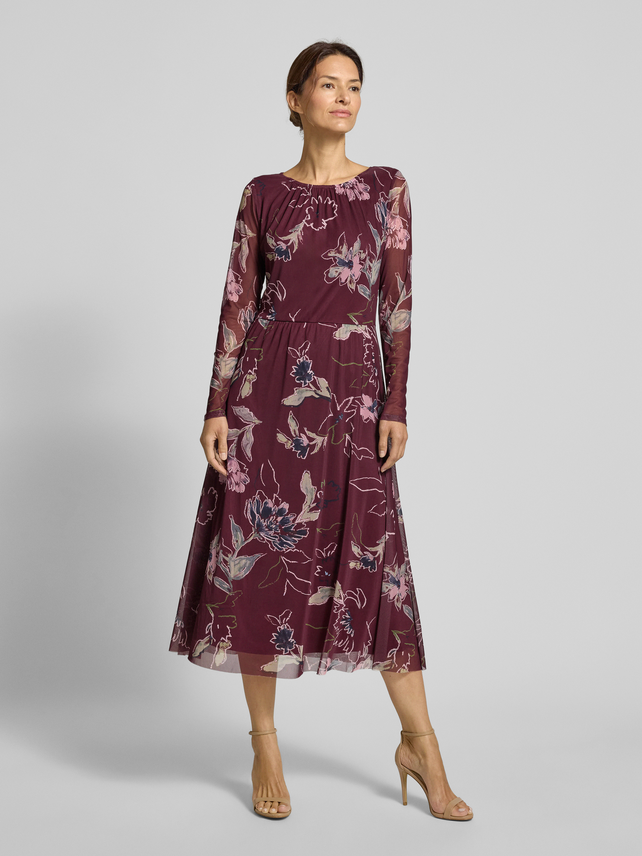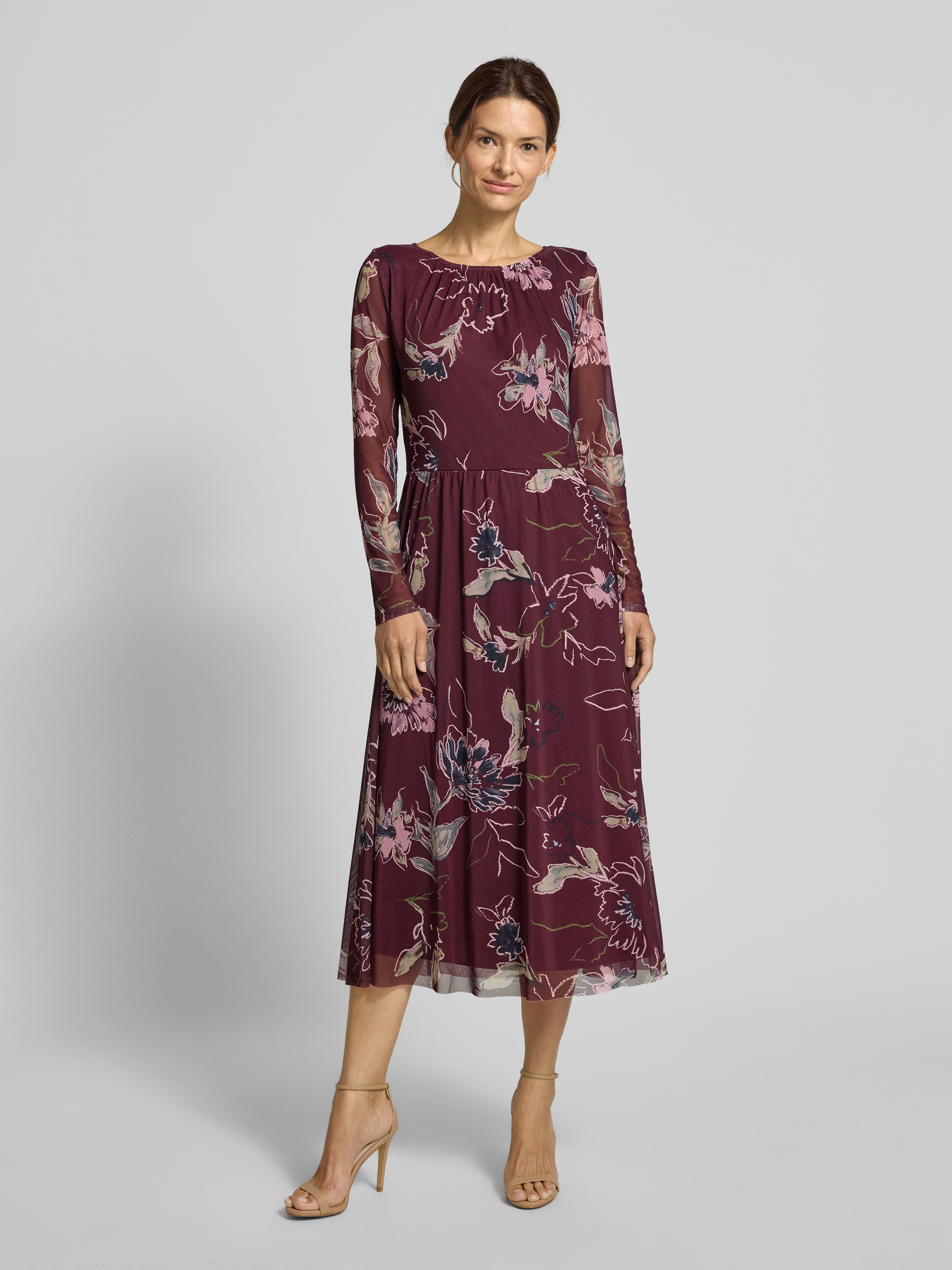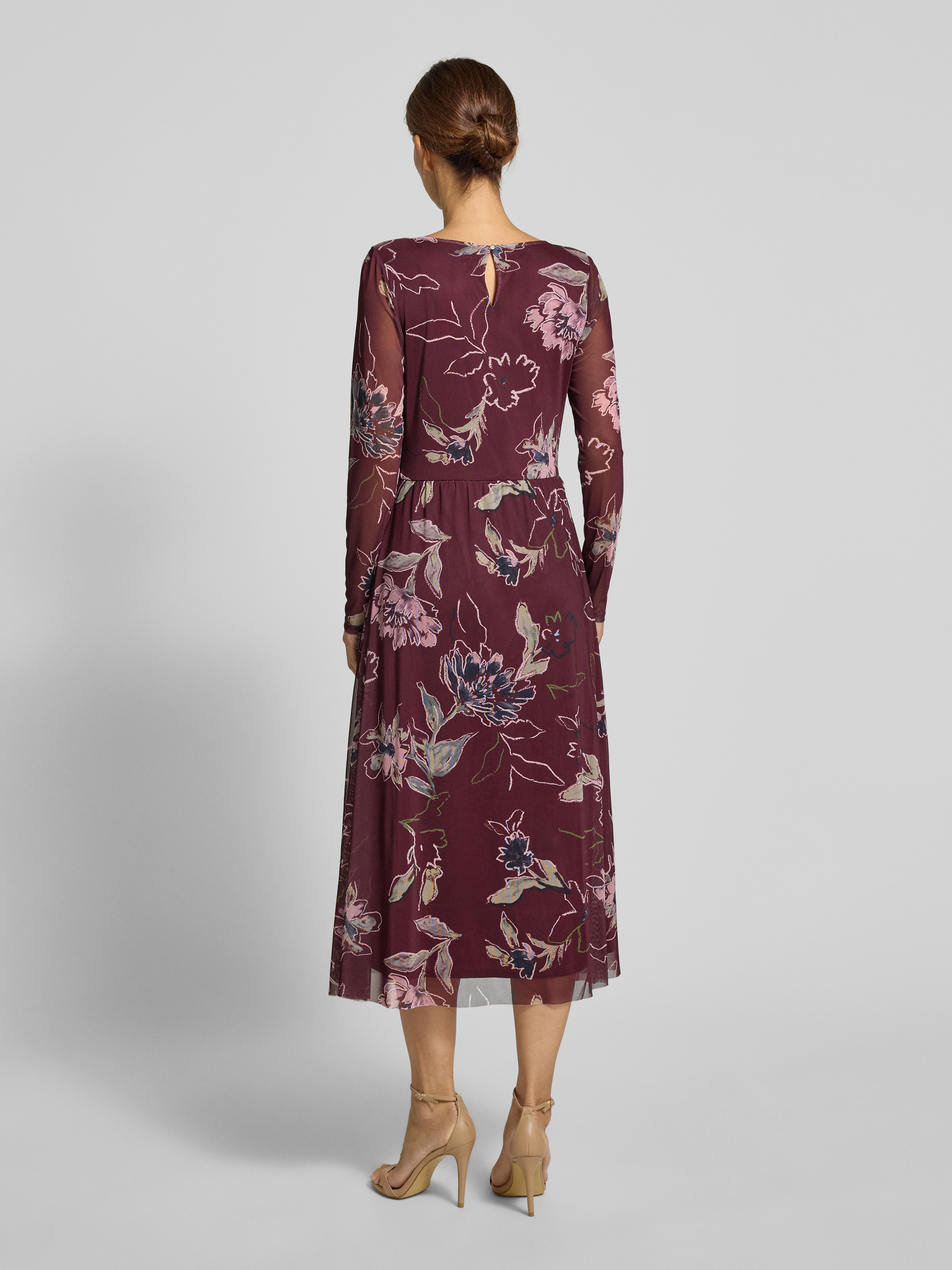 Tom TailorSukienka casualowa taliowana z siateczki - bordowy