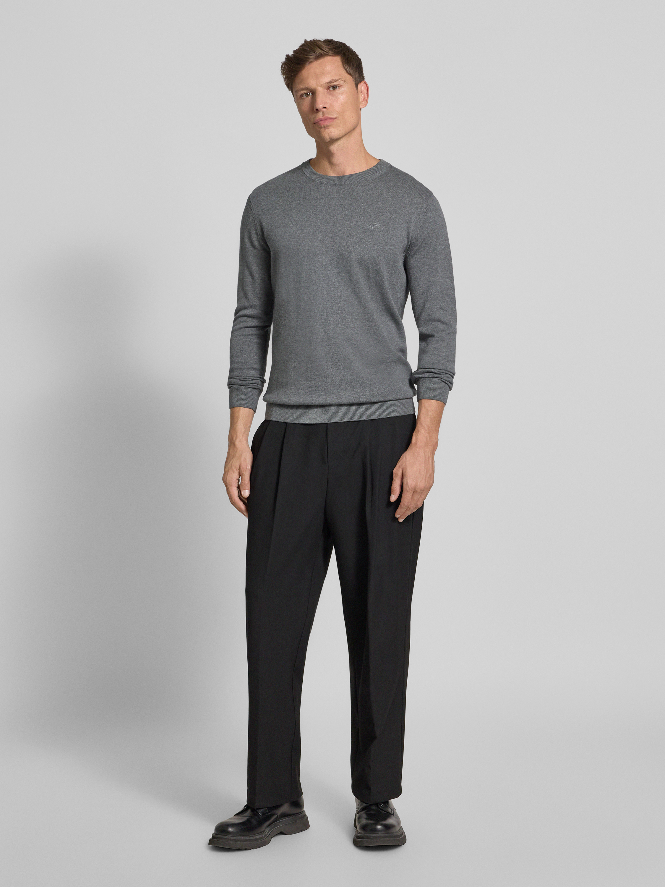 Sweter z dzianiny o kroju regular fit z czystej bawełny - antracytowy
