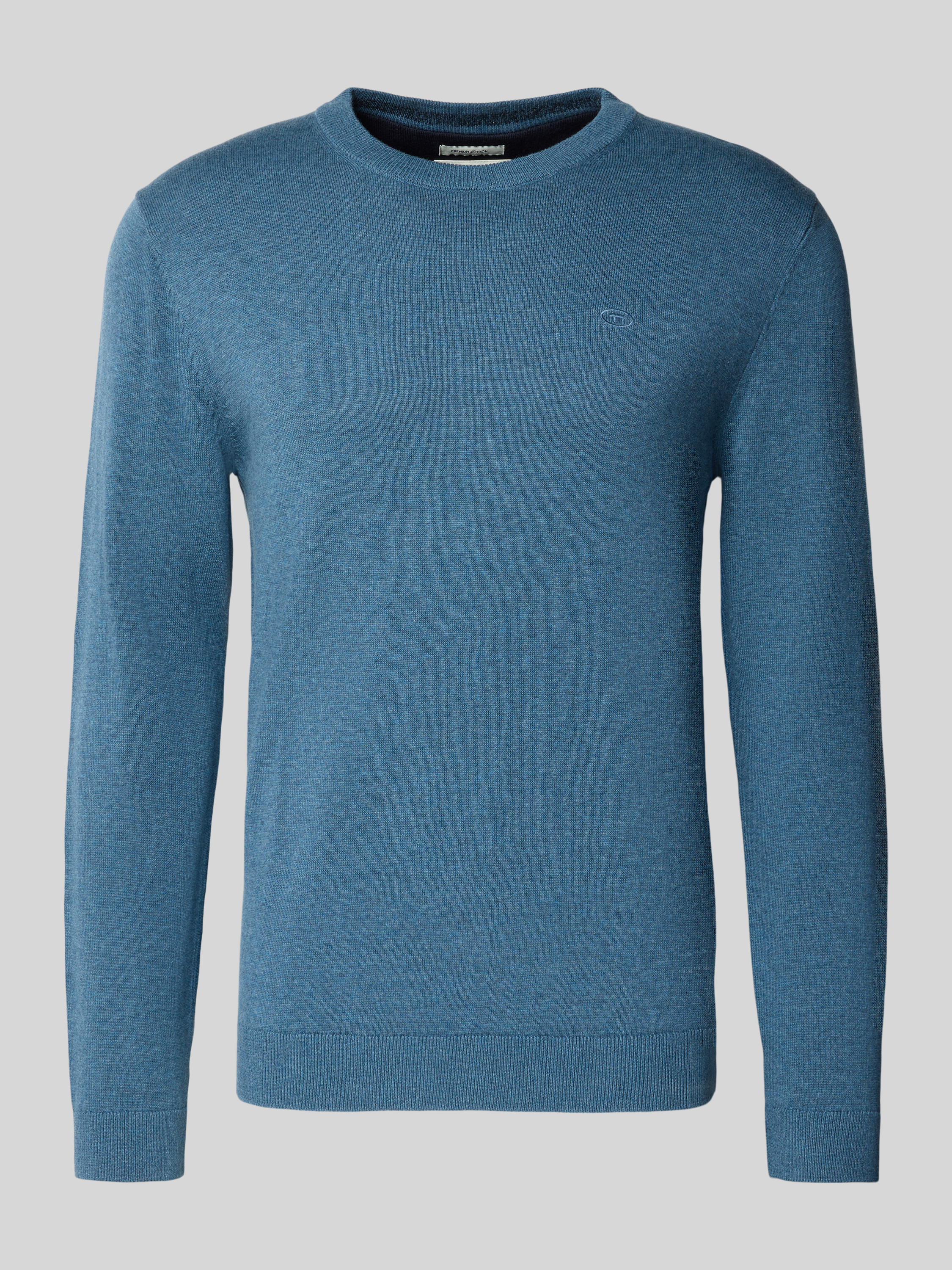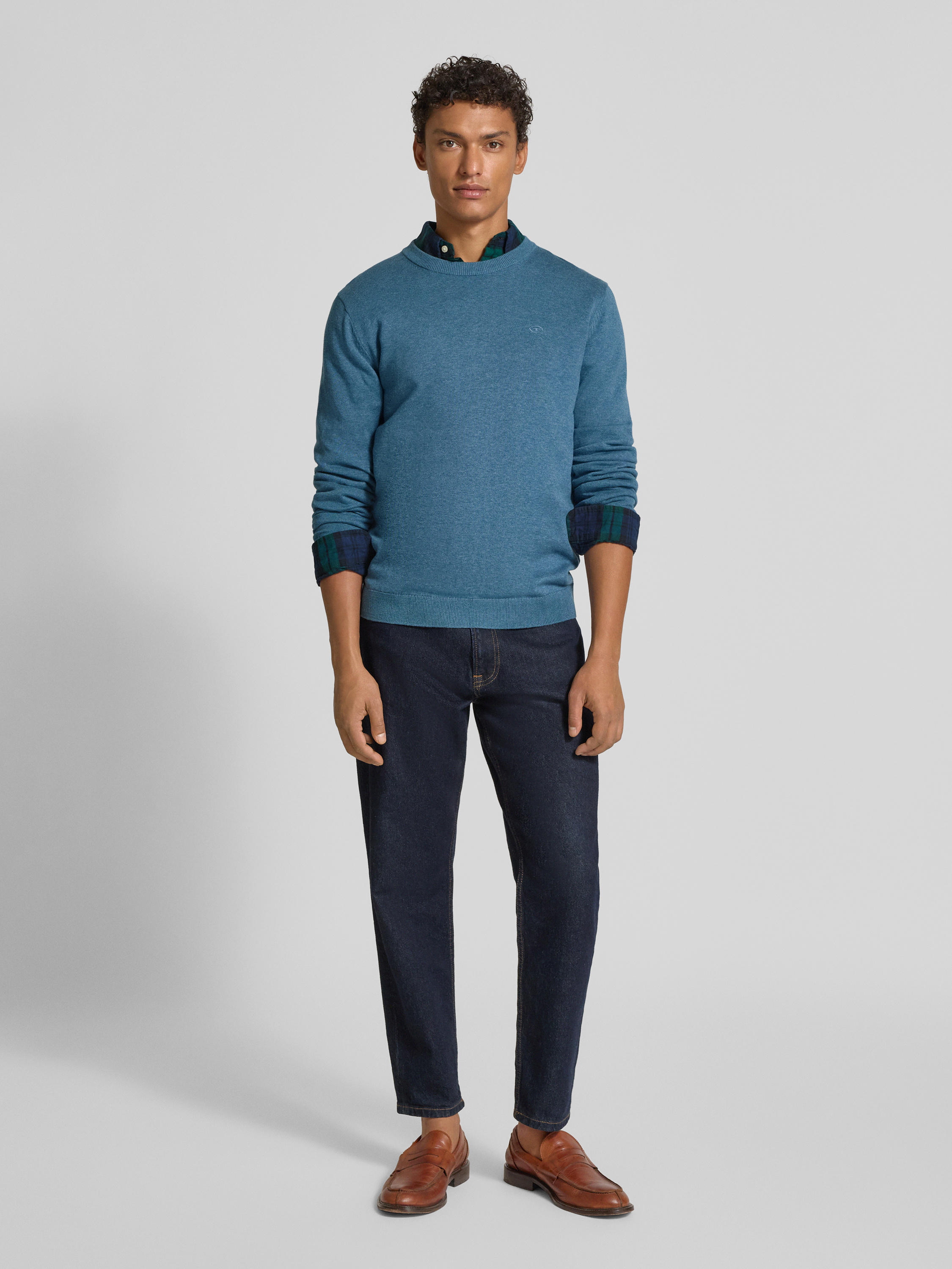 Sweter z dzianiny o kroju regular fit z czystej bawełny - niebieski
