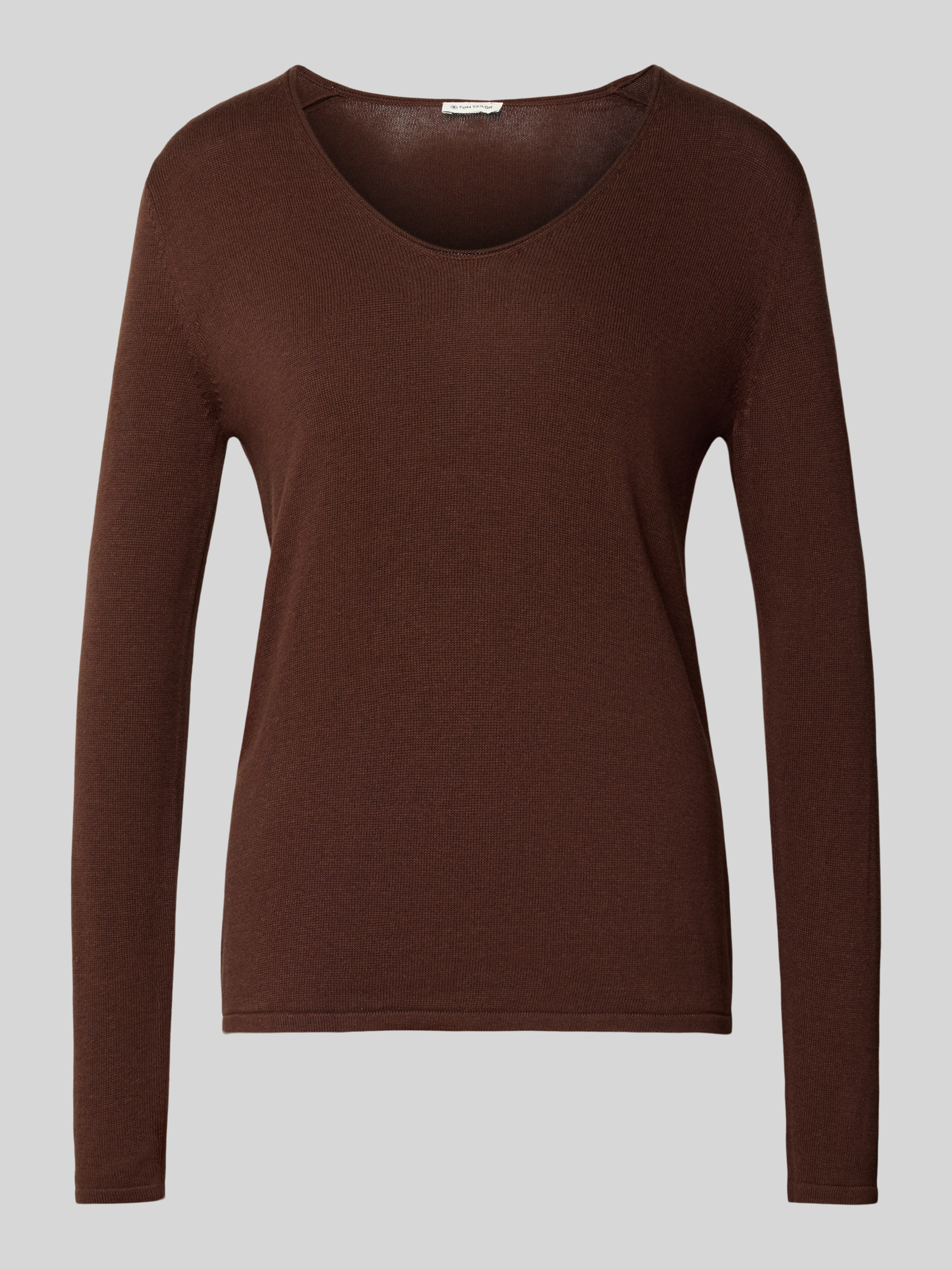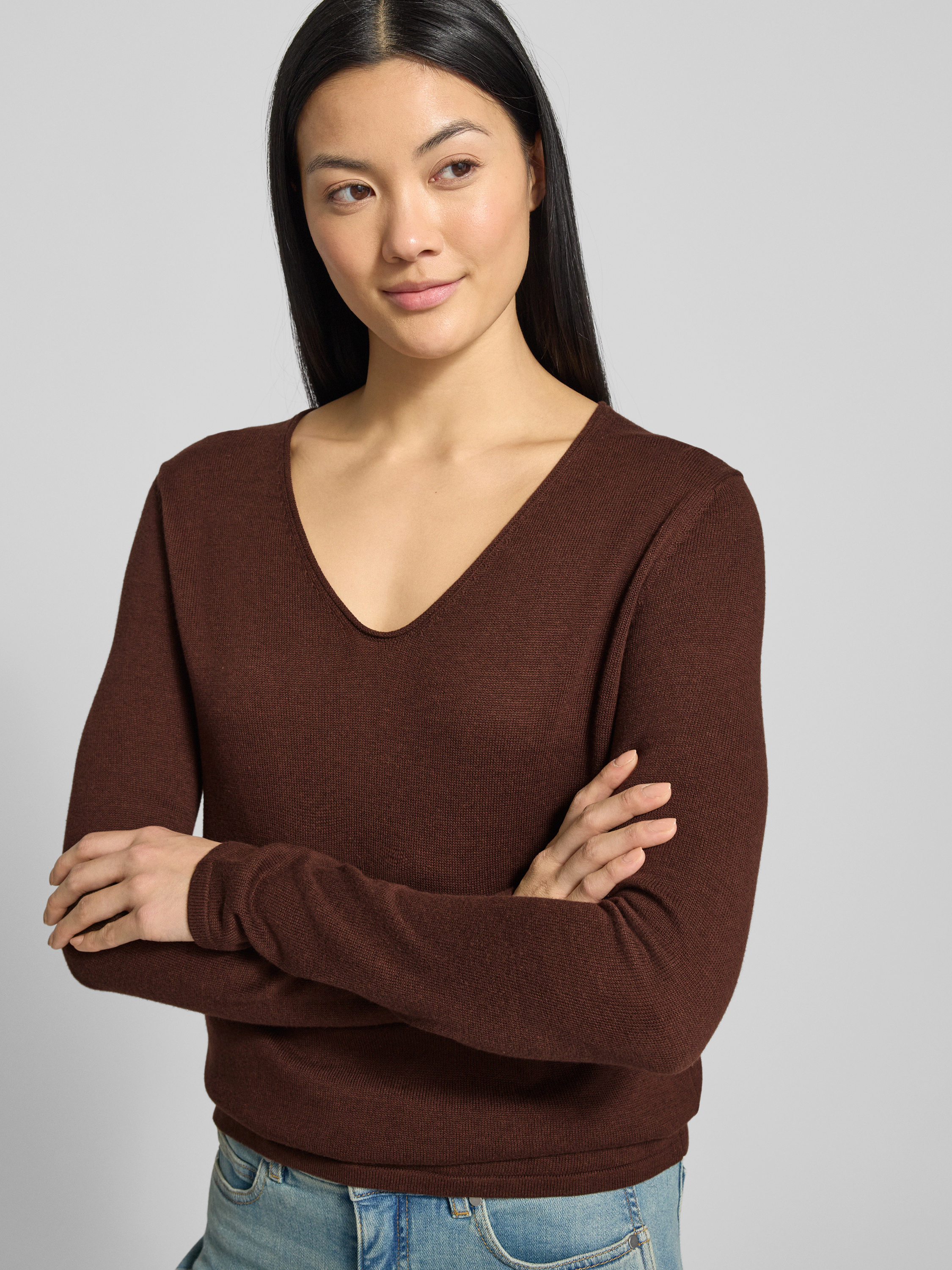 Sweter z dzianiny o kroju regular fit z mieszanki bawełny i wiskozy - orzechowy