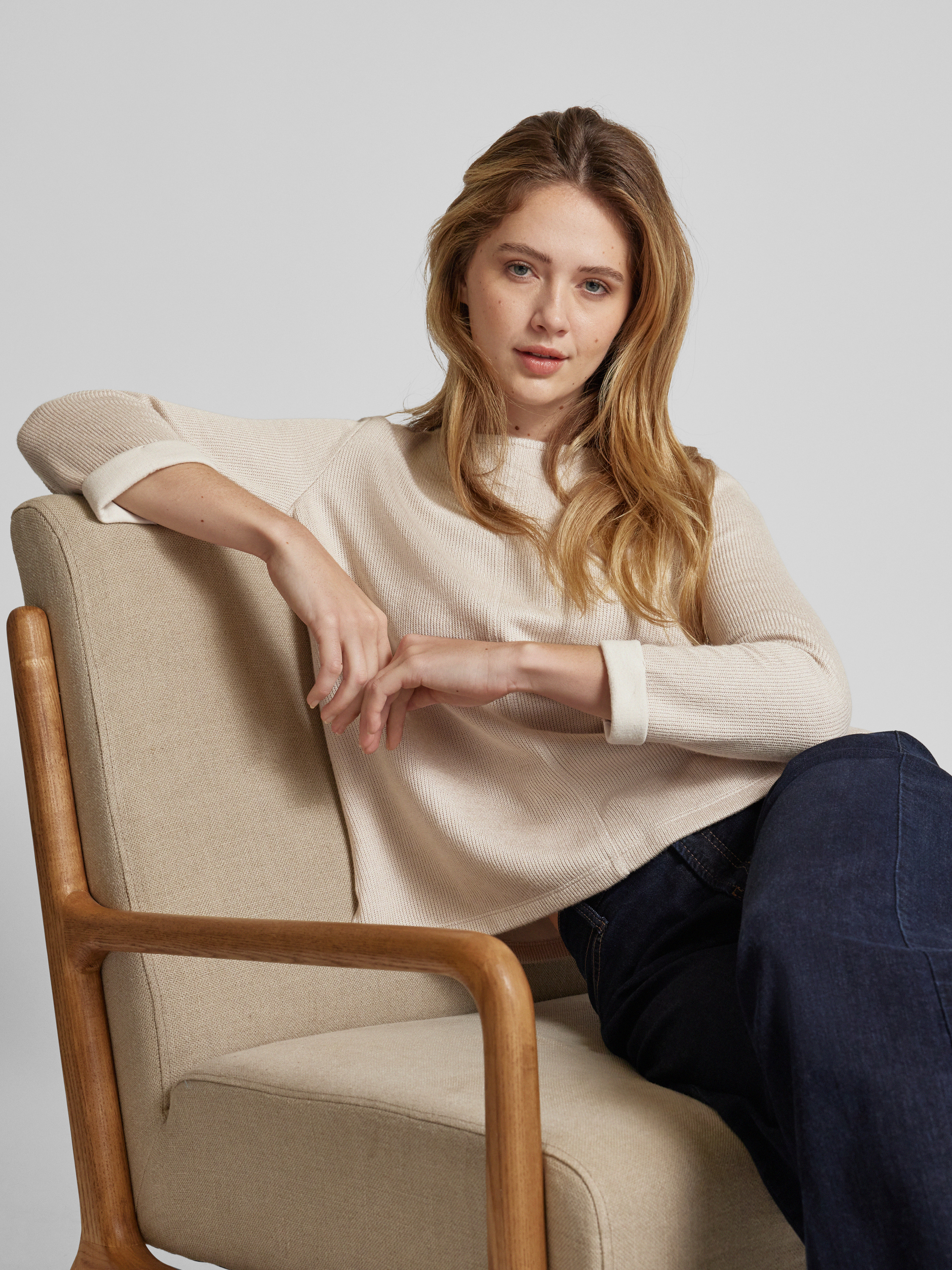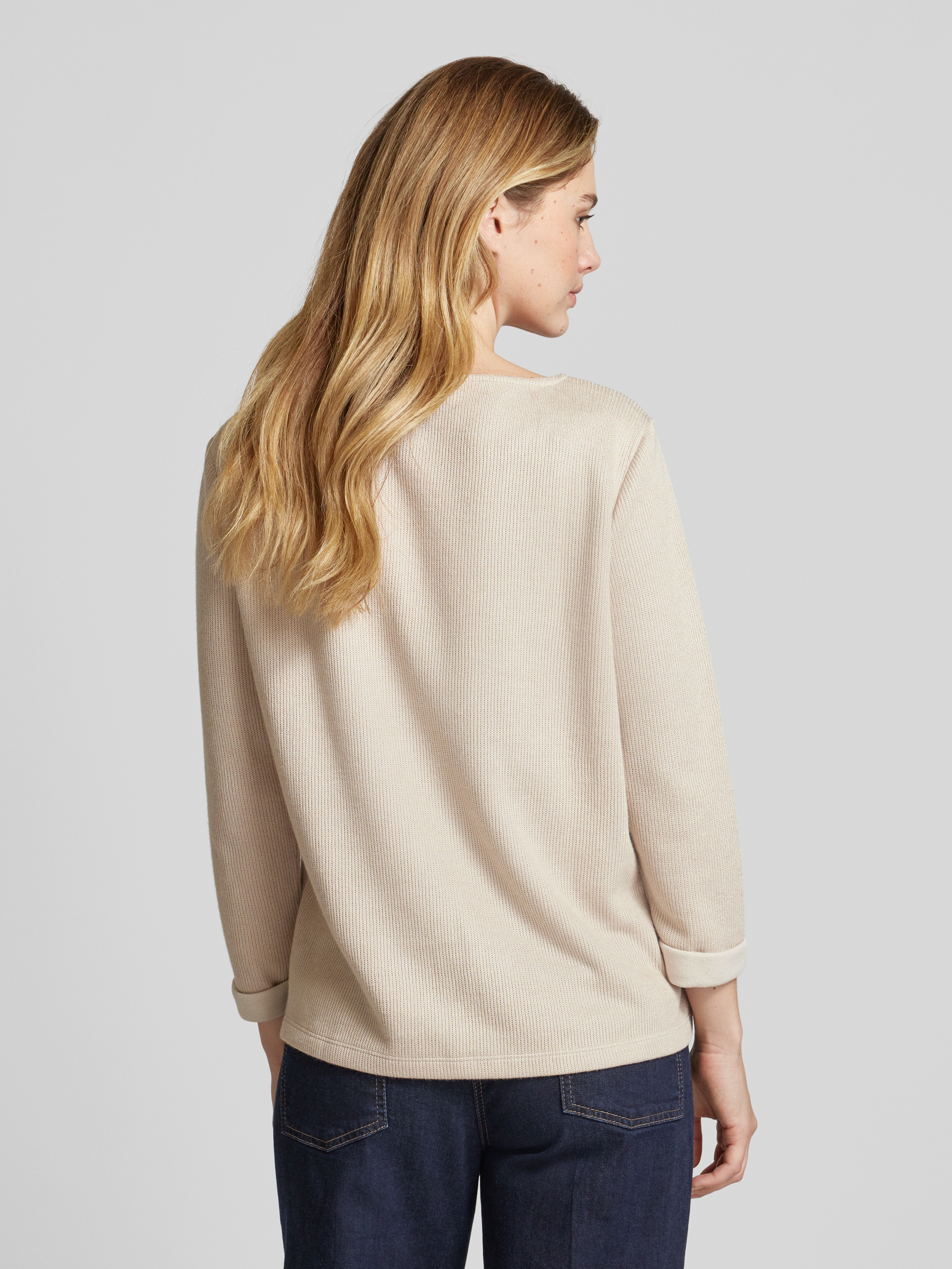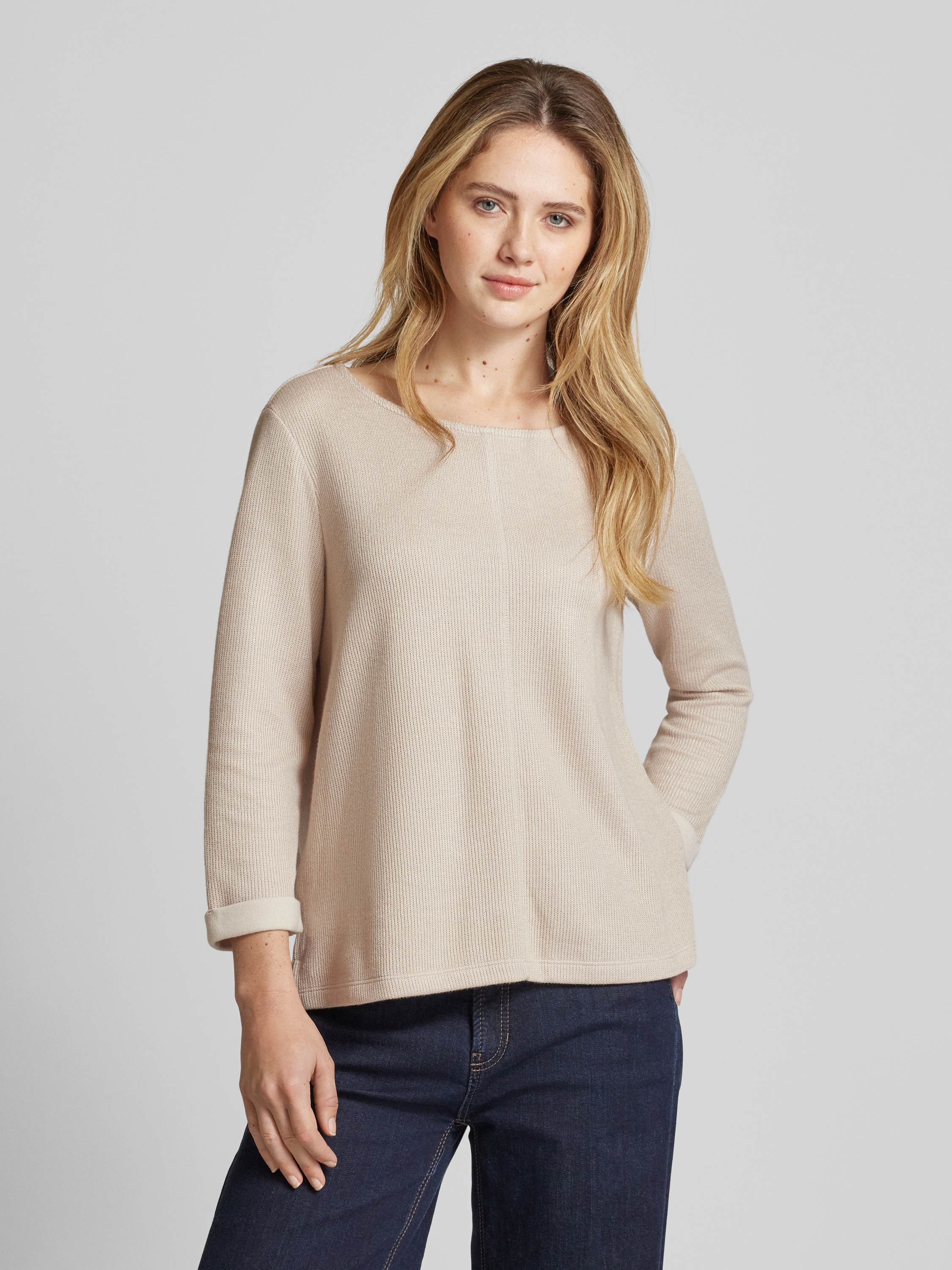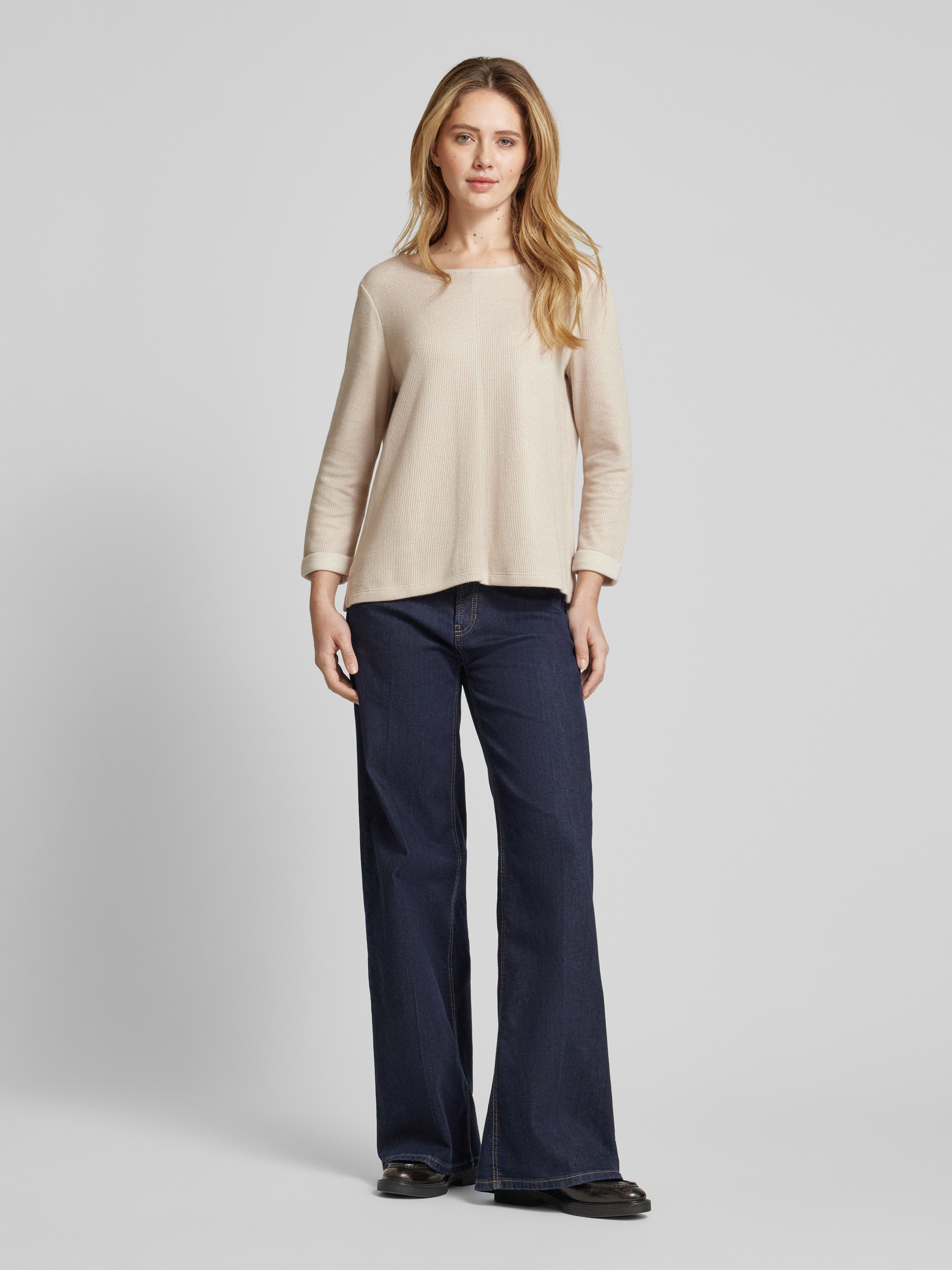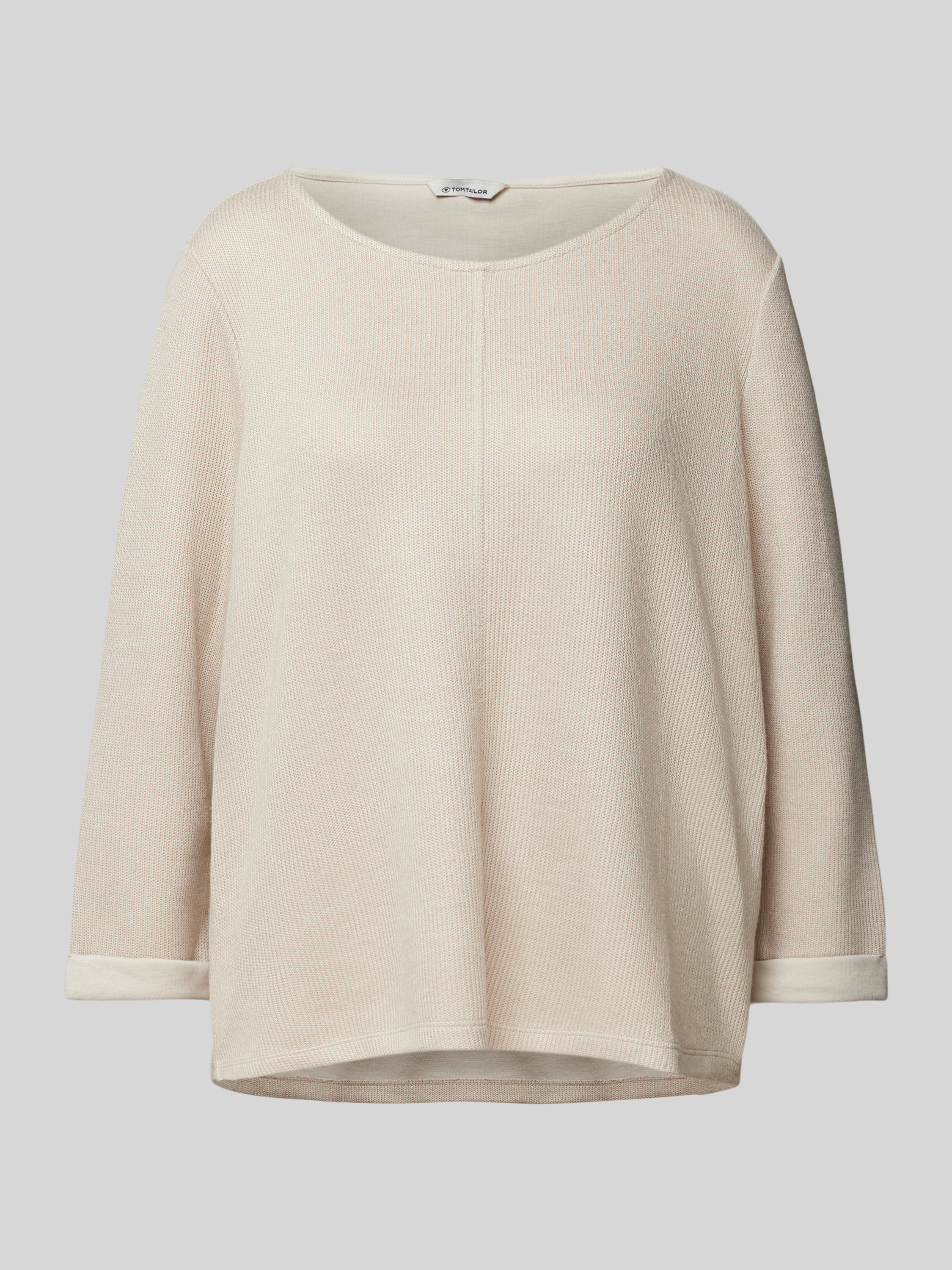 Sweter z dzianiny o kroju regular fit z rękawem o dł. 3/4 - beżowy