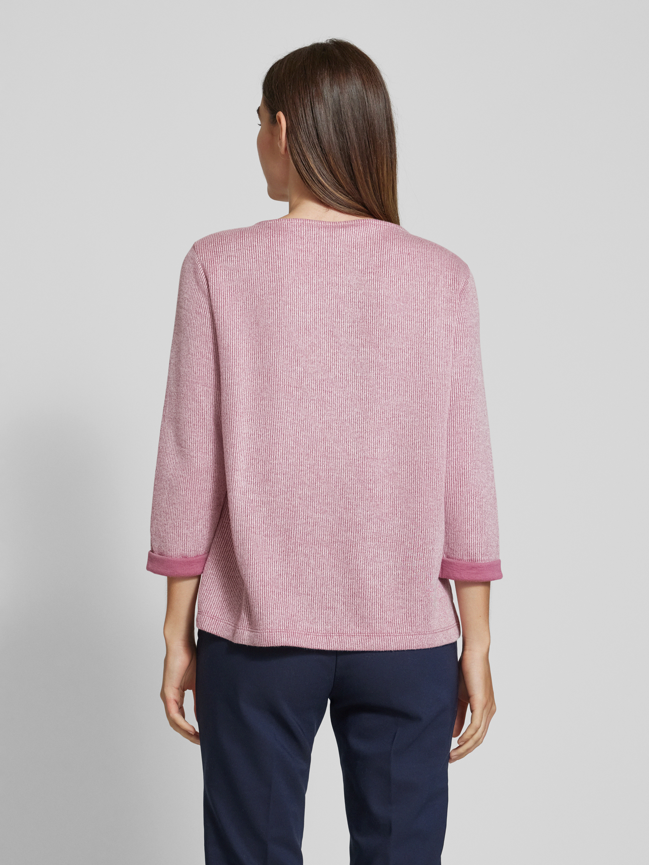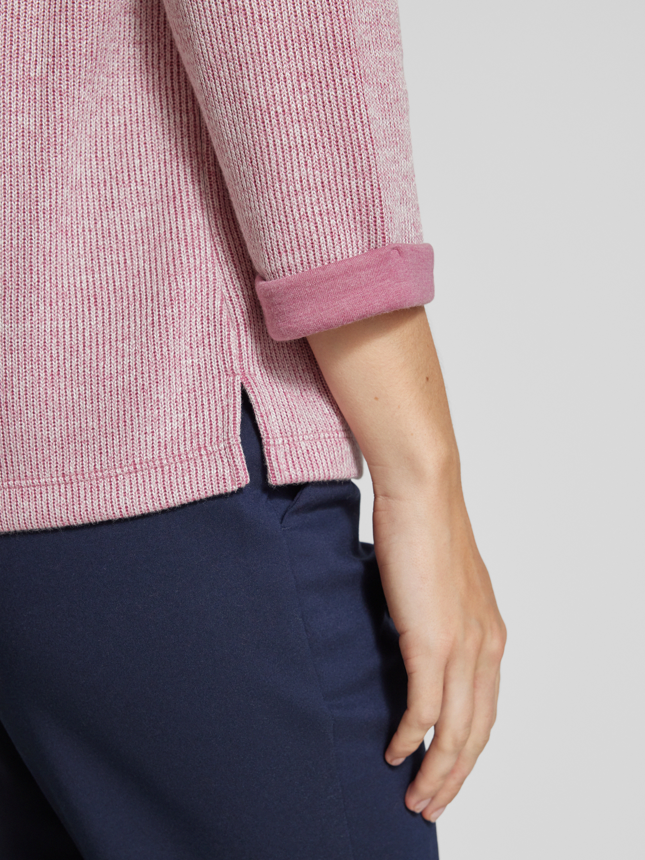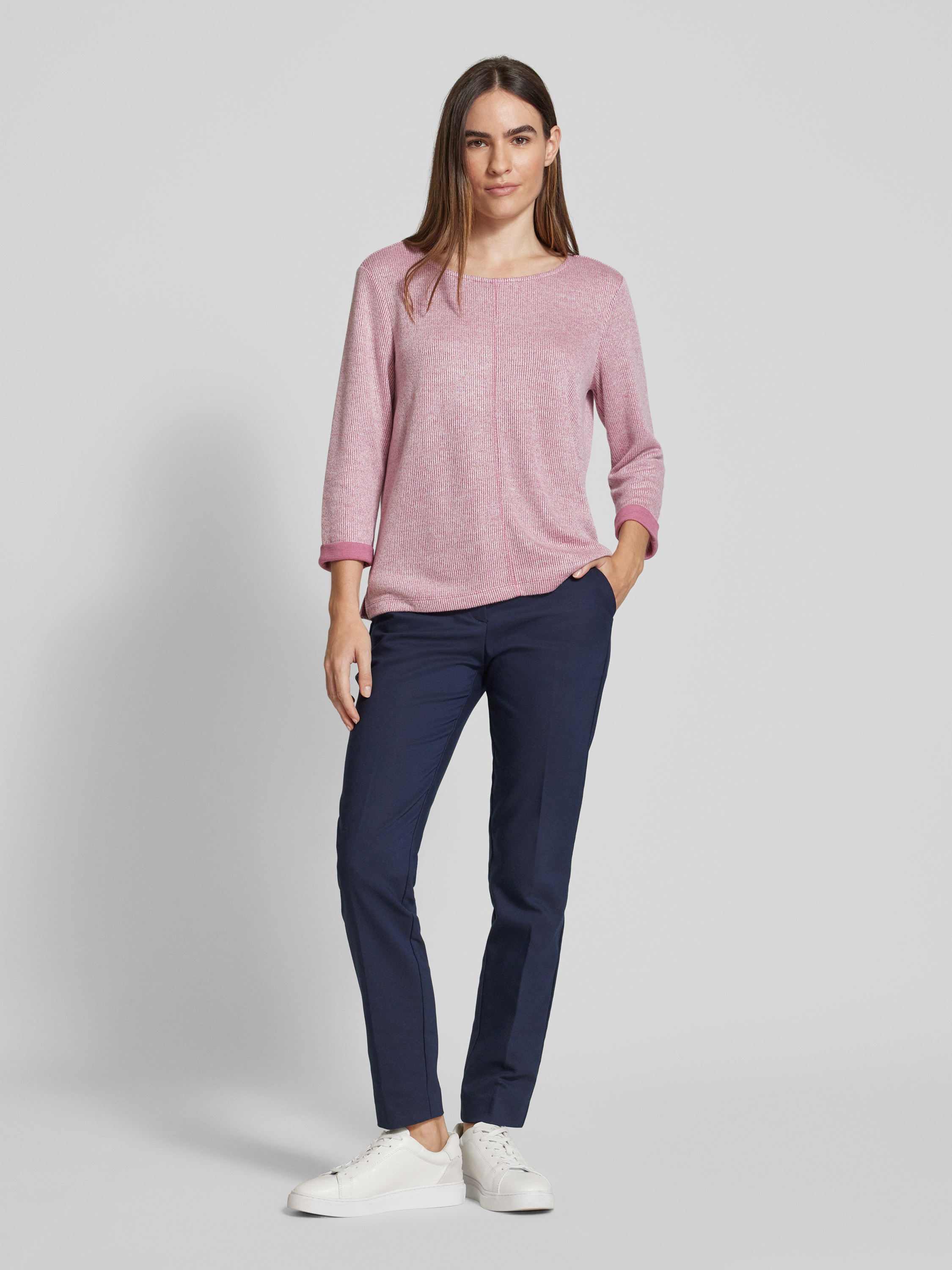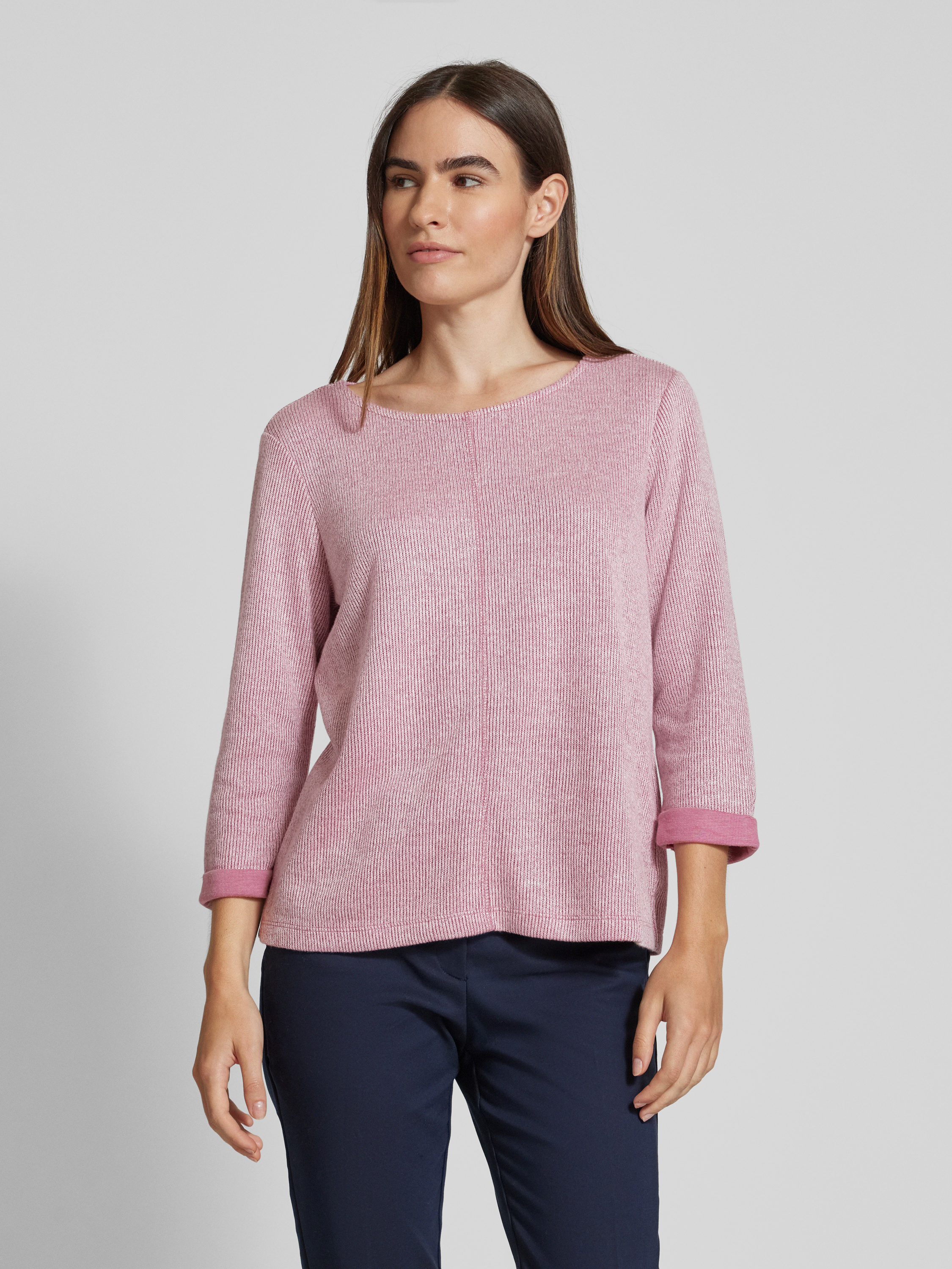 Sweter z dzianiny o kroju regular fit z rękawem o dł. 3/4 - mocnoróżowy