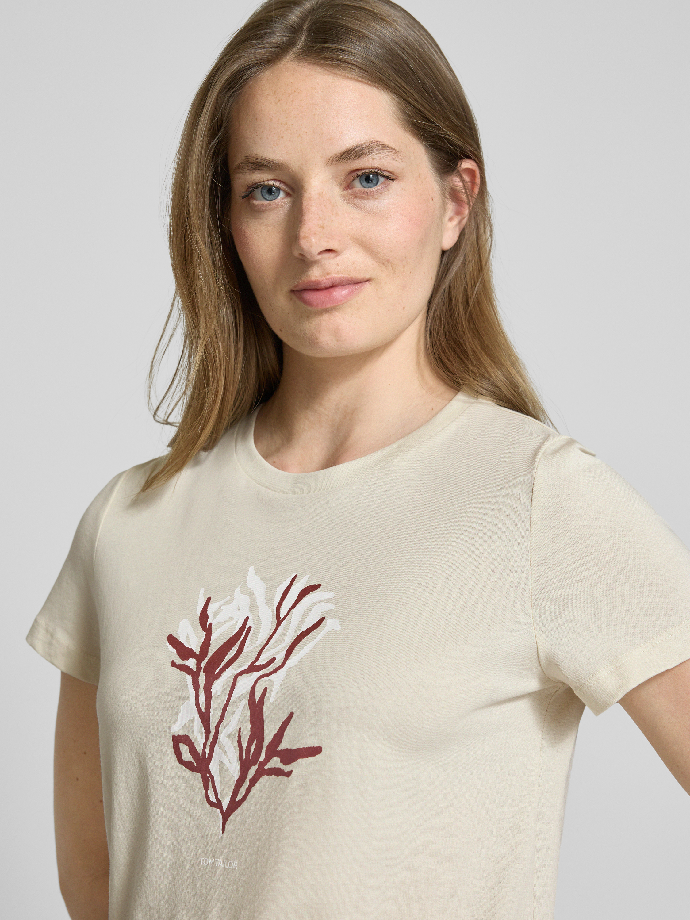 T-shirt o kroju regular fit z czystej bawełny - beżowy