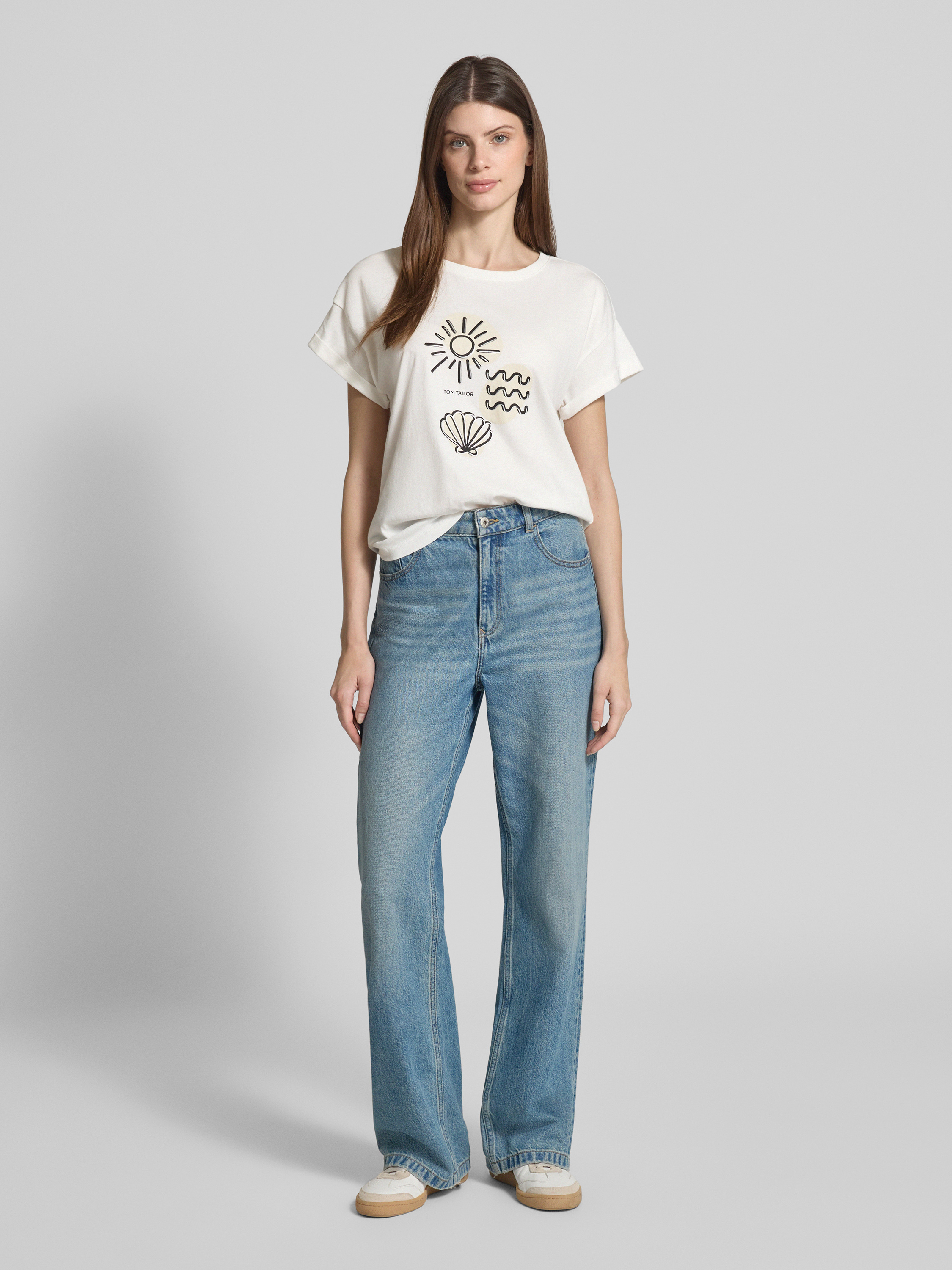 T-shirt o kroju regular fit z czystej bawełny - biały