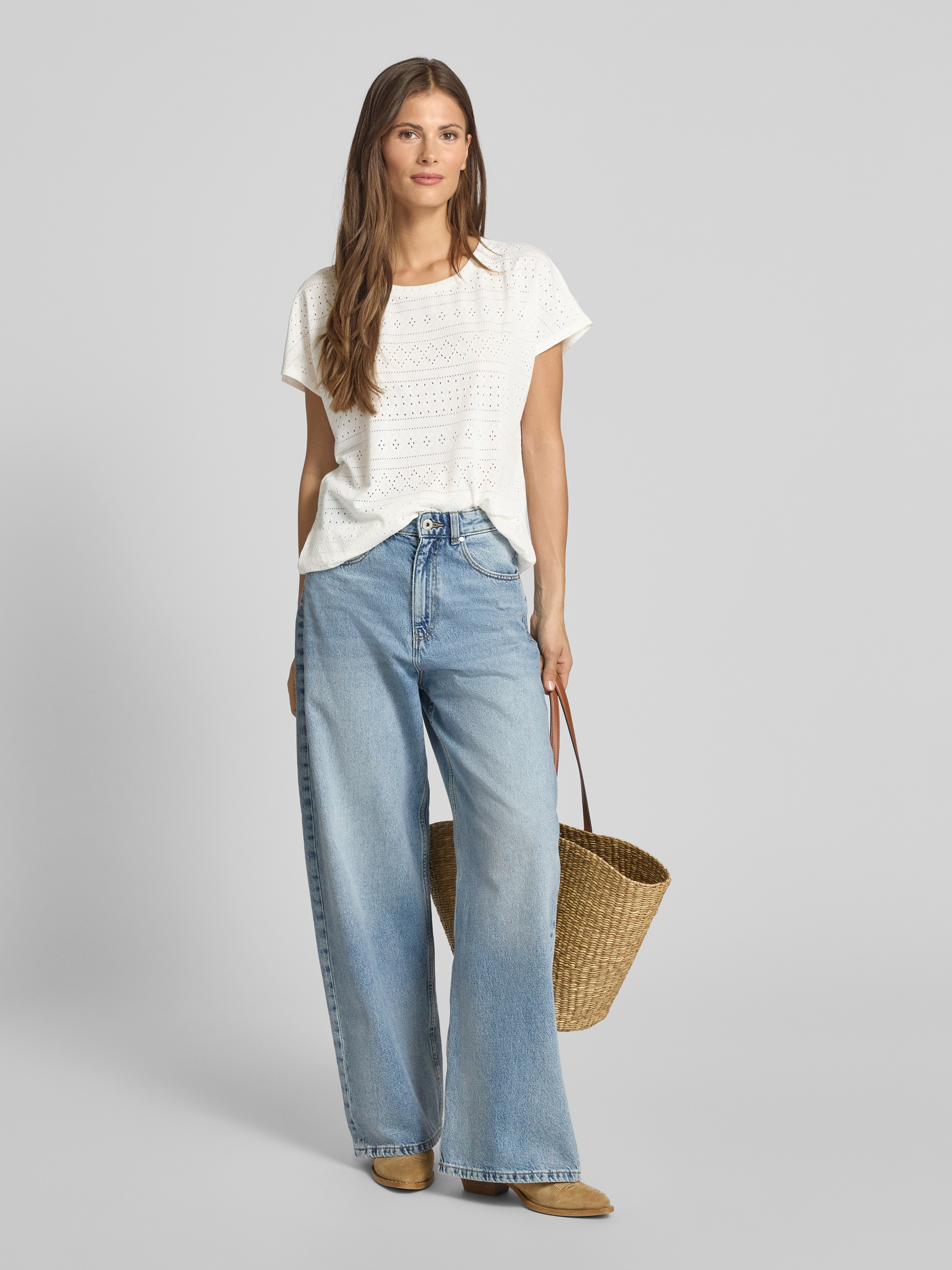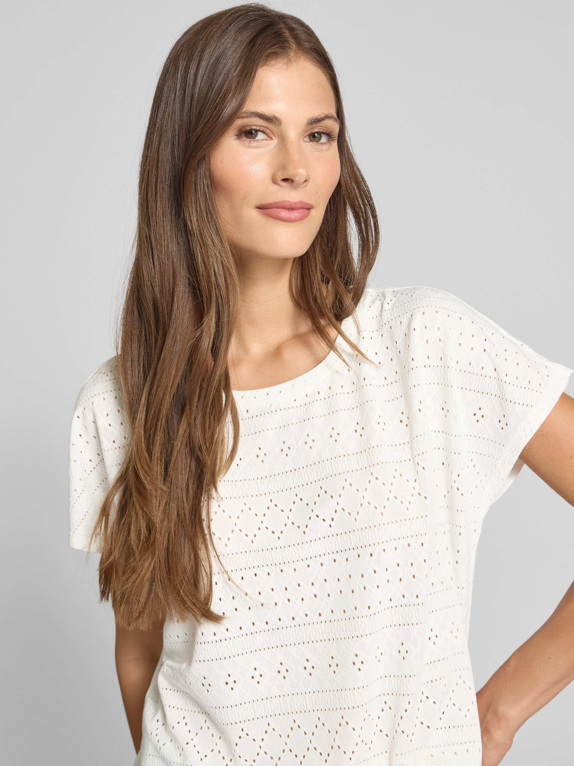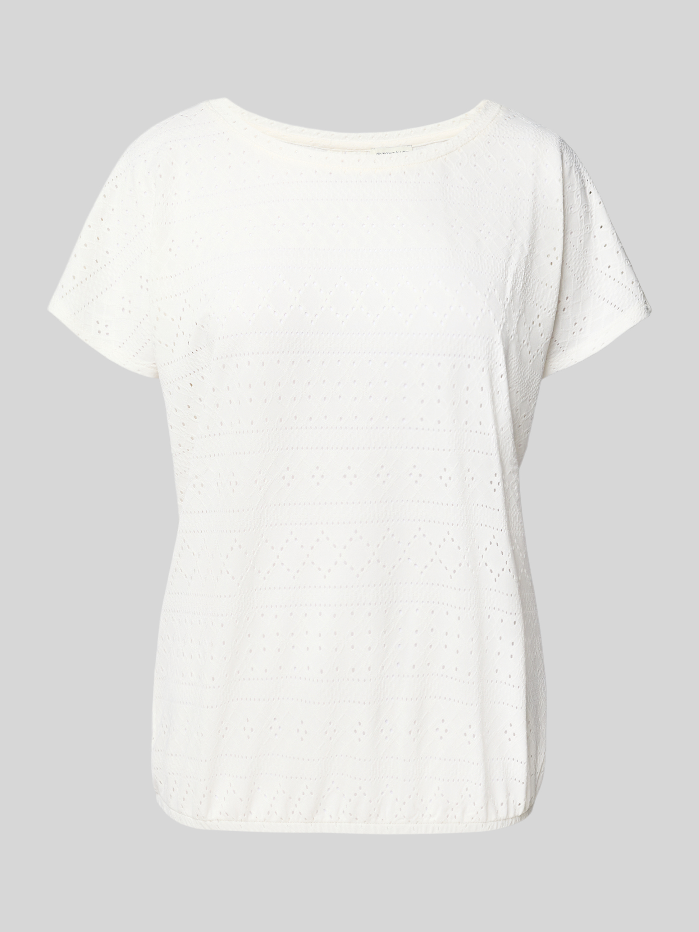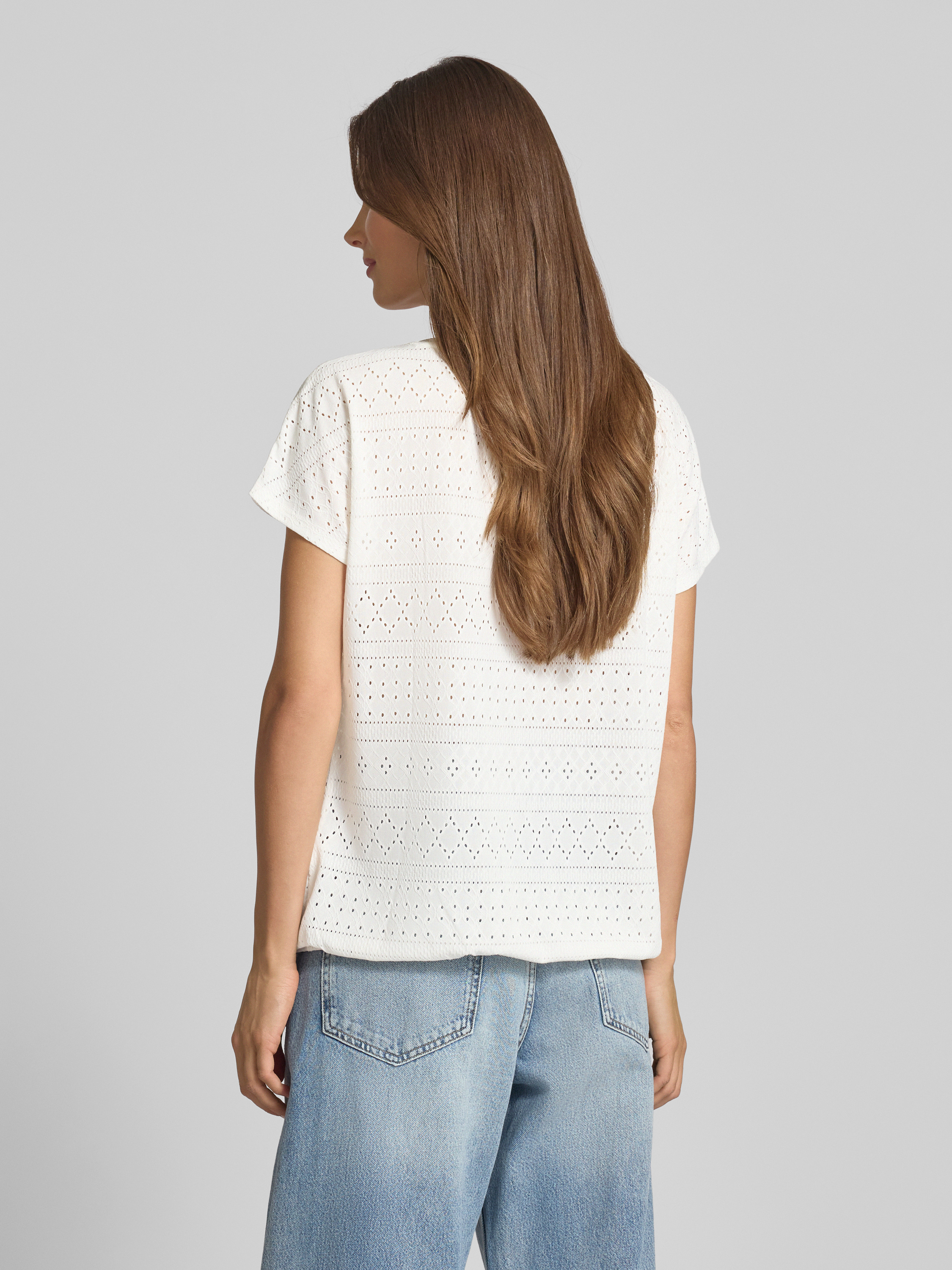 T-shirt o luźnym kroju z ażurowej dzianiny - złamany biały