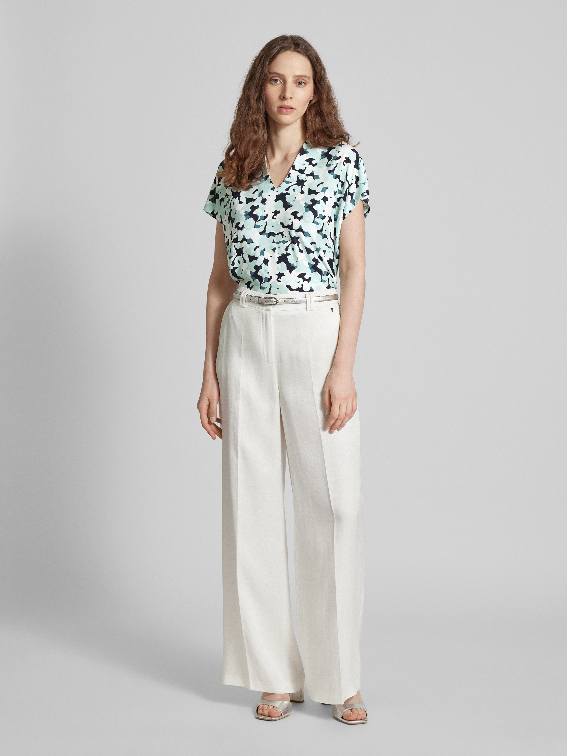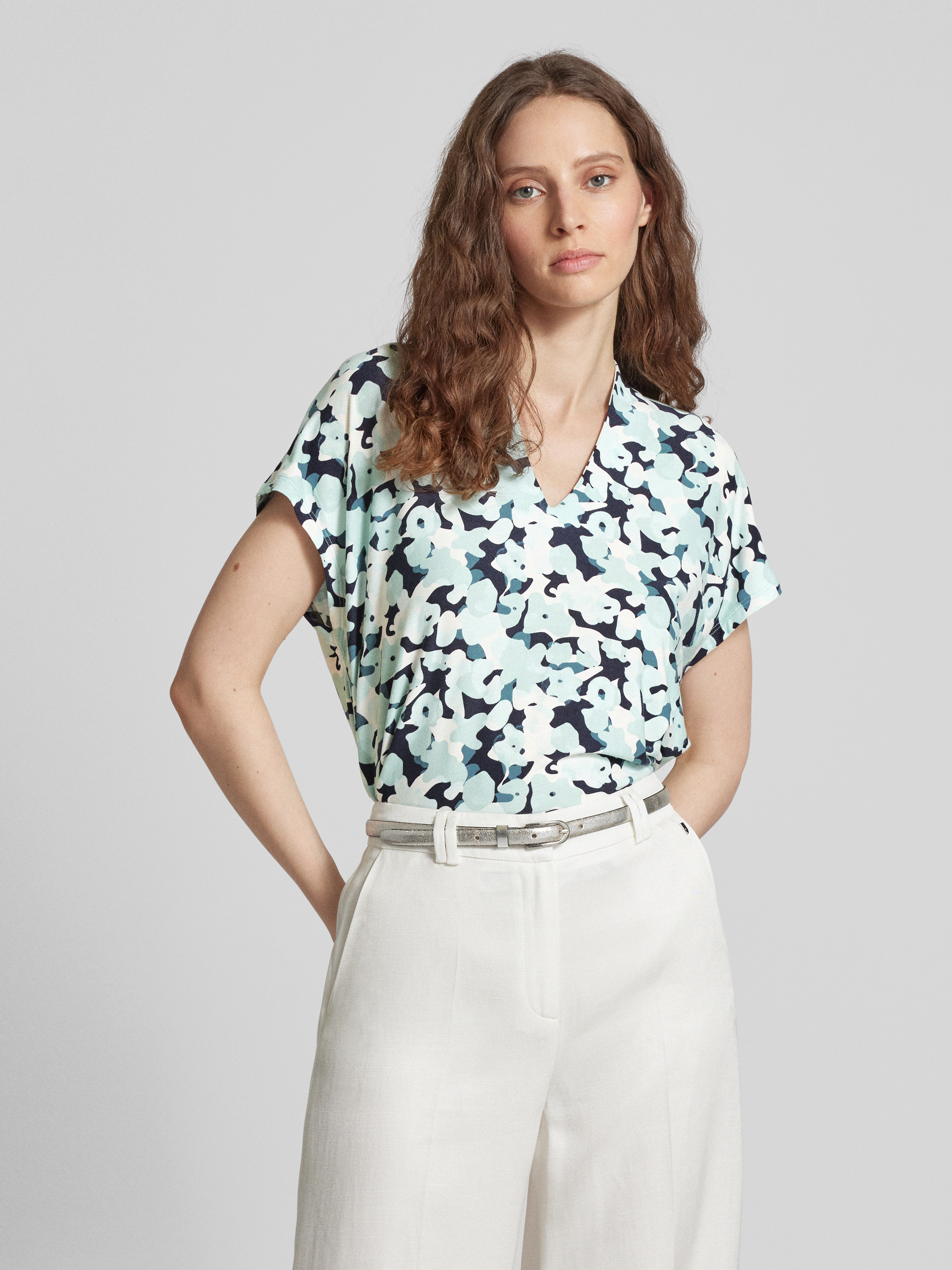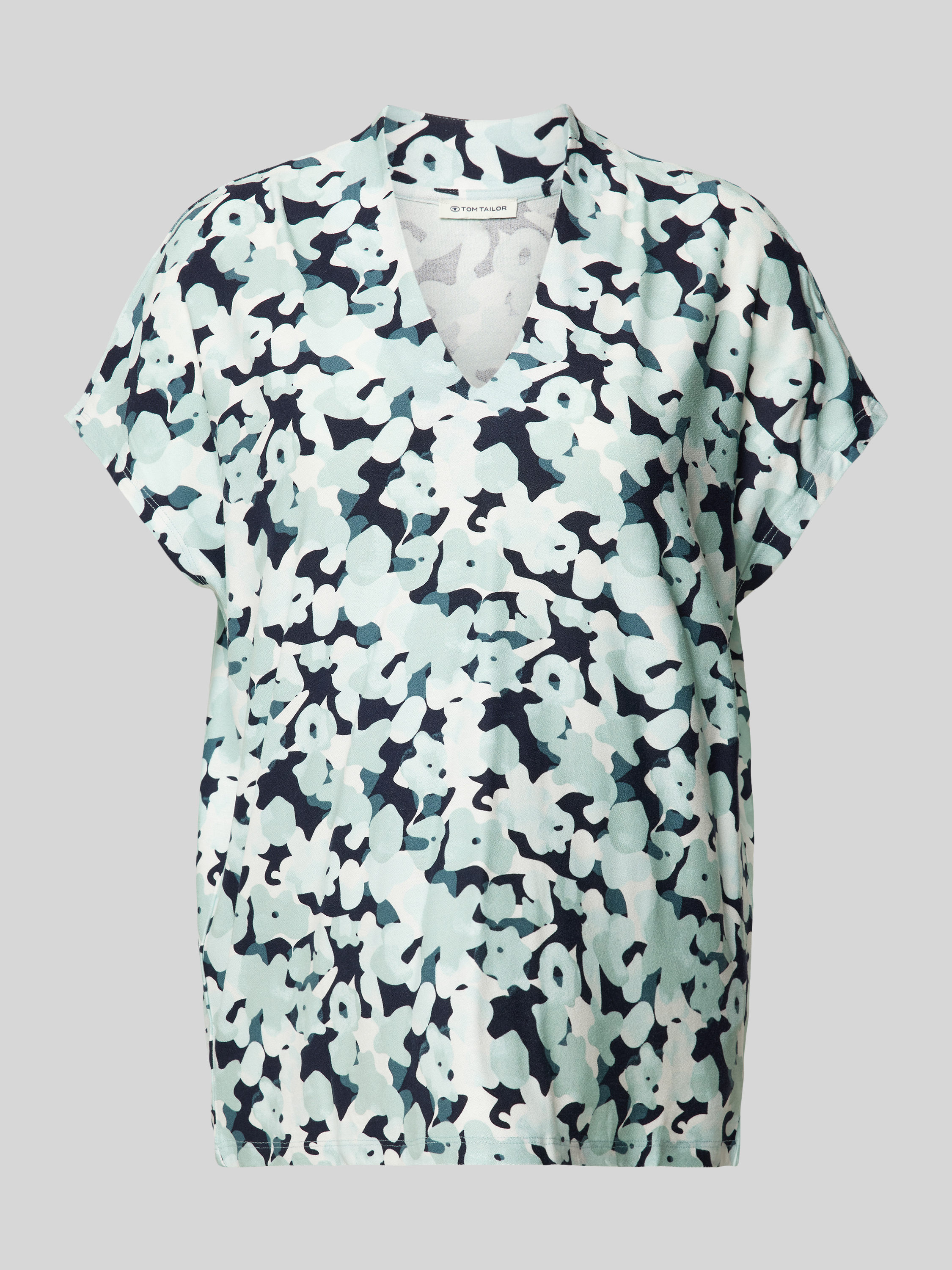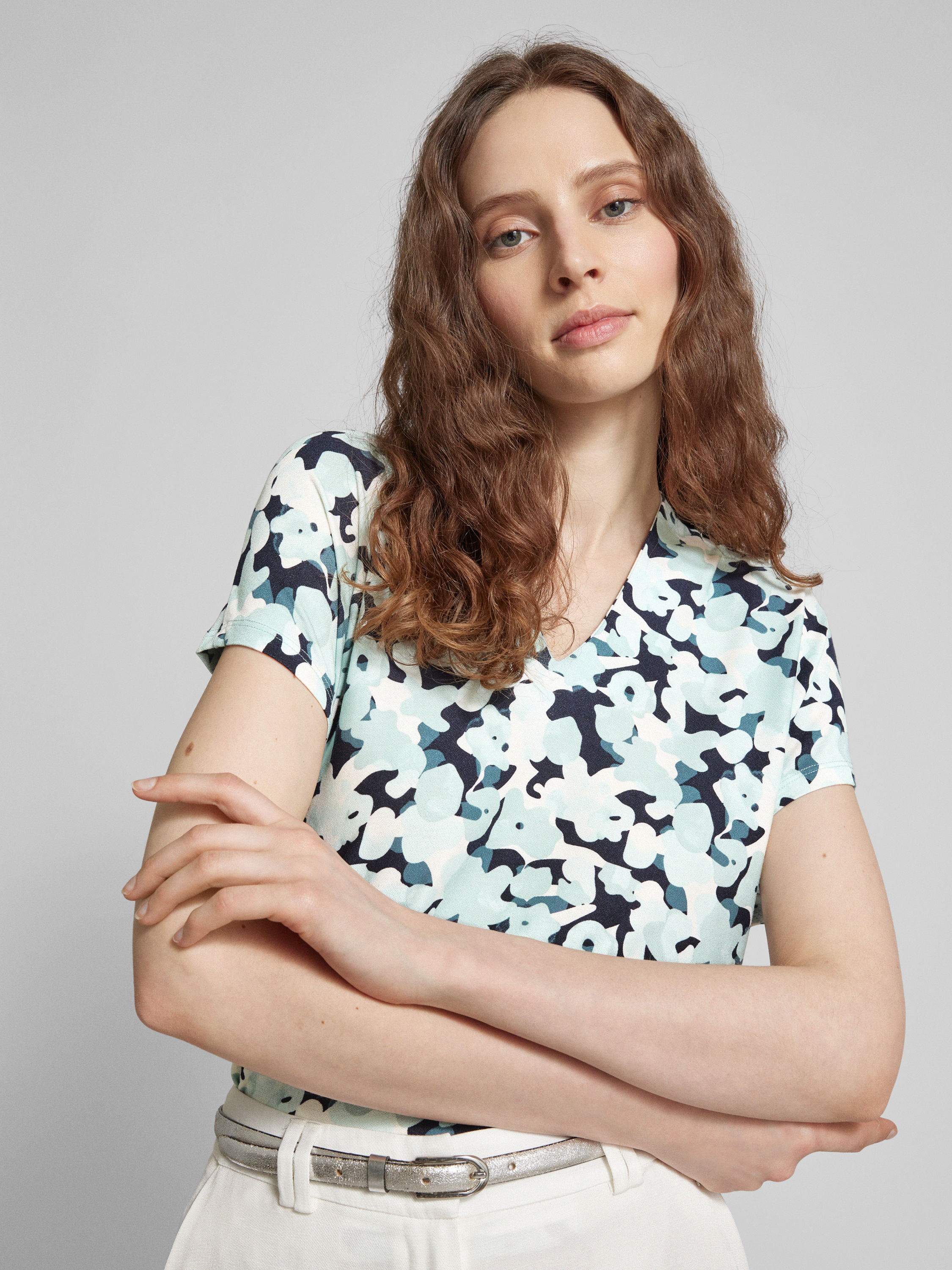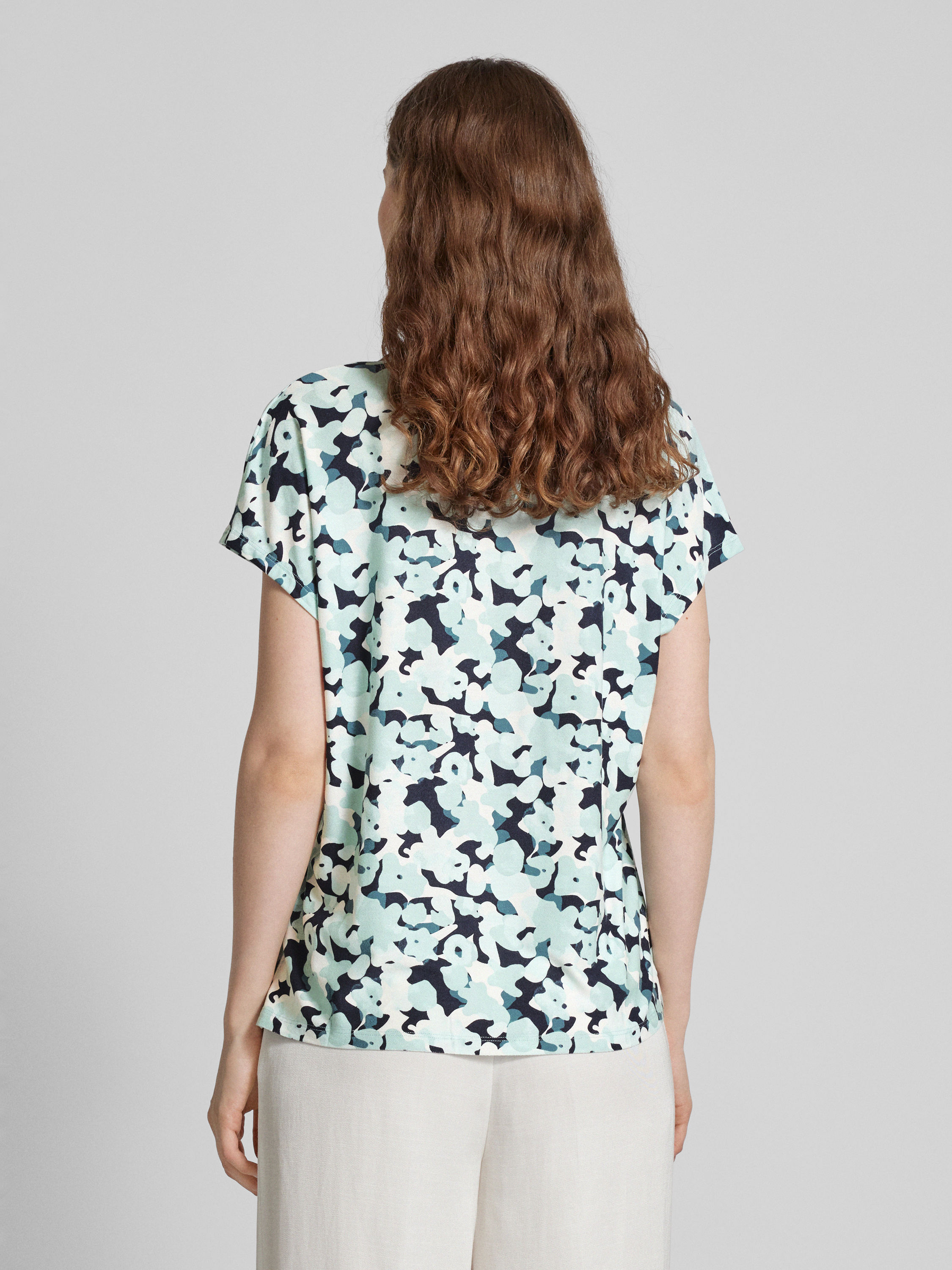 T-shirt ze wzorem na całej powierzchni i dekoltem w serek - granatowy