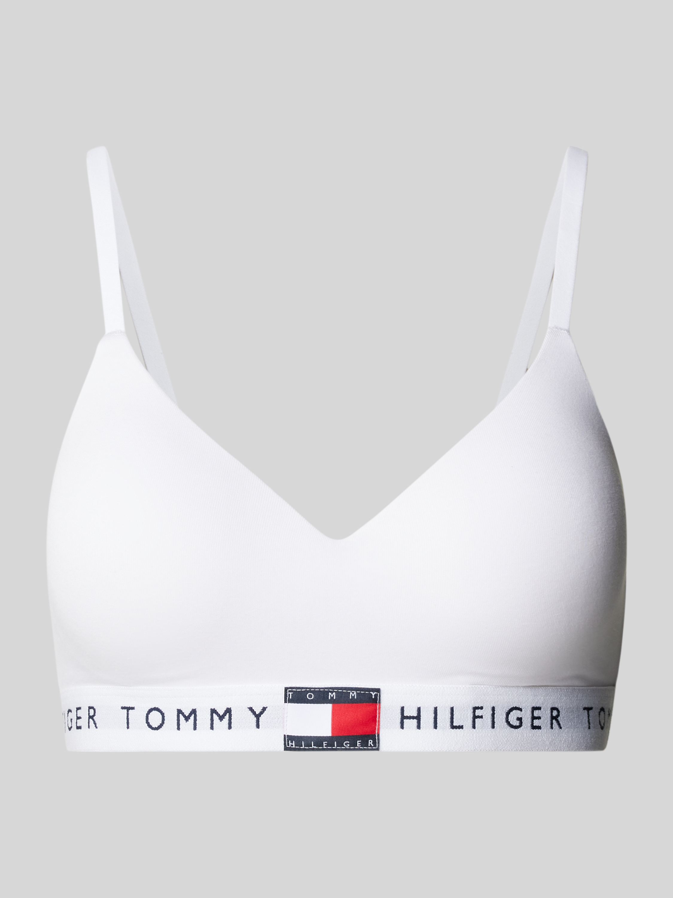 Biustonosz typu bralette z elastycznym pasem z logo model ‘TH Heritage’ - biały