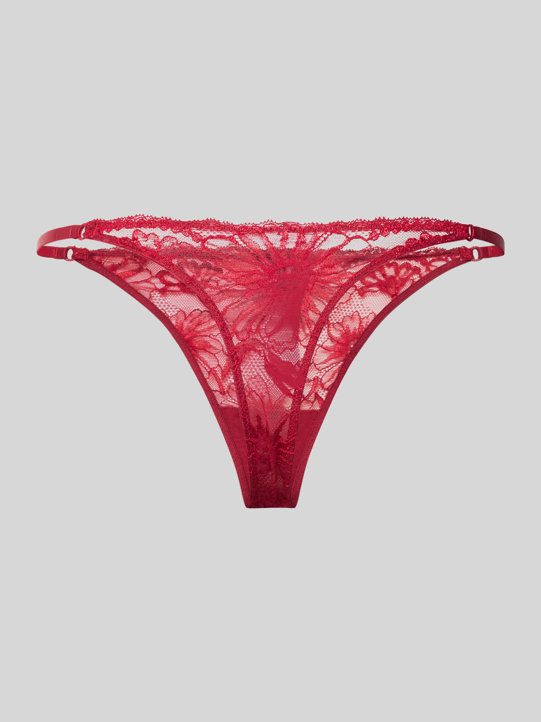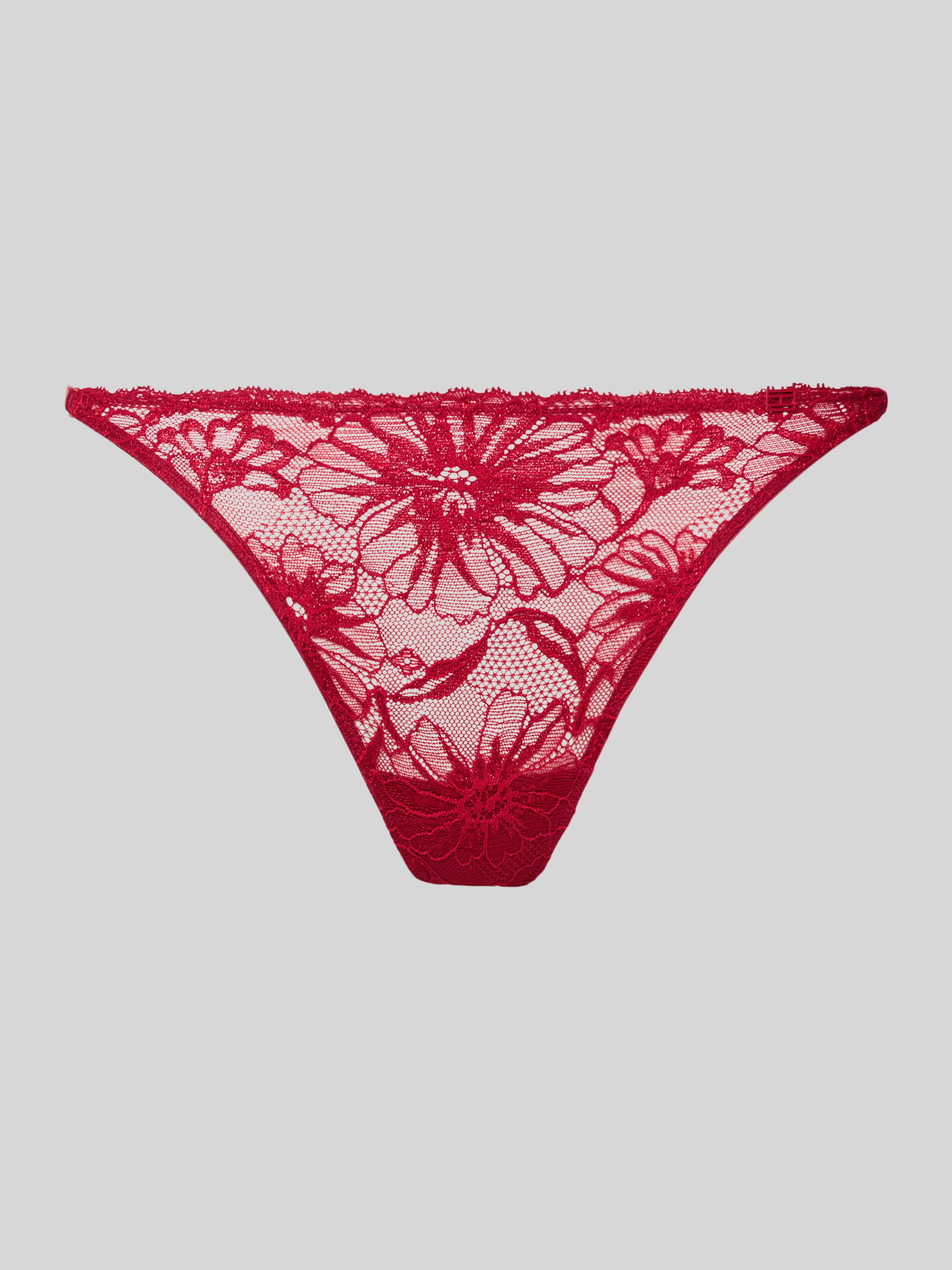 Stringi z półprzezroczystym wzorem z koronki - czerwony
