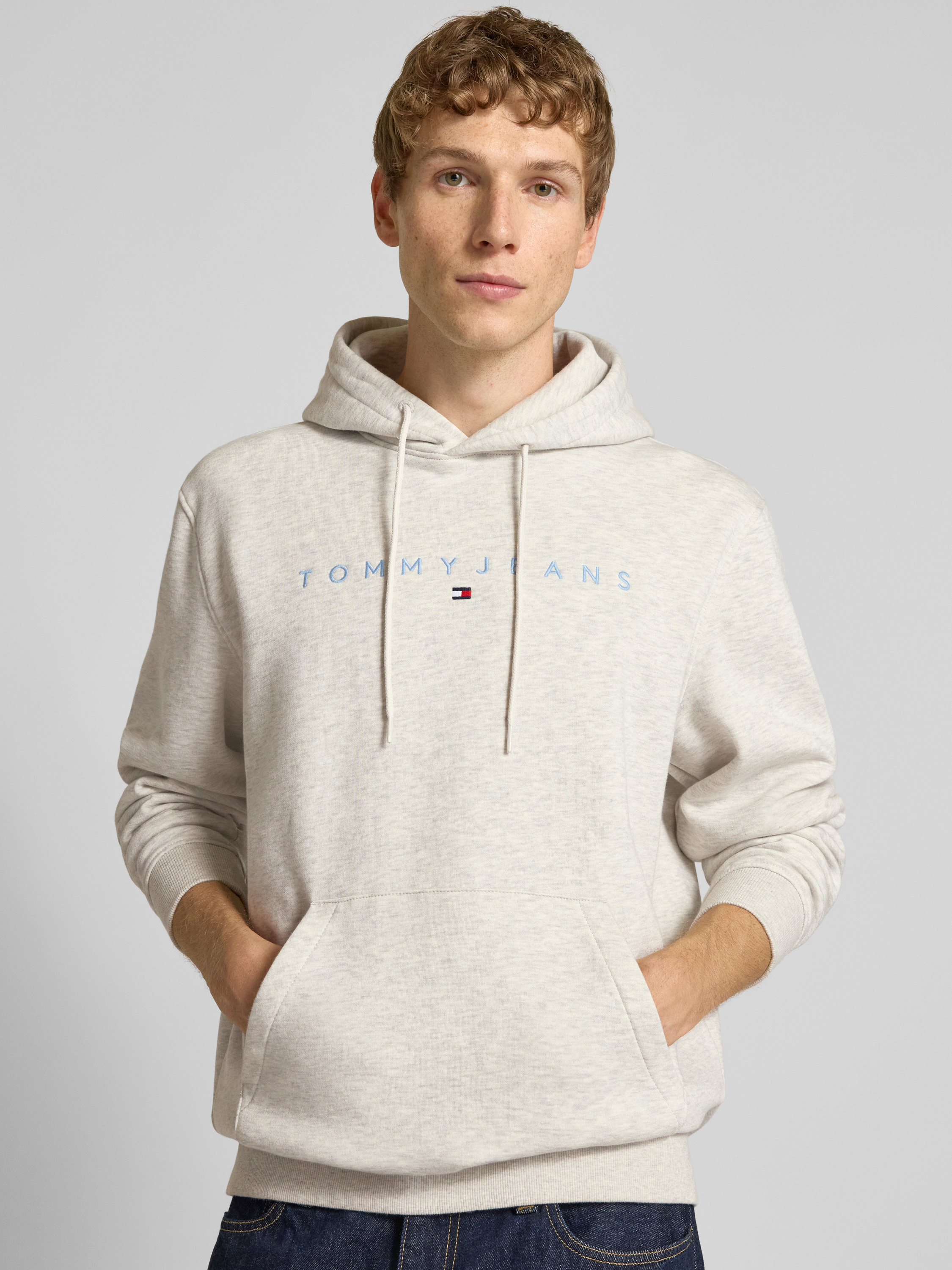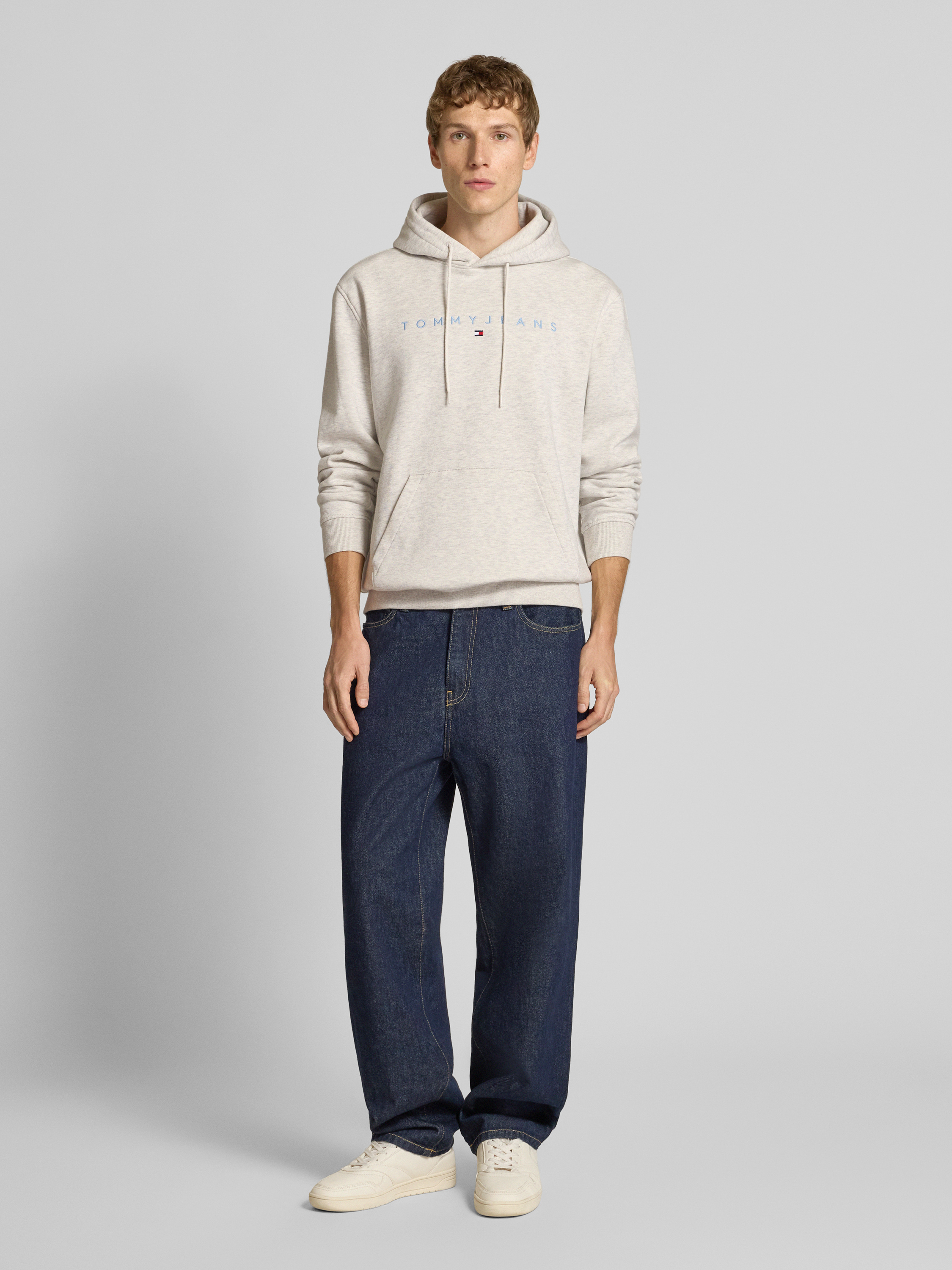 Bluza z kapturem o kroju regular fit z mieszanki bawełny - jasnoszary melanż
