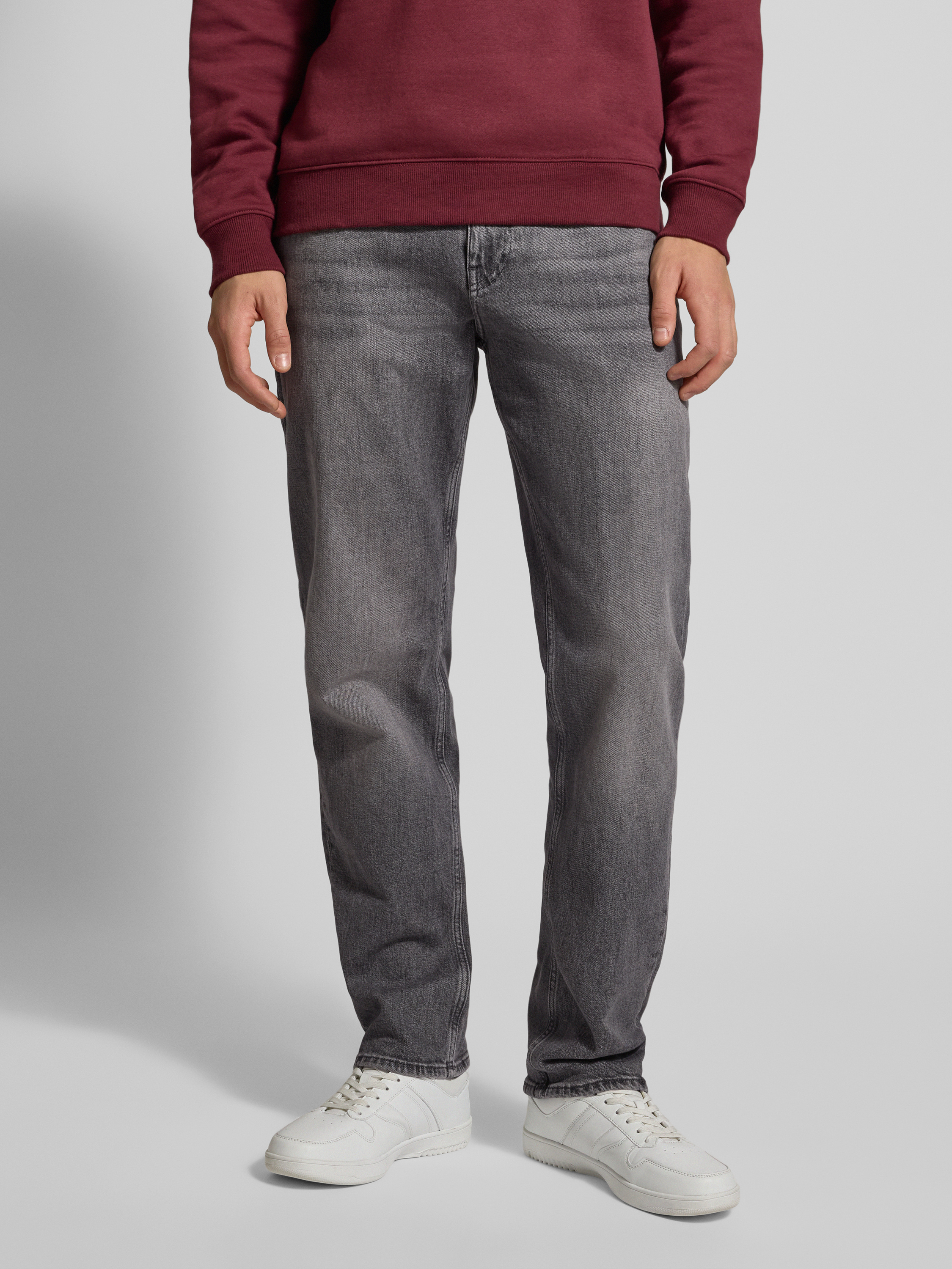 Jeansy o kroju straight fit z mieszanki bawełny - średnioszary