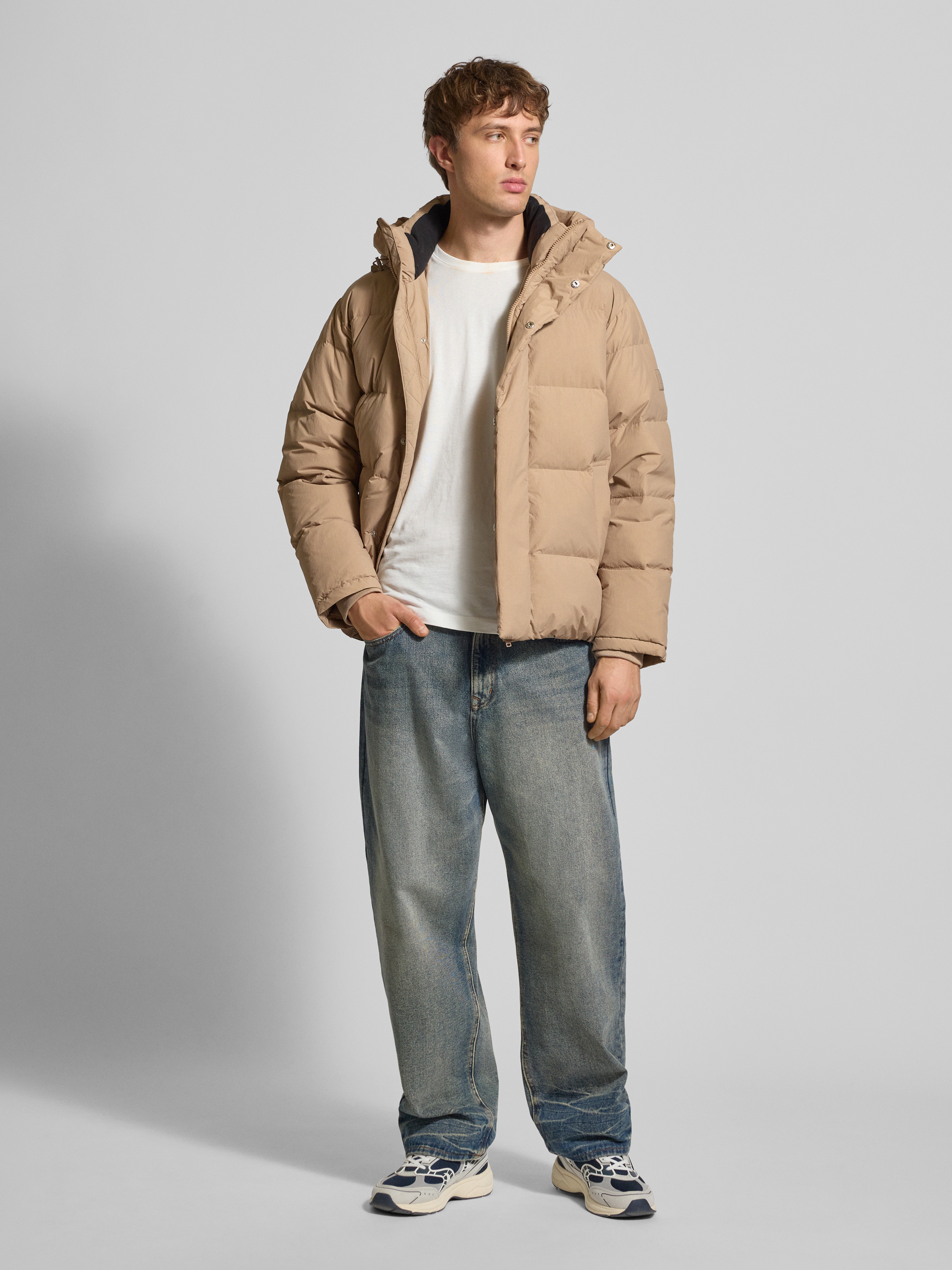 Kurtka pikowana o kroju regular fit z kapturem - beżowy