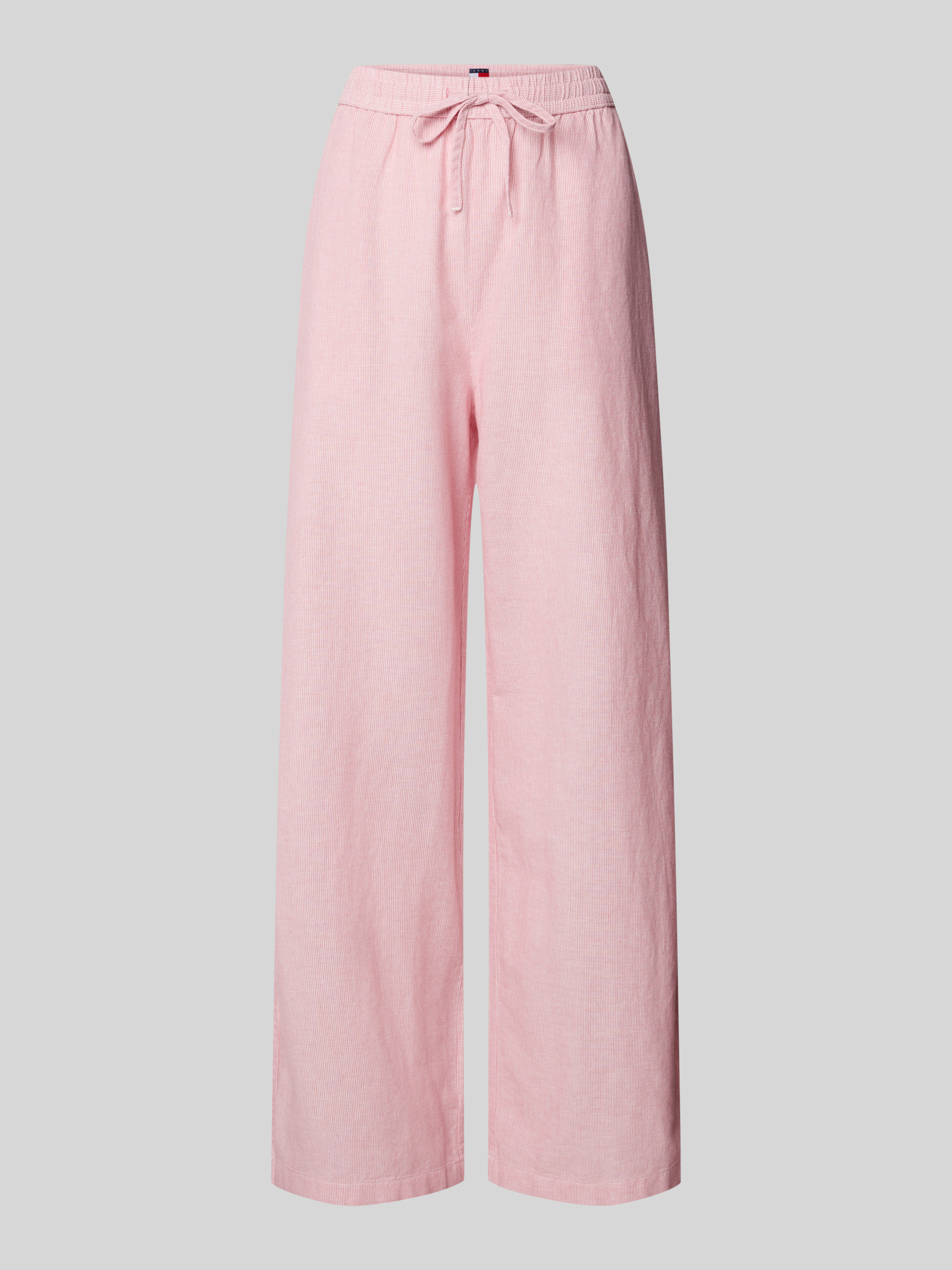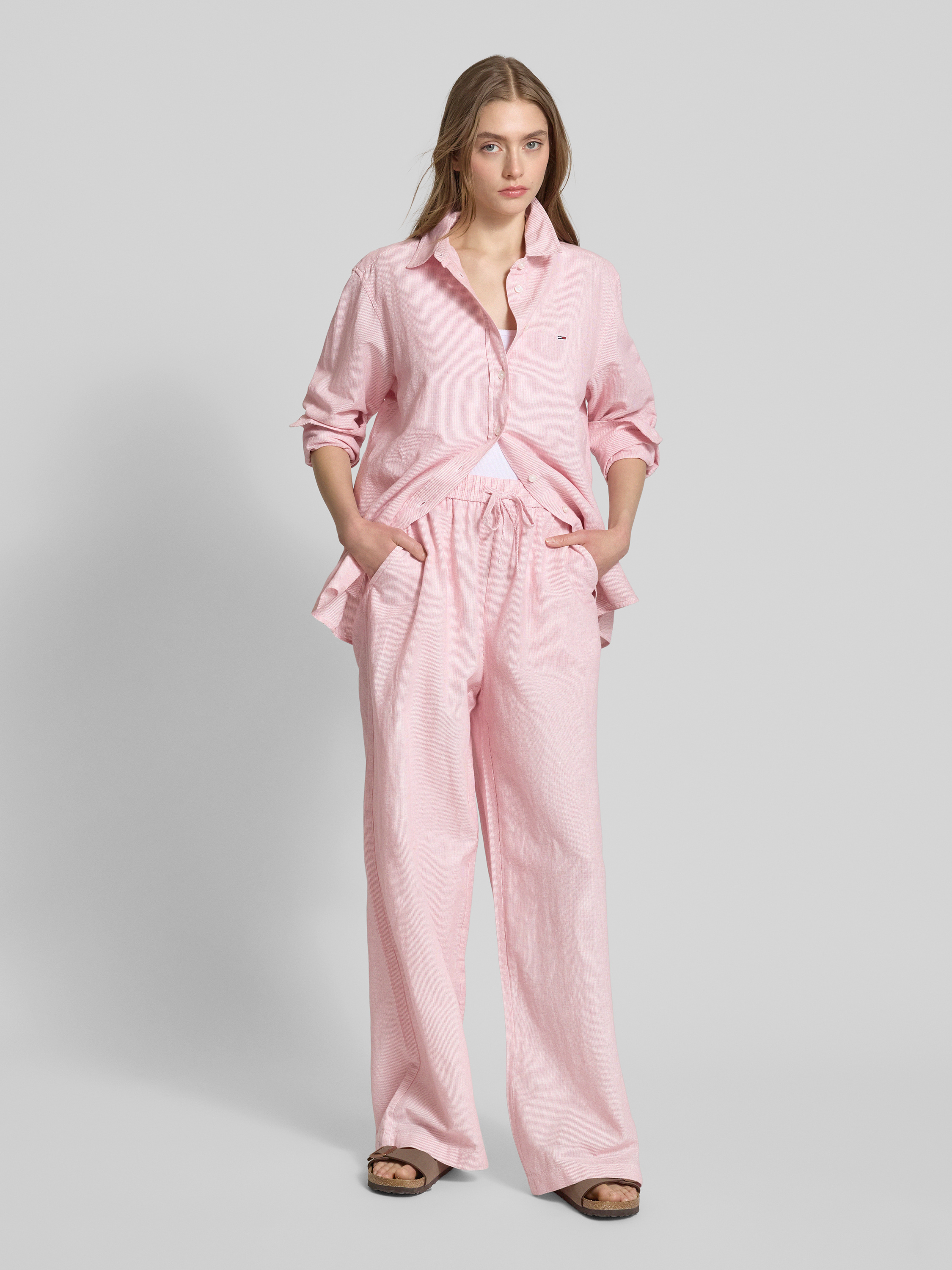 Spodnie szerokie z mieszanki bawełny i lnu - jasnoróżowy