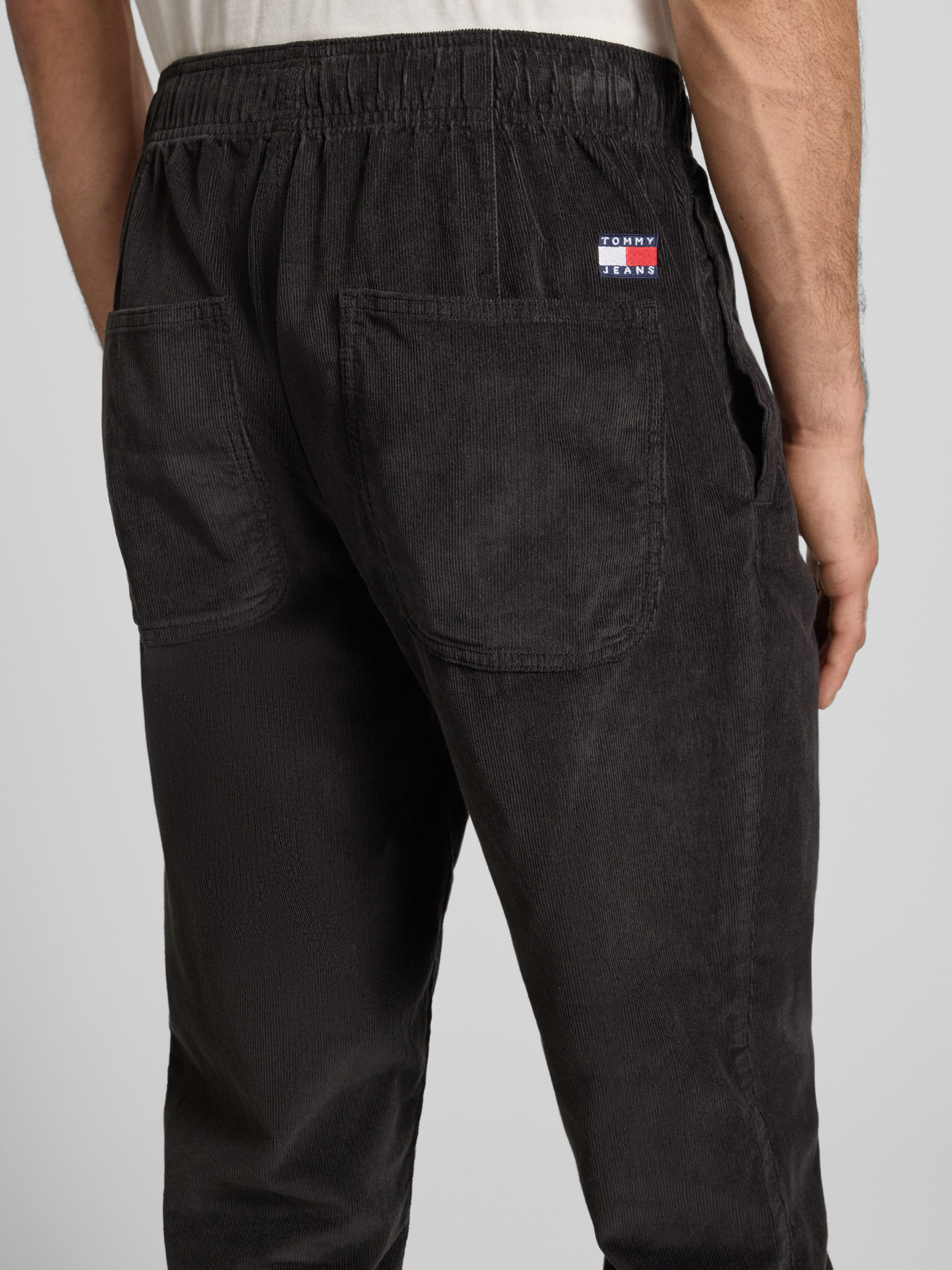 Spodnie sztruksowe o kroju tapered fit z czystej bawełny model ‘ISAAC’ - czarny