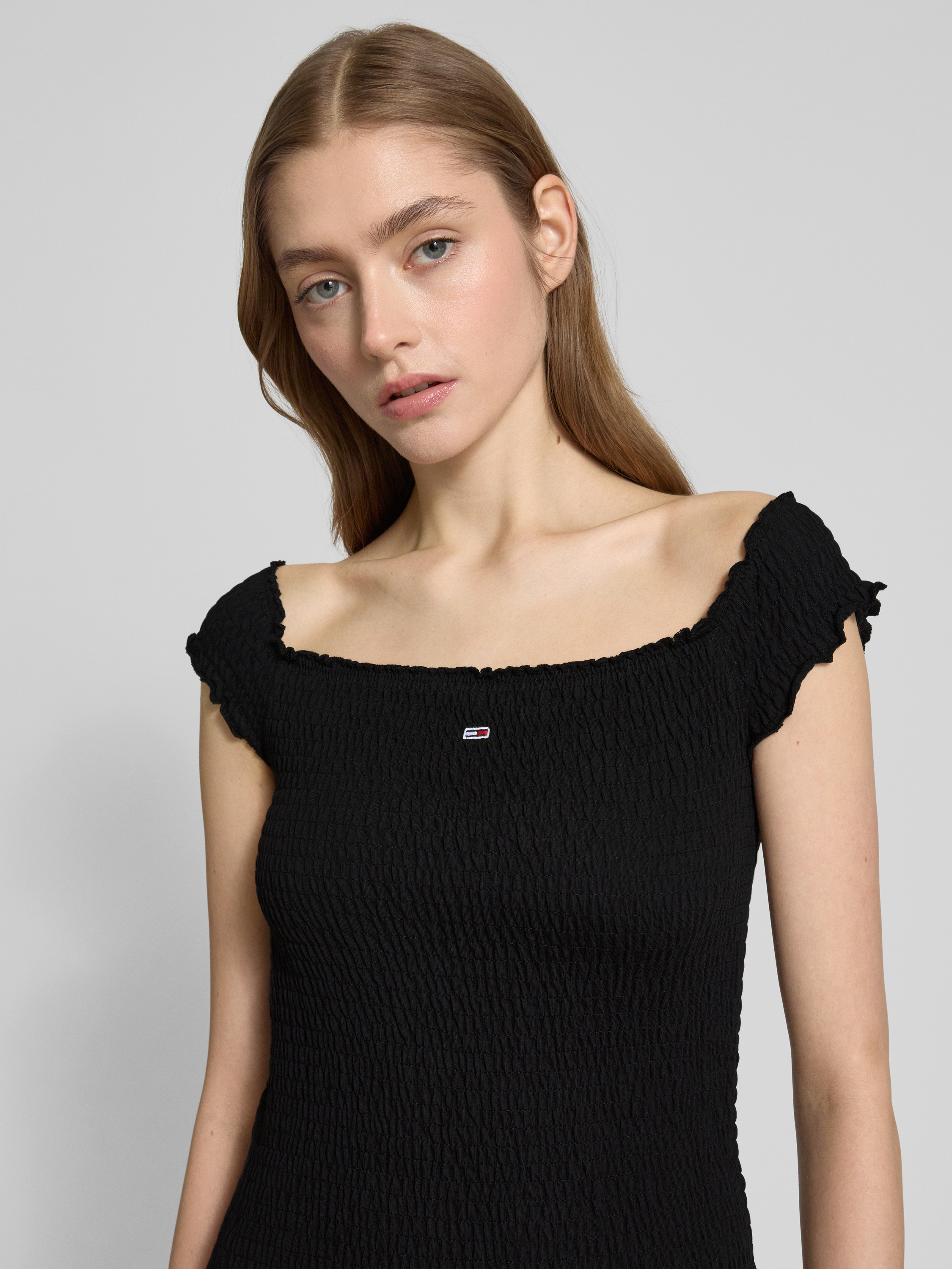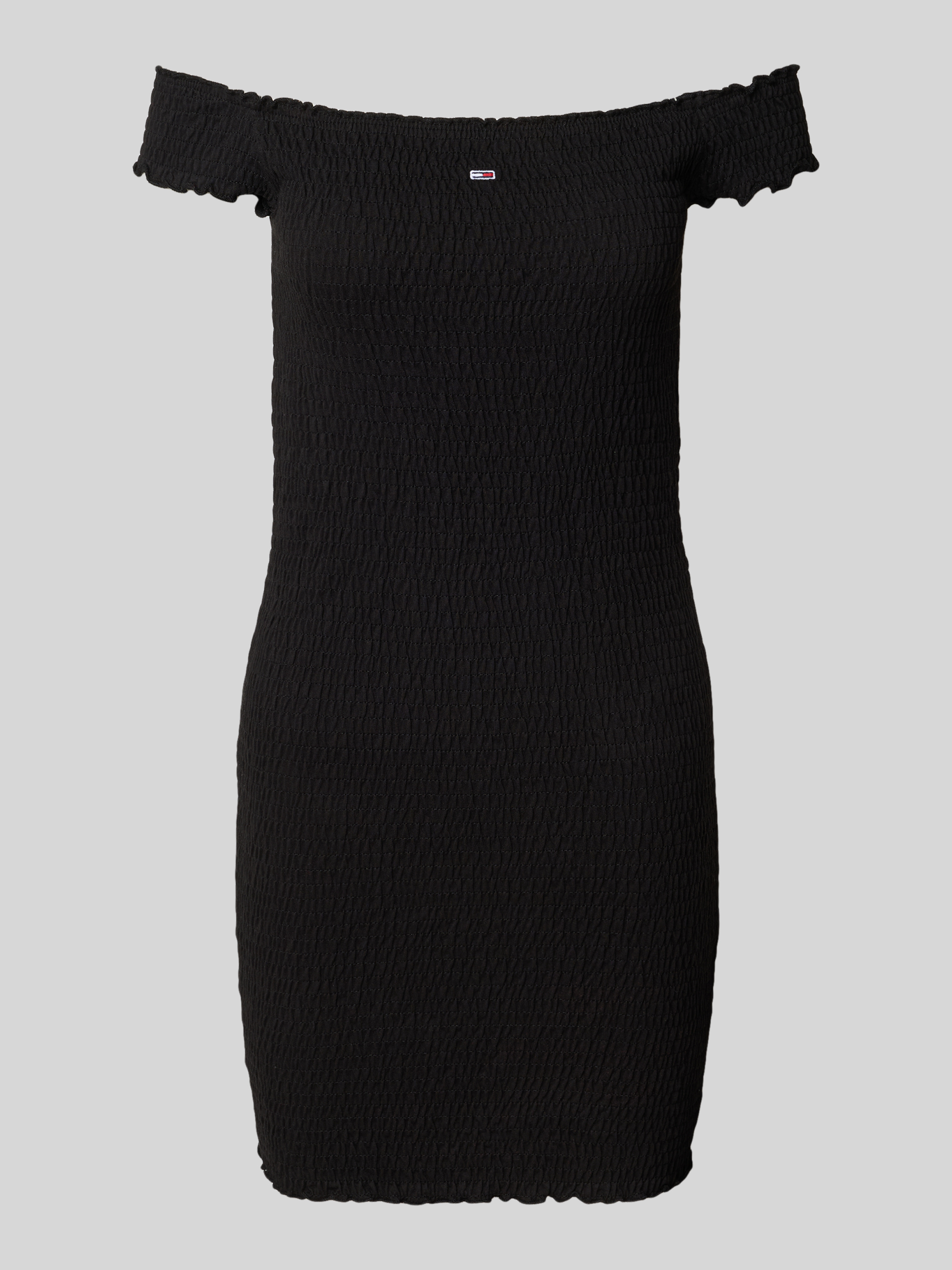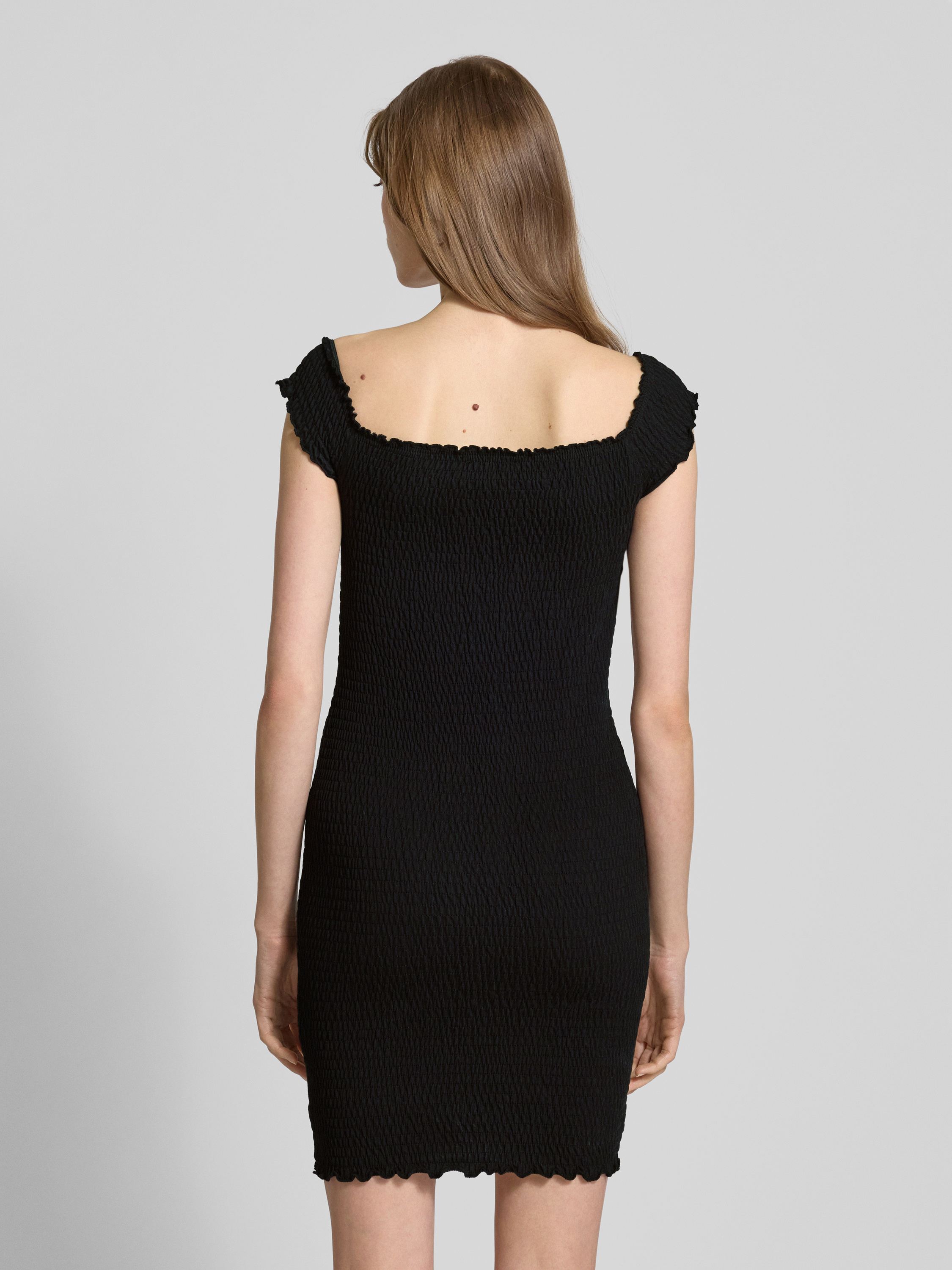 Sukienka tuba mini o kroju slim fit z dekoltem carmen - czarny