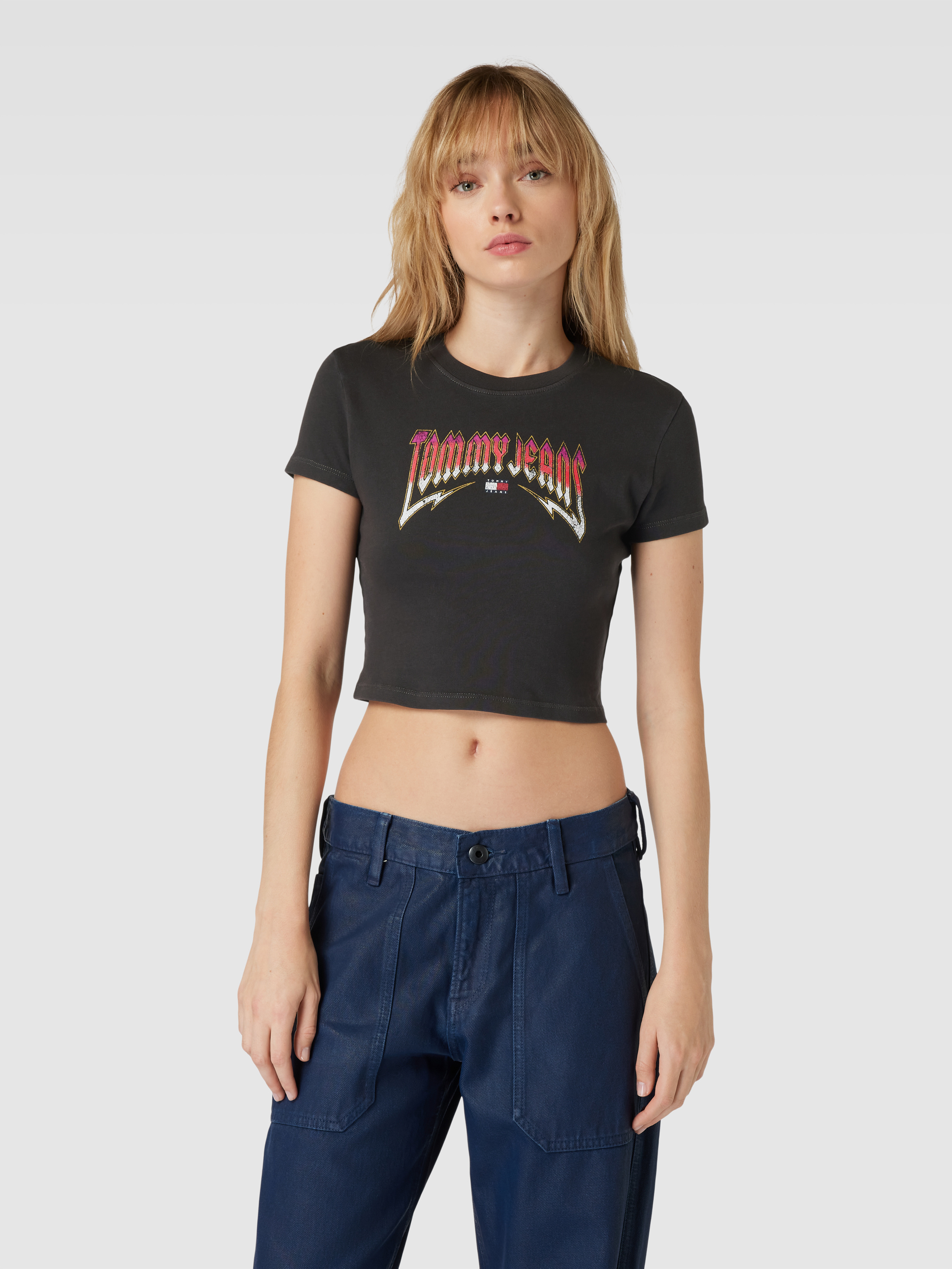 Tommy JeansT-shirt krótki z nadrukiem z logo - czarny