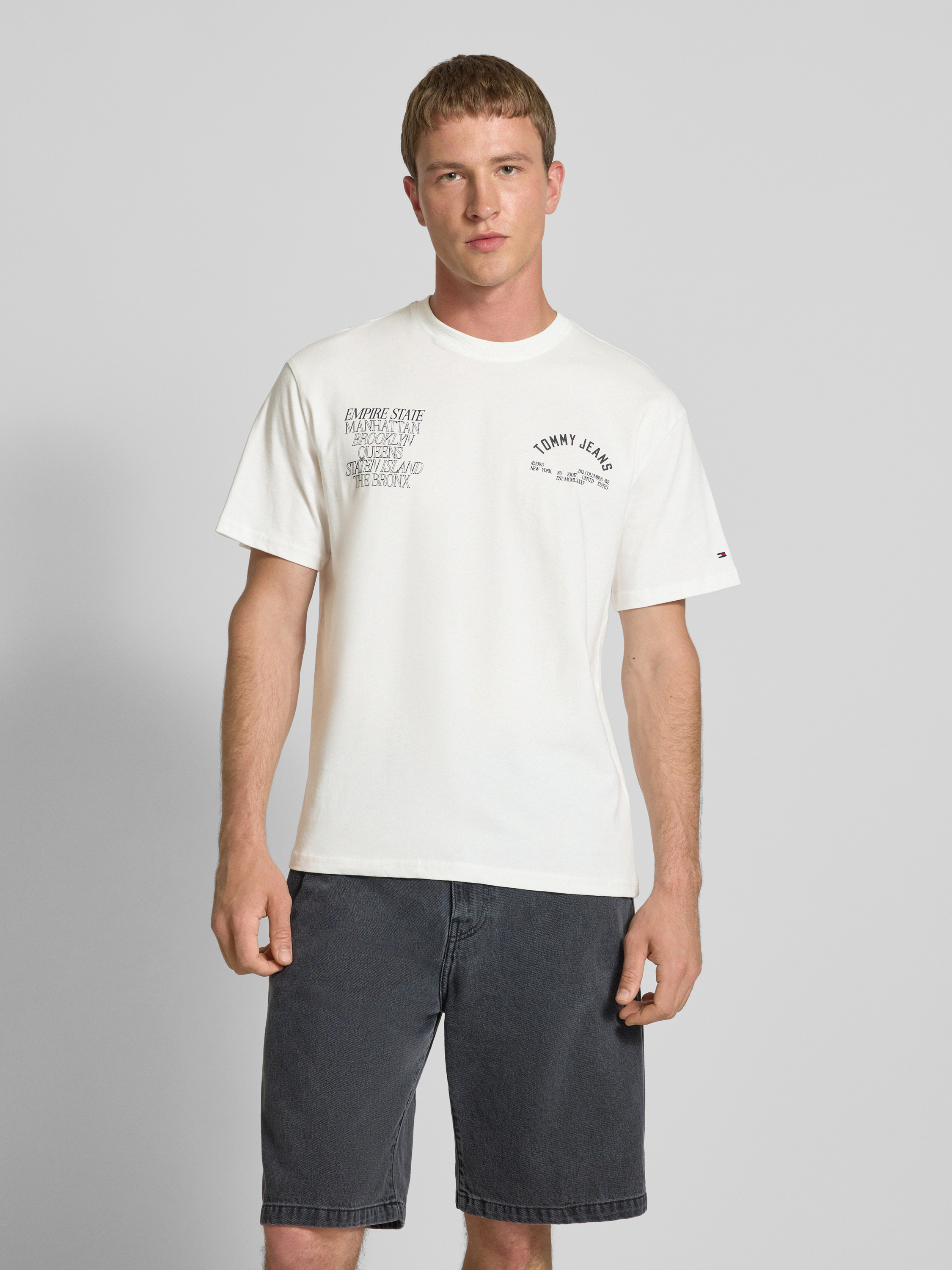 T-shirt o kroju regular fit z czystej bawełny - złamany biały