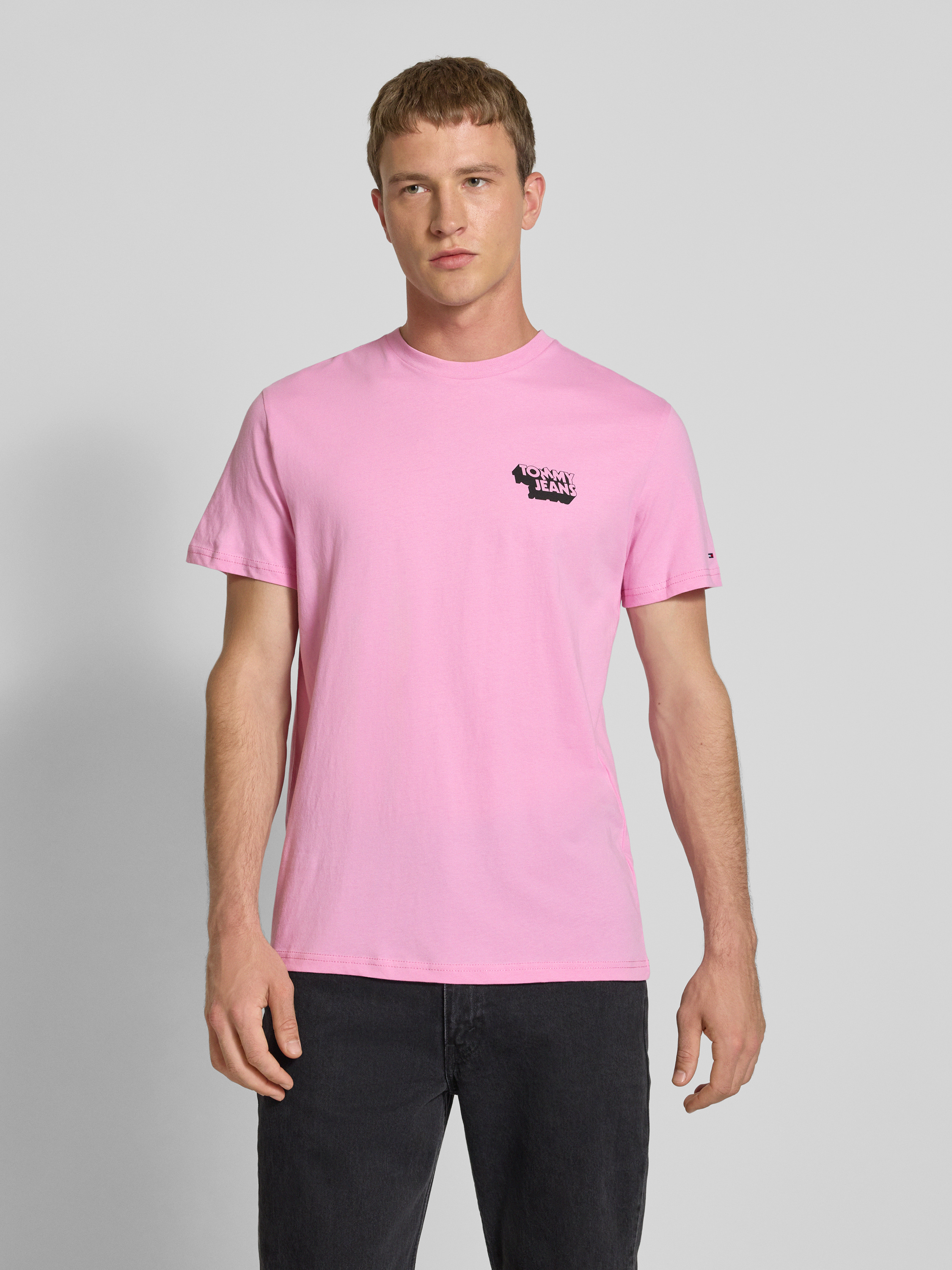 T-shirt o kroju Slim Fit z czystej bawełny - mocnoróżowy