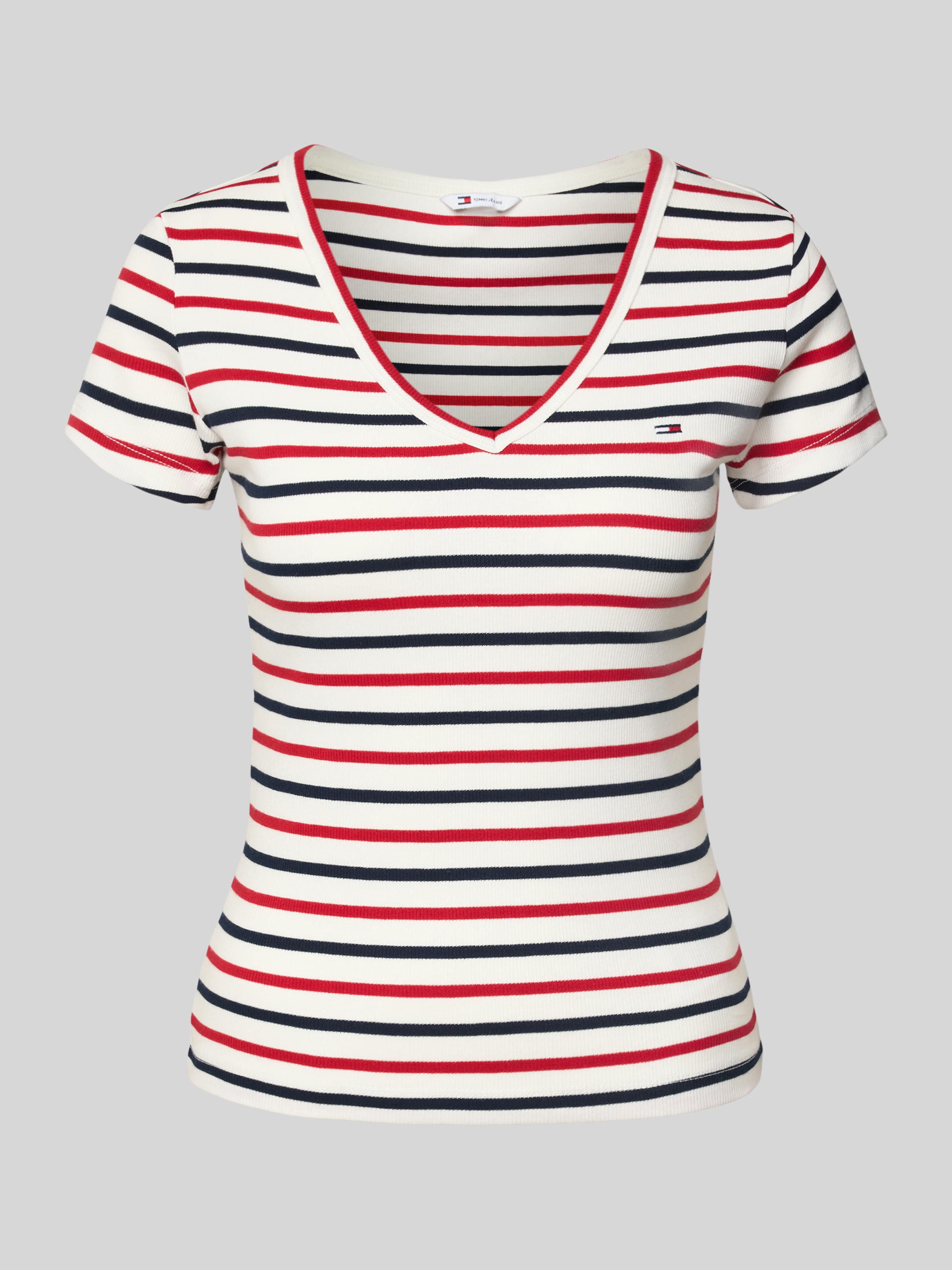 T-shirt o kroju Slim Fit z dekoltem w serek - czerwony