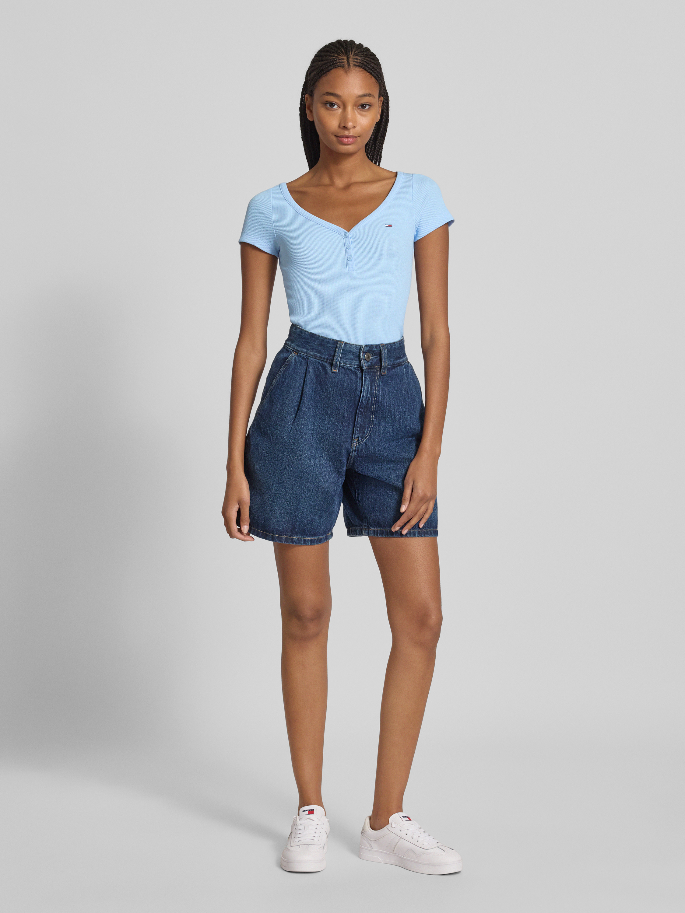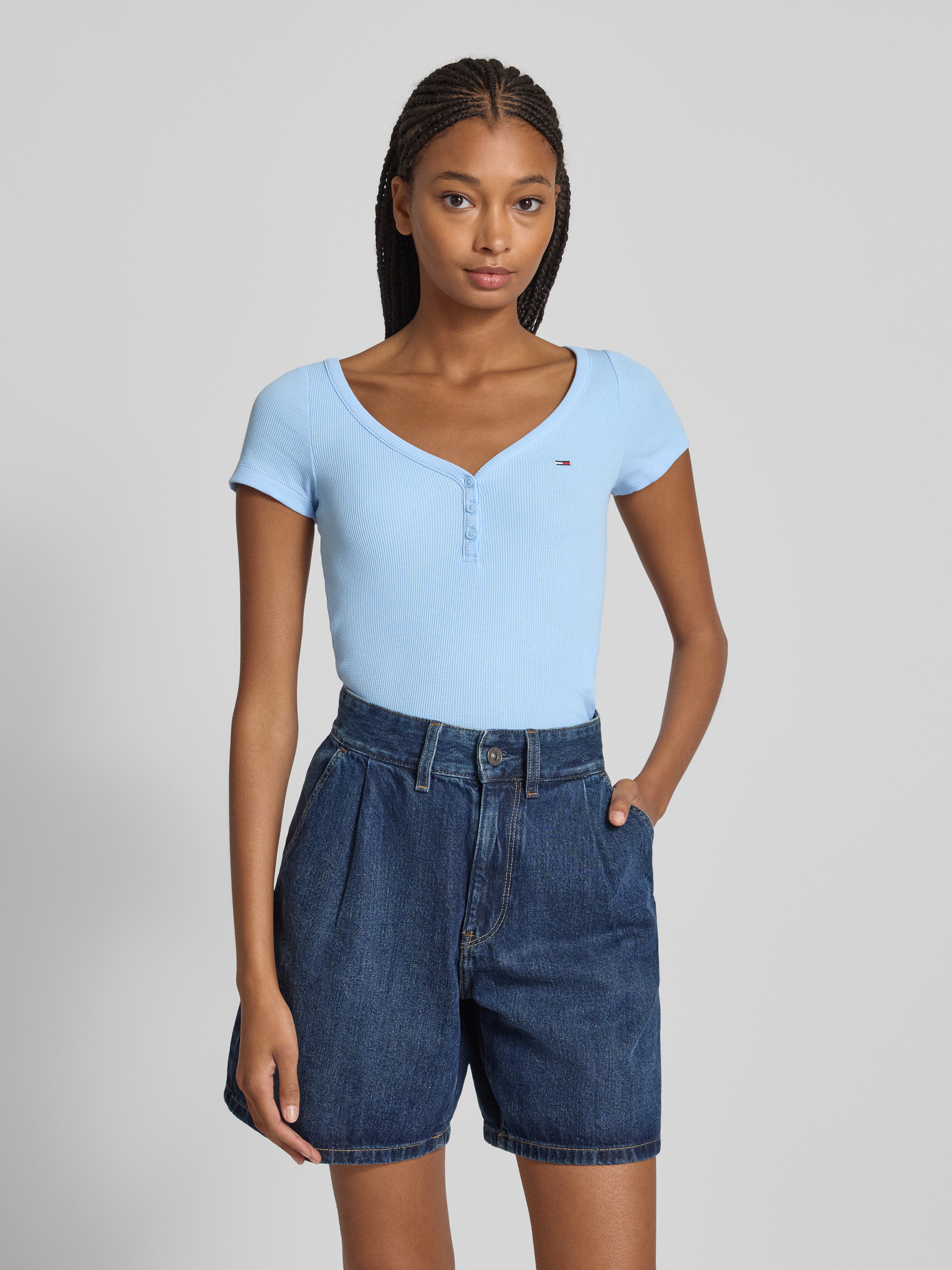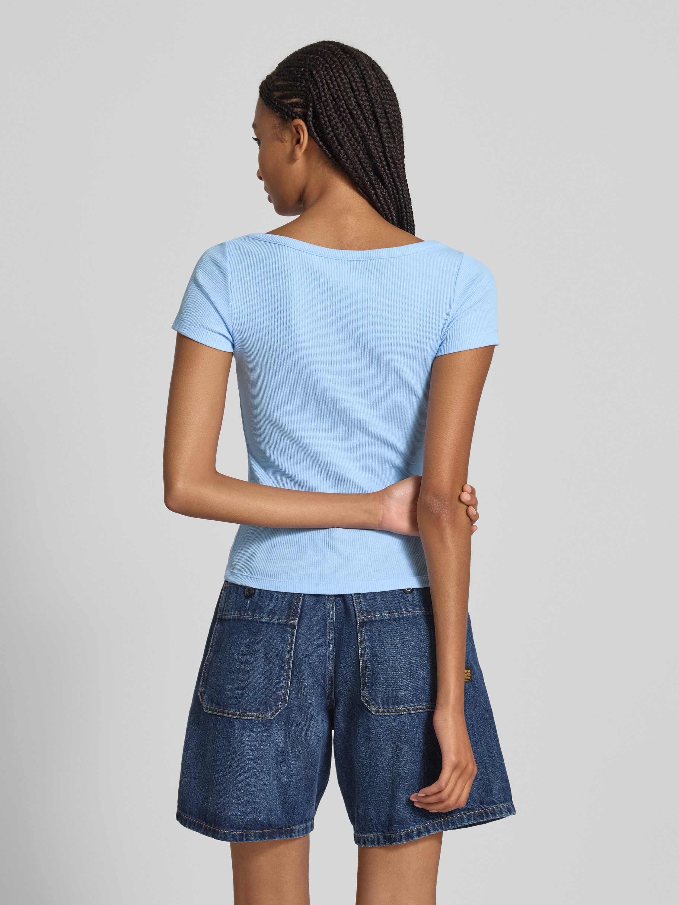 T-shirt o kroju slim fit z dzianiny o fakturze wafla - jasnoniebieski