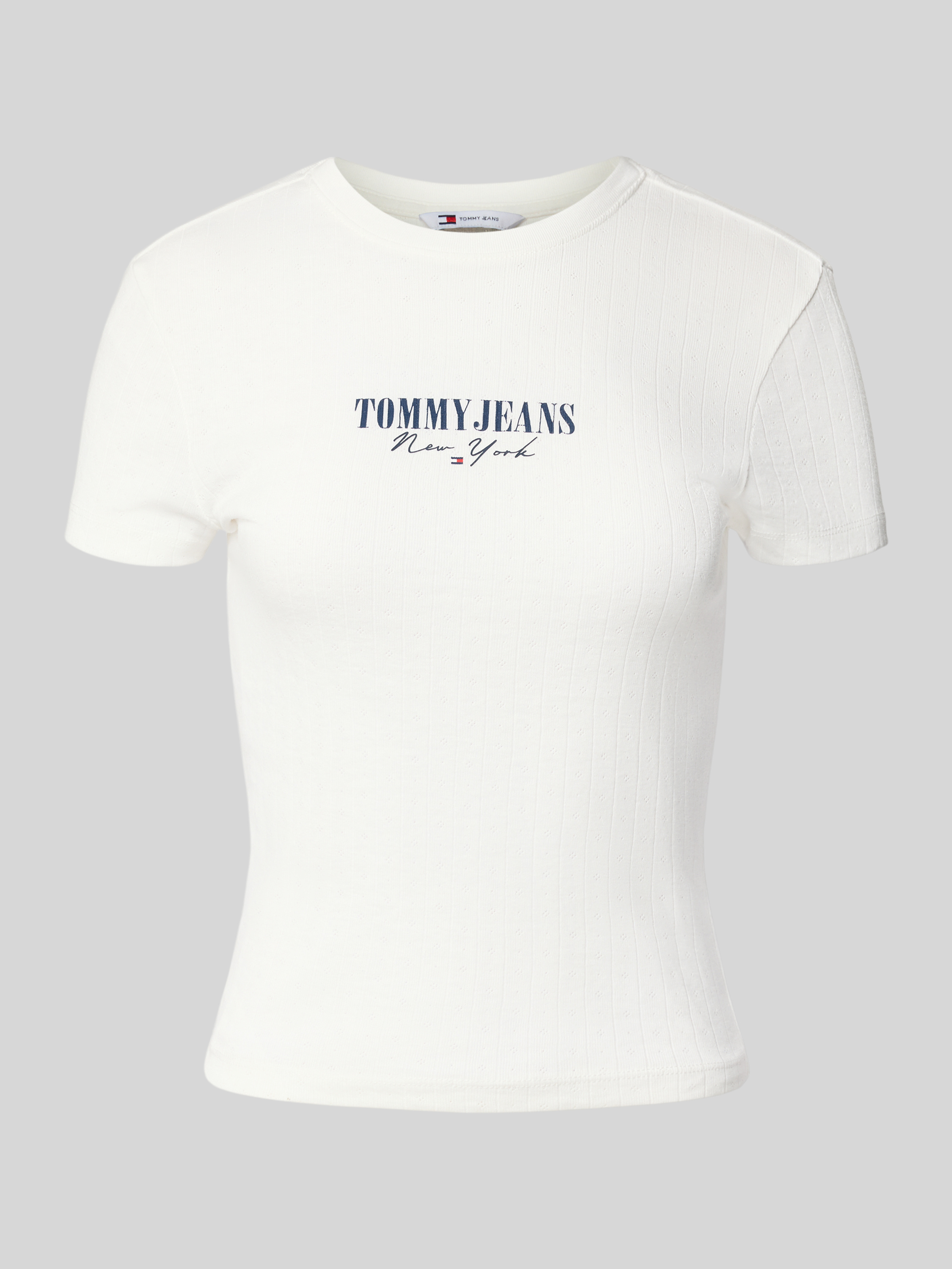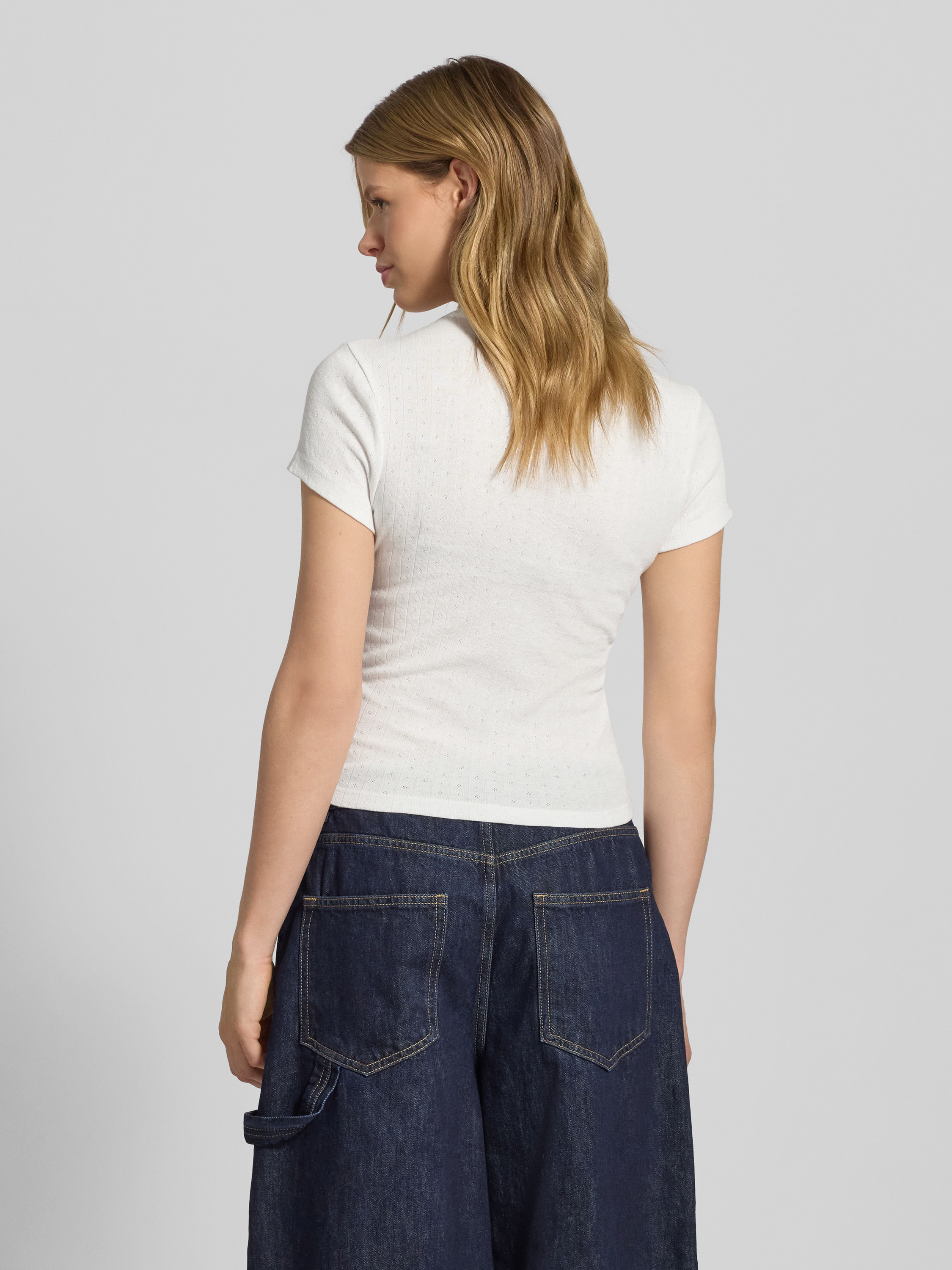 T-shirt o kroju slim fit z mieszanki bawełny - écru