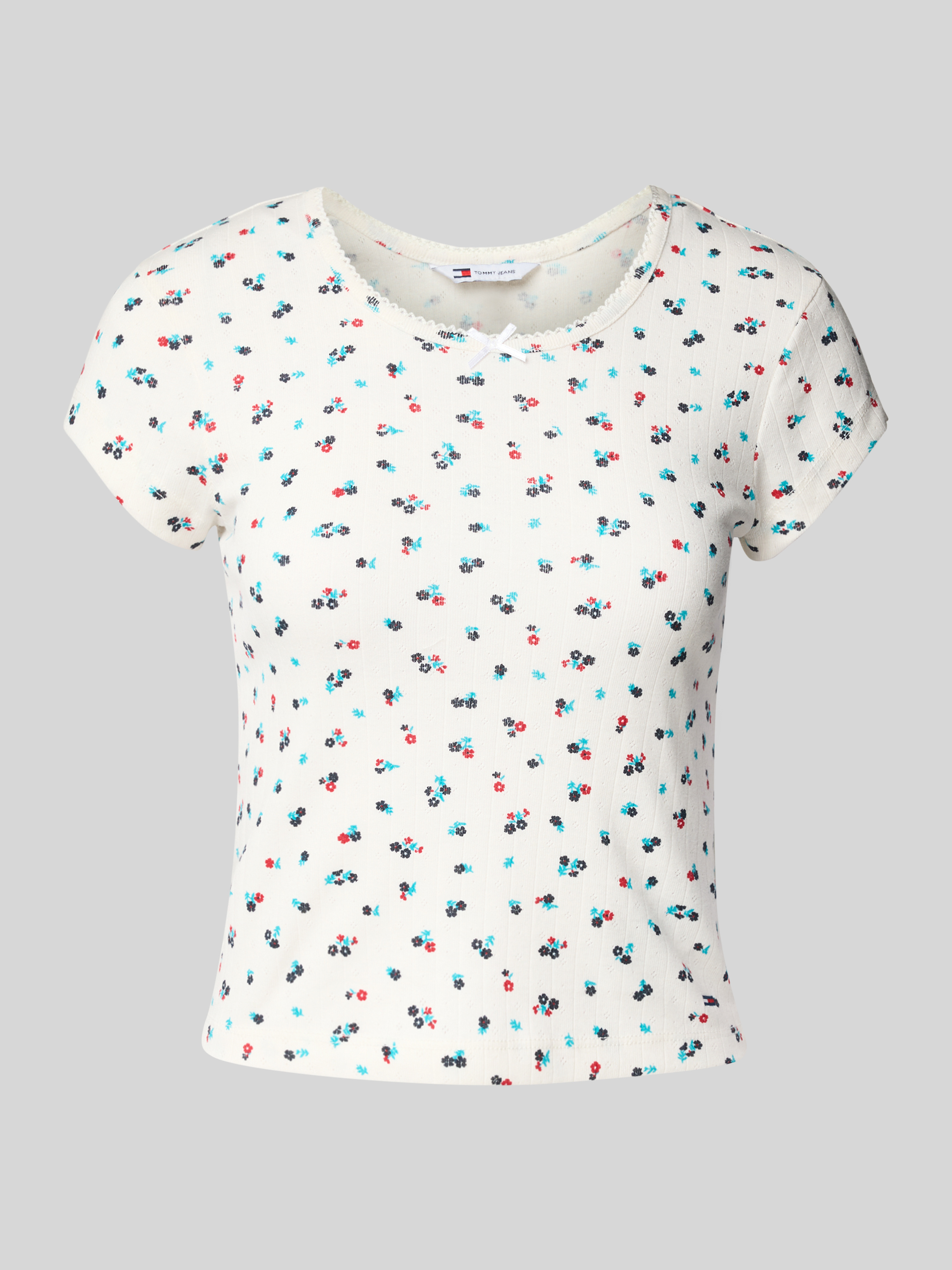 T-shirt o kroju slim fit z mieszanki bawełny - écru
