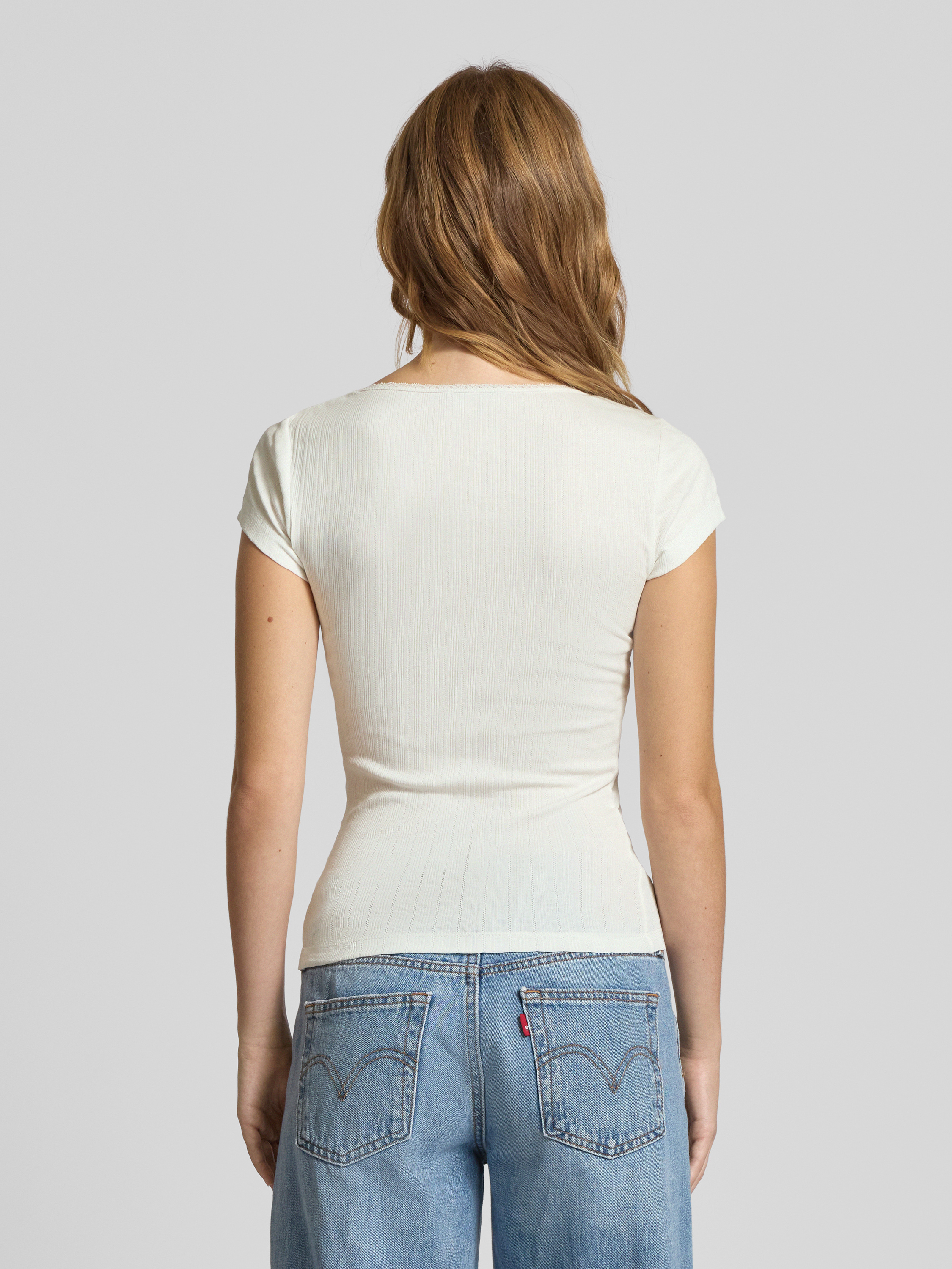T-shirt o kroju slim fit z prążkowaną fakturą - złamany biały