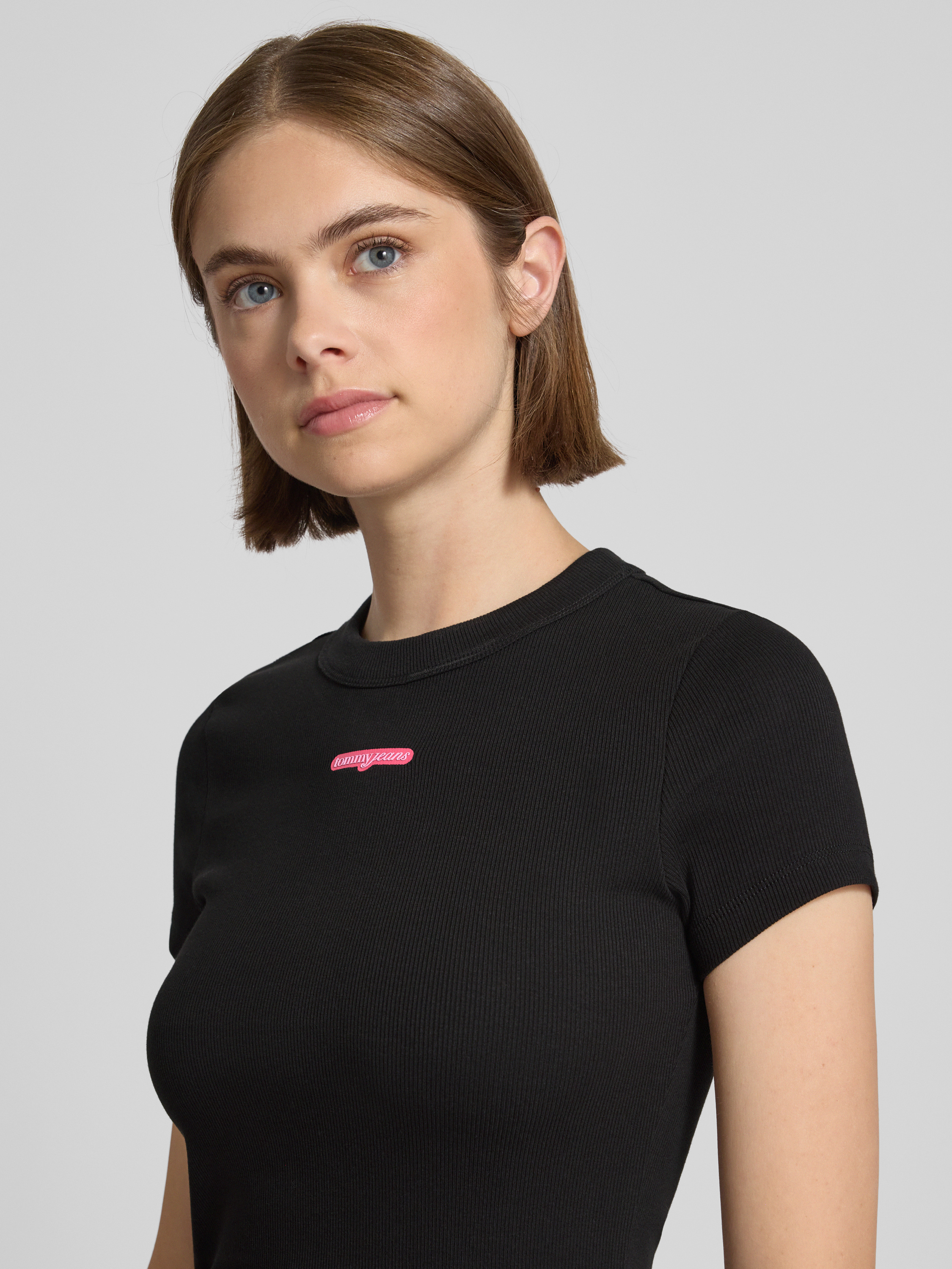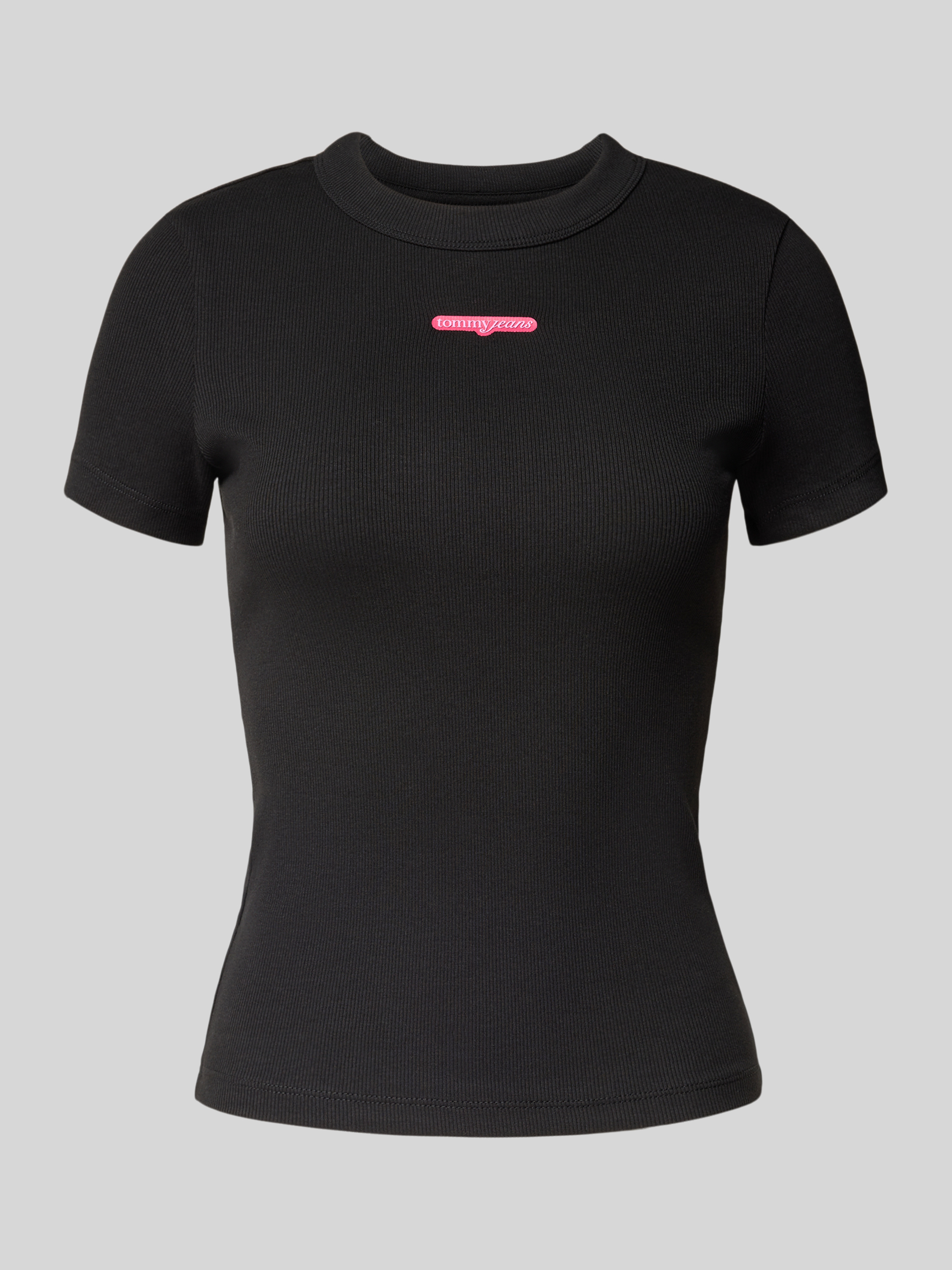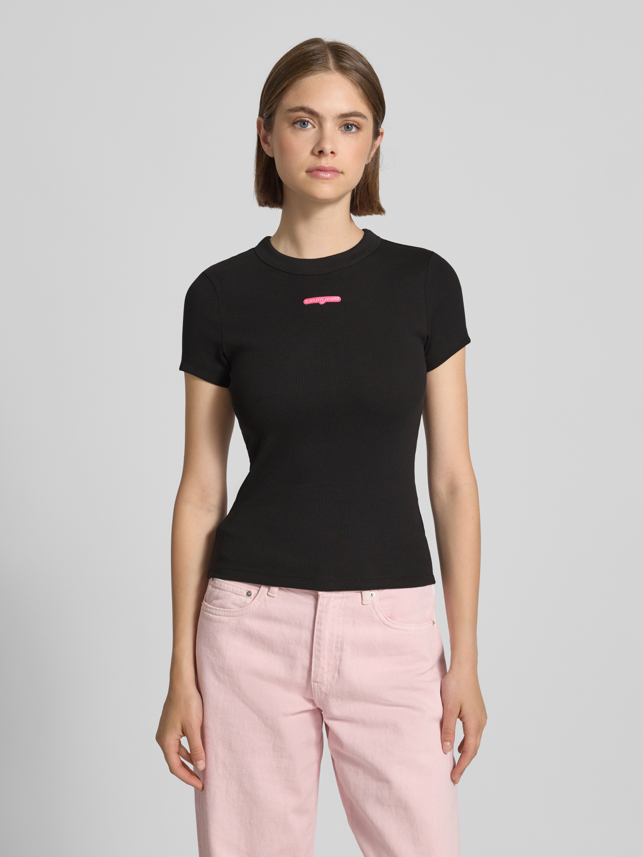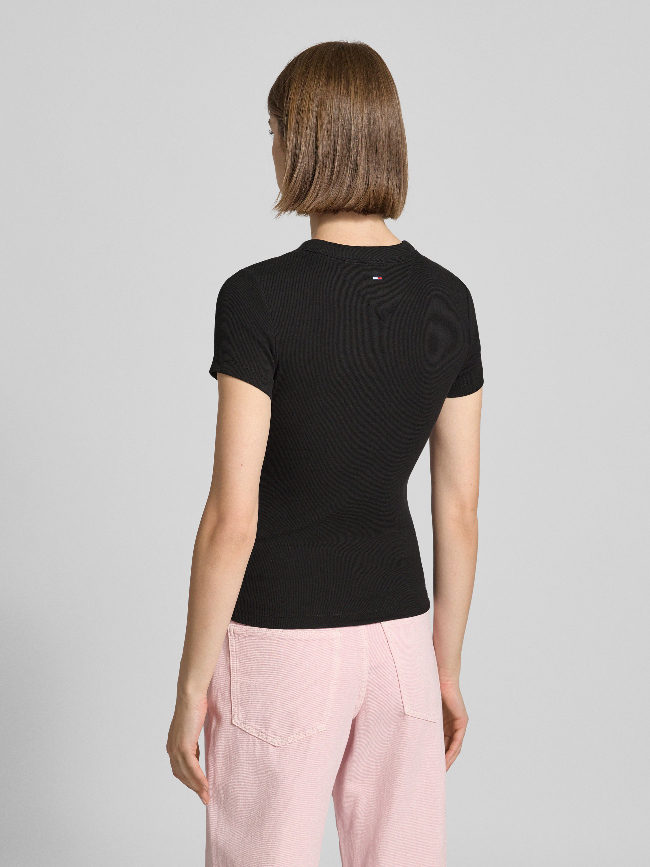 T-shirt o kroju slim fit z prążkowaniem - czarny
