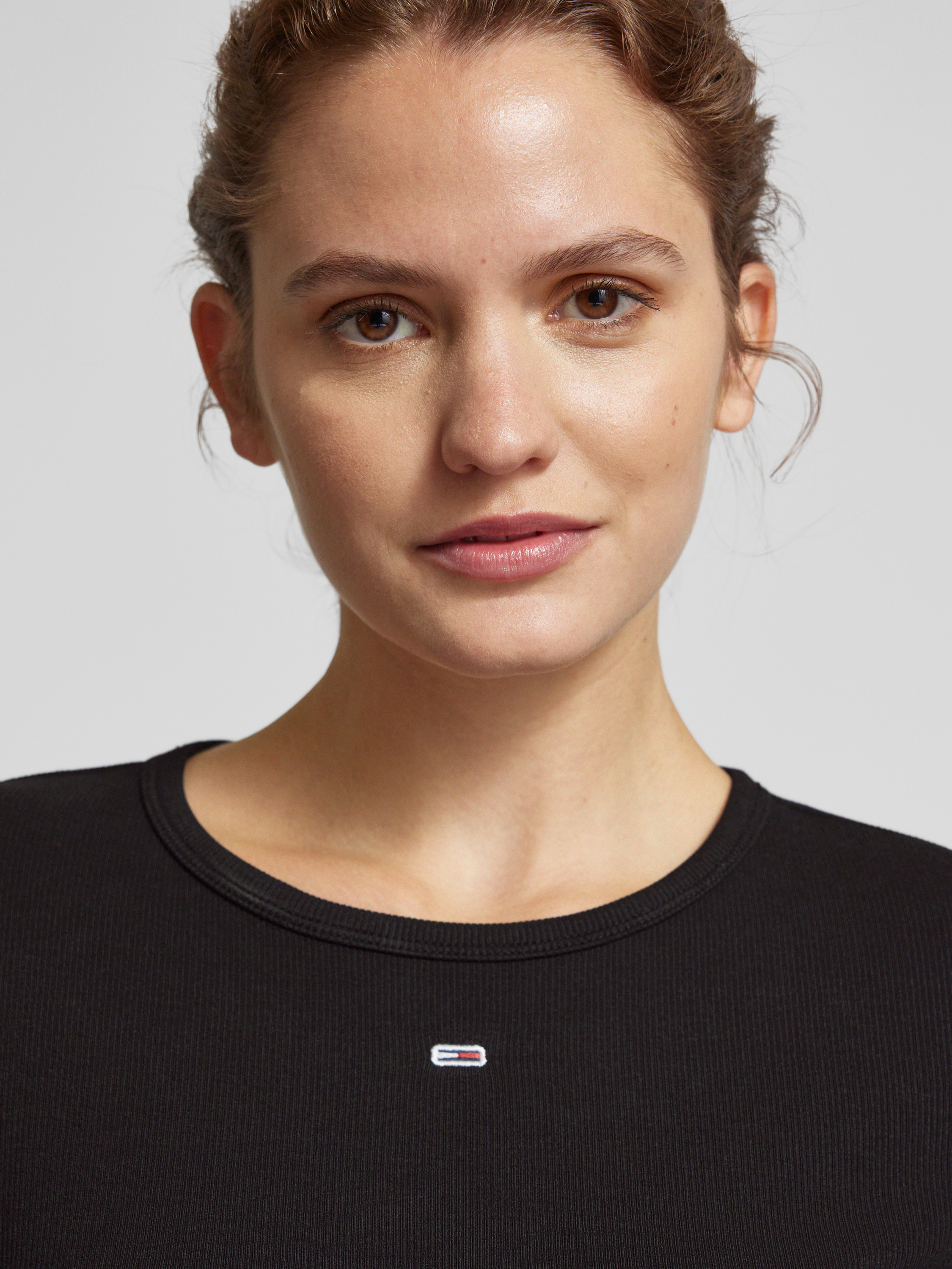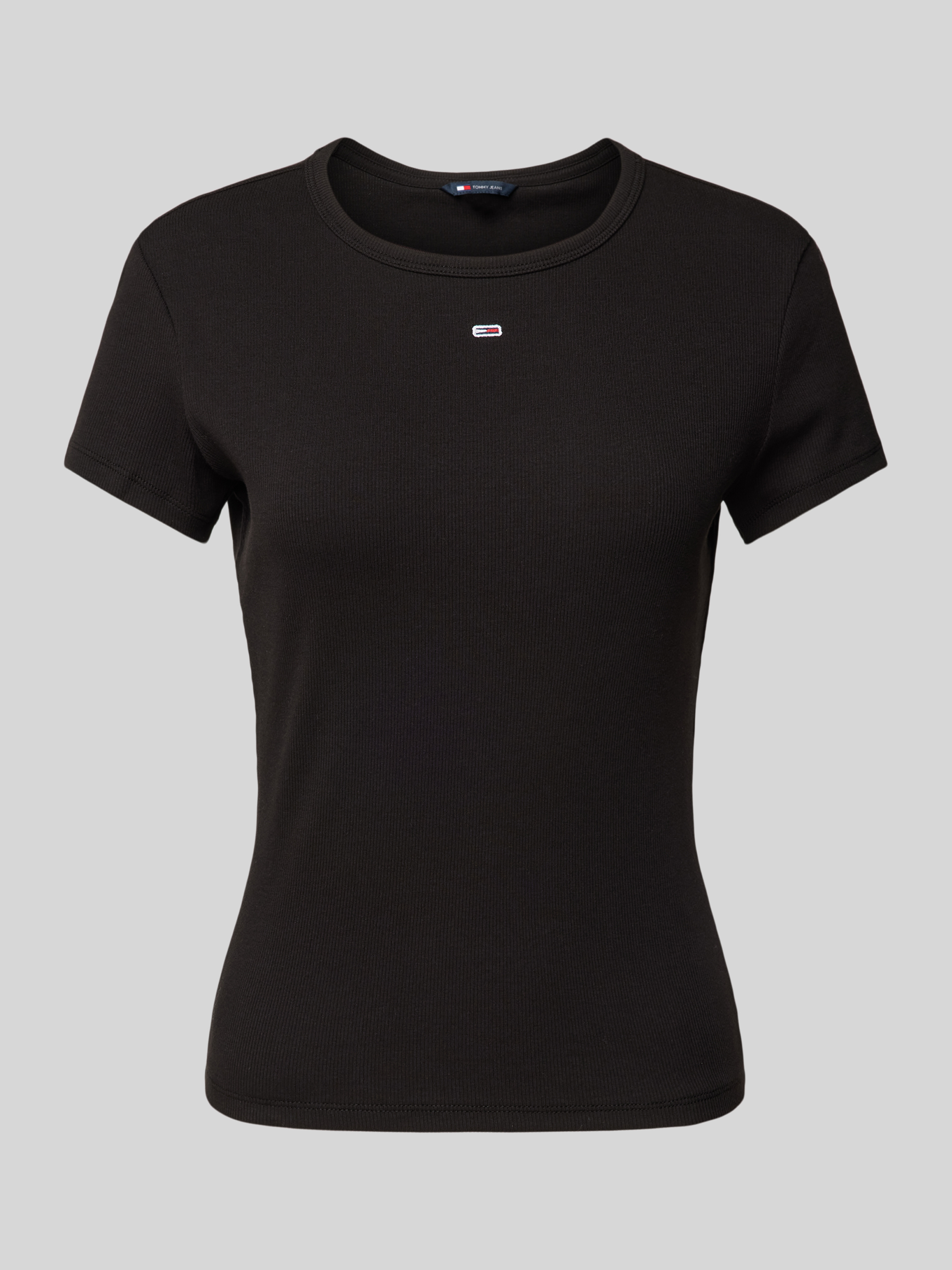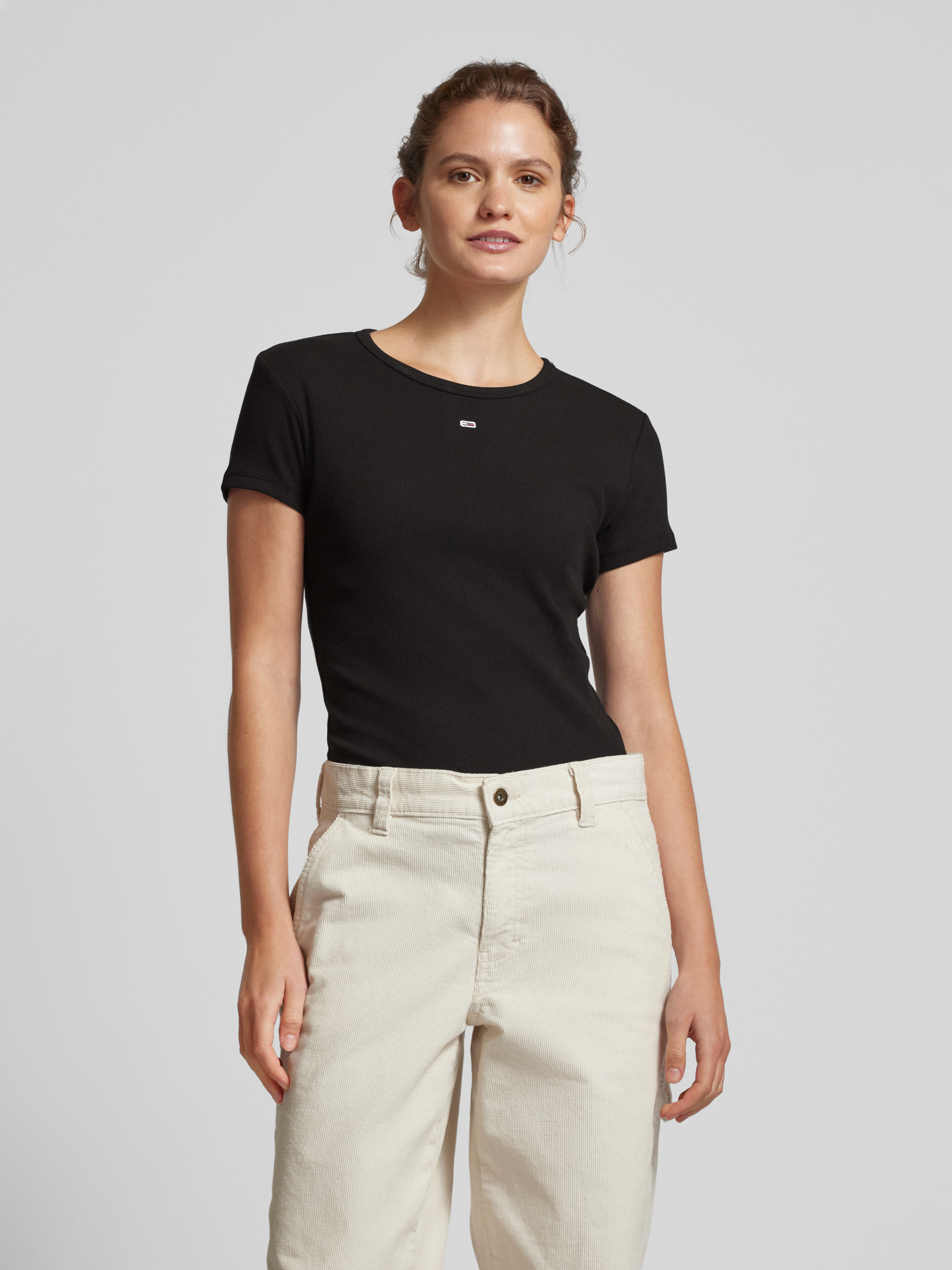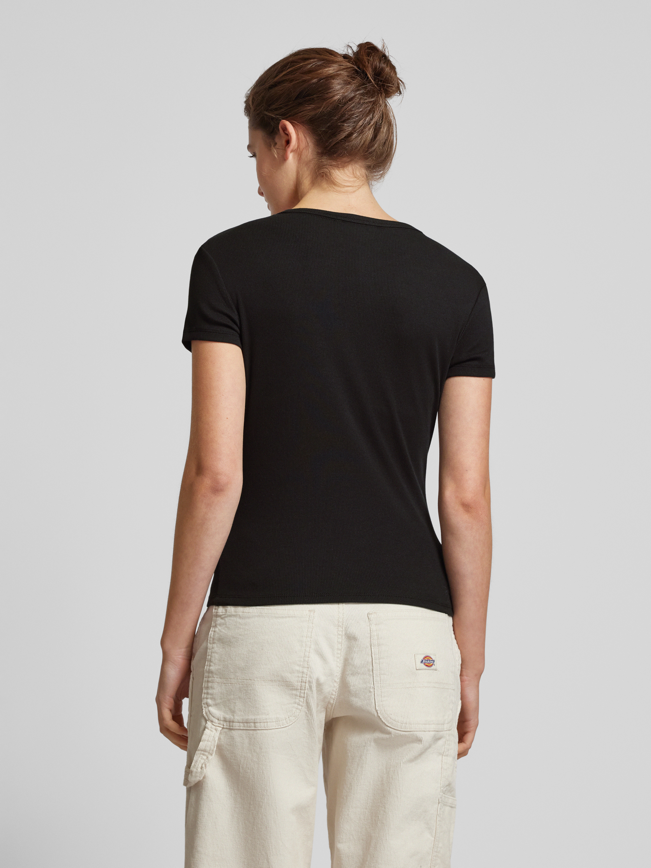 T-shirt o kroju slim fit z wyhaftowanym logo - czarny