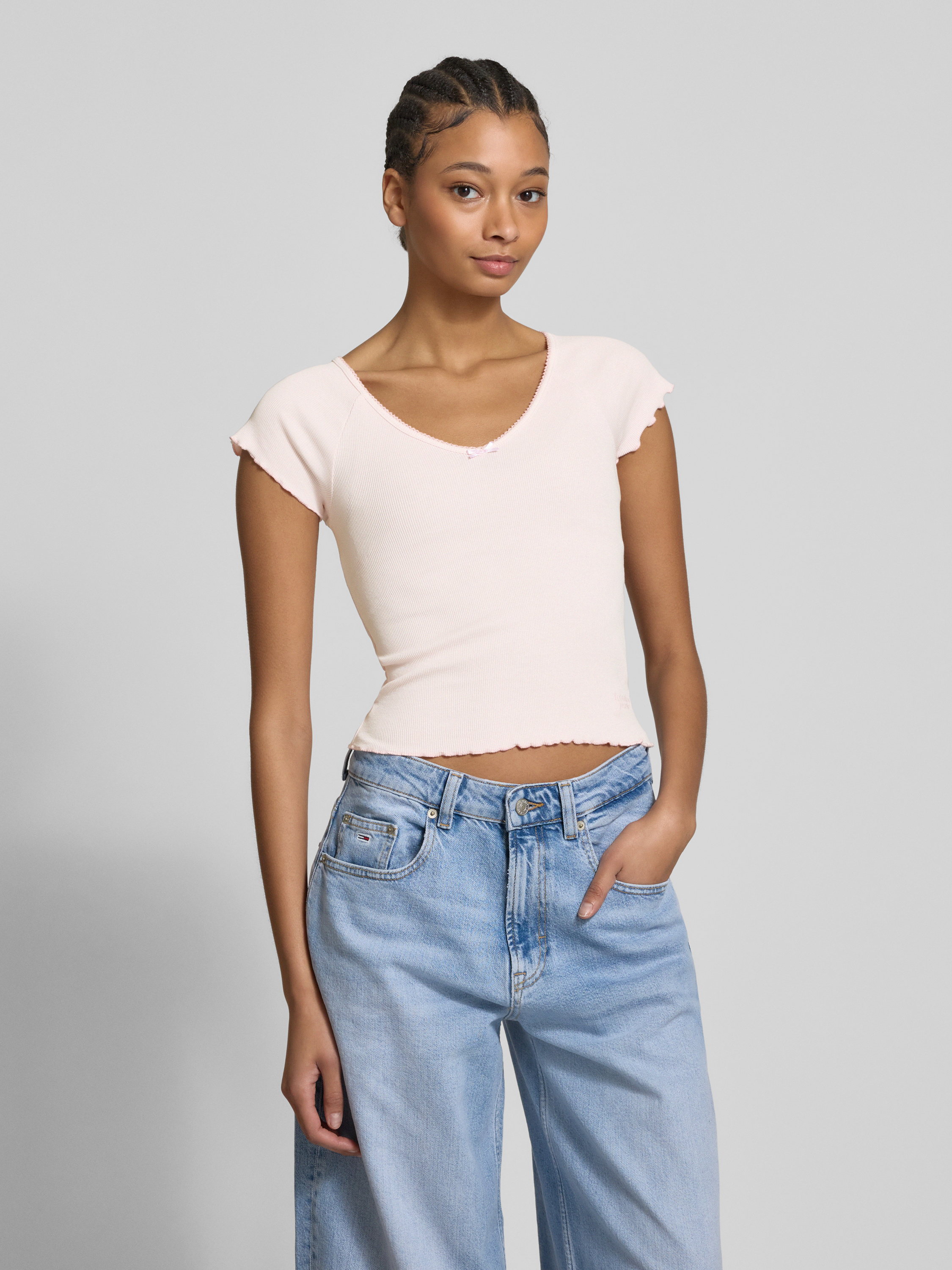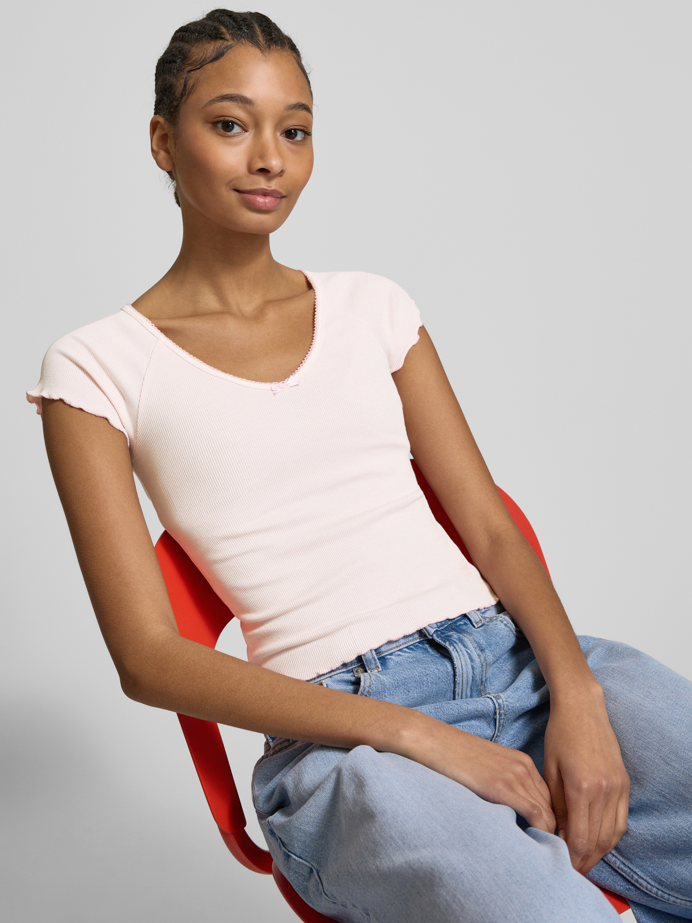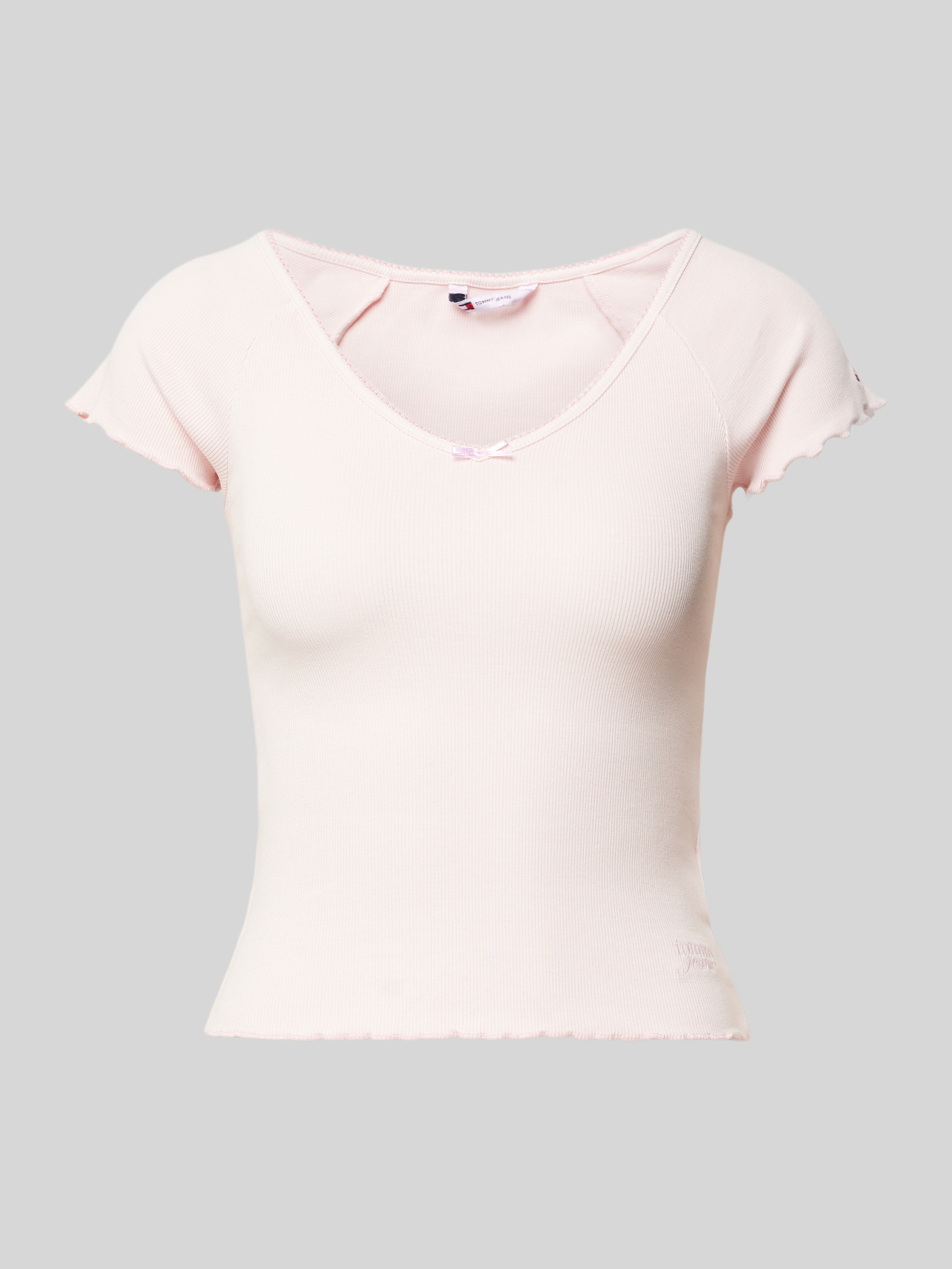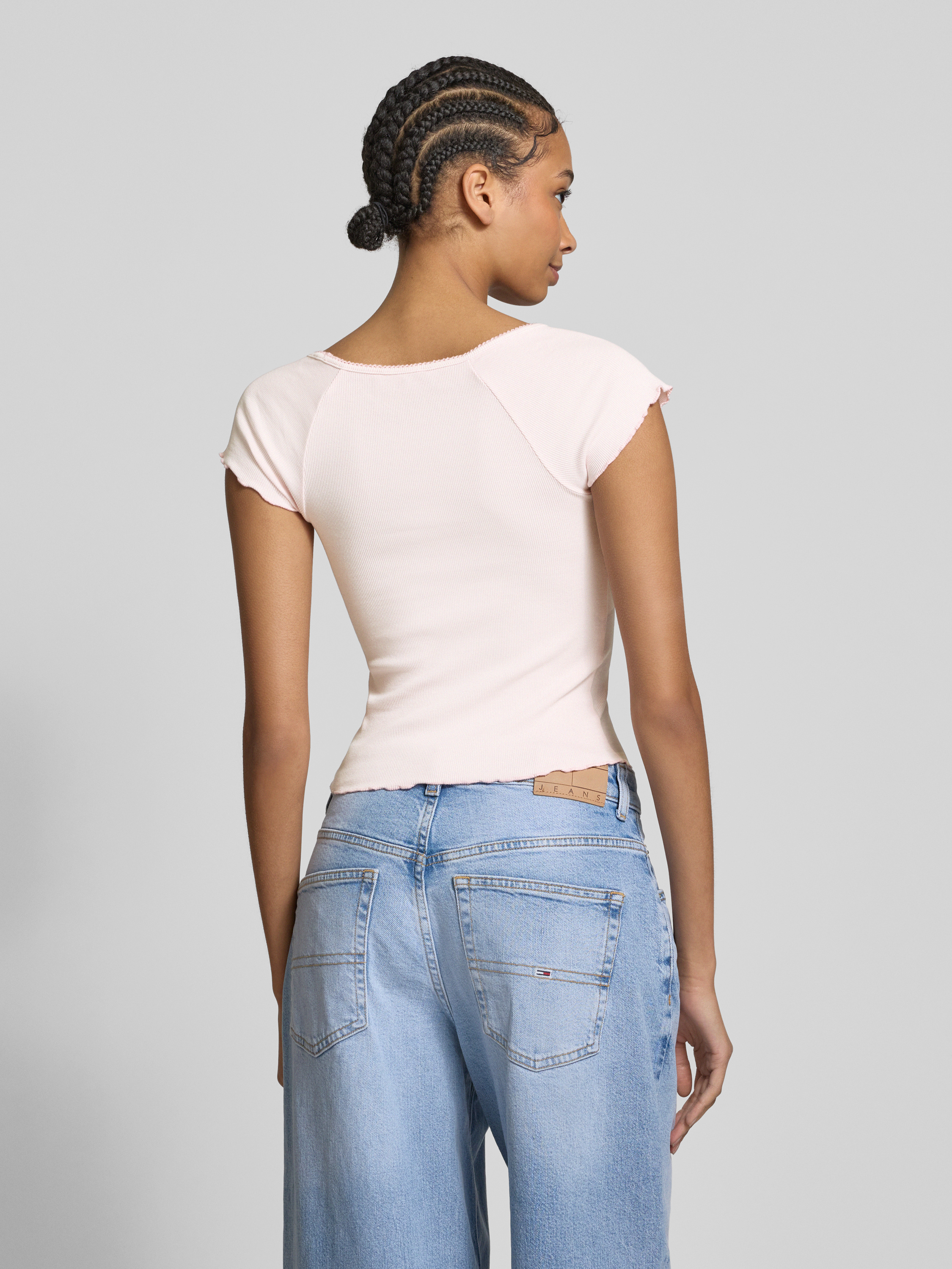T-shirt z głębokim dekoltem w łódkę - różowy