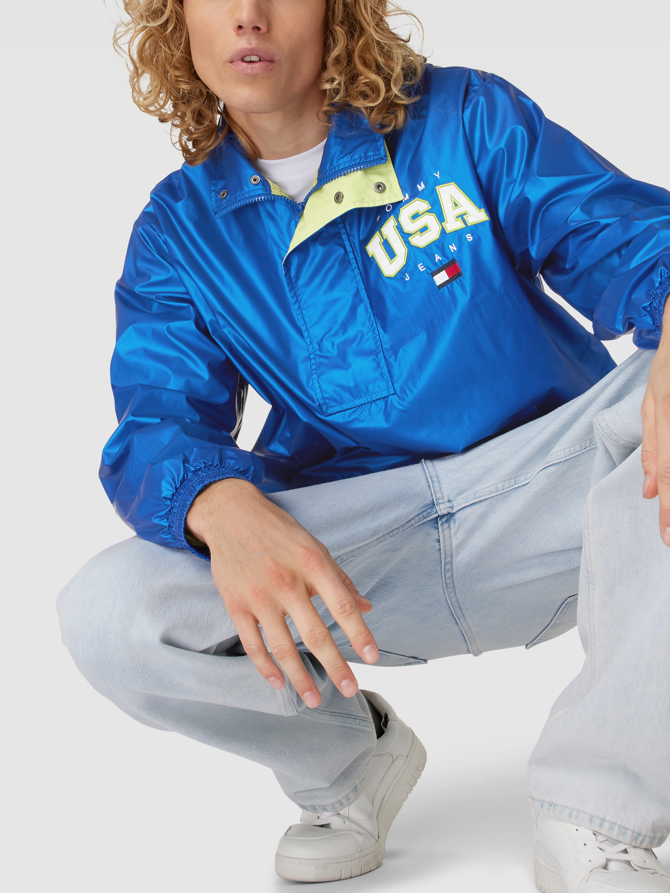 Wiatrówka z wyhaftowanym logo model ‘METALLIC’ - królewski niebieski
