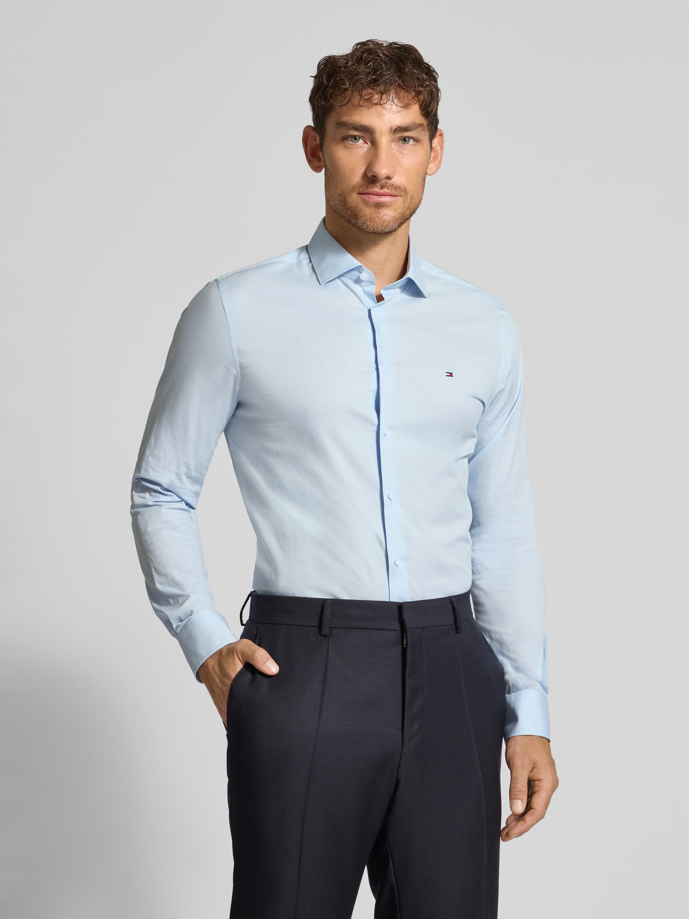 Koszula biznesowa o kroju slim fit z kołnierzykiem typu kent - błękitny