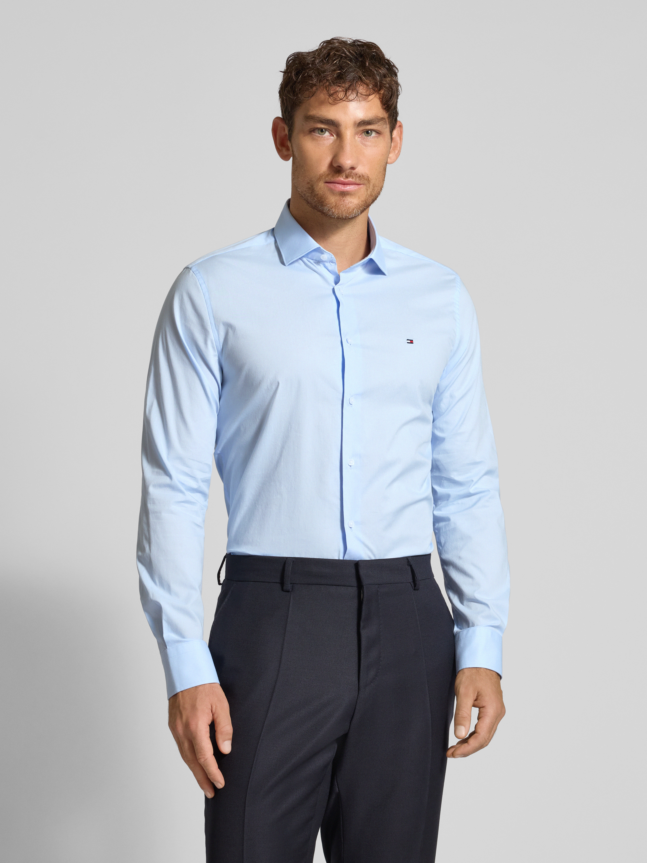 Koszula biznesowa o kroju slim fit z kołnierzykiem typu kent - niebieski
