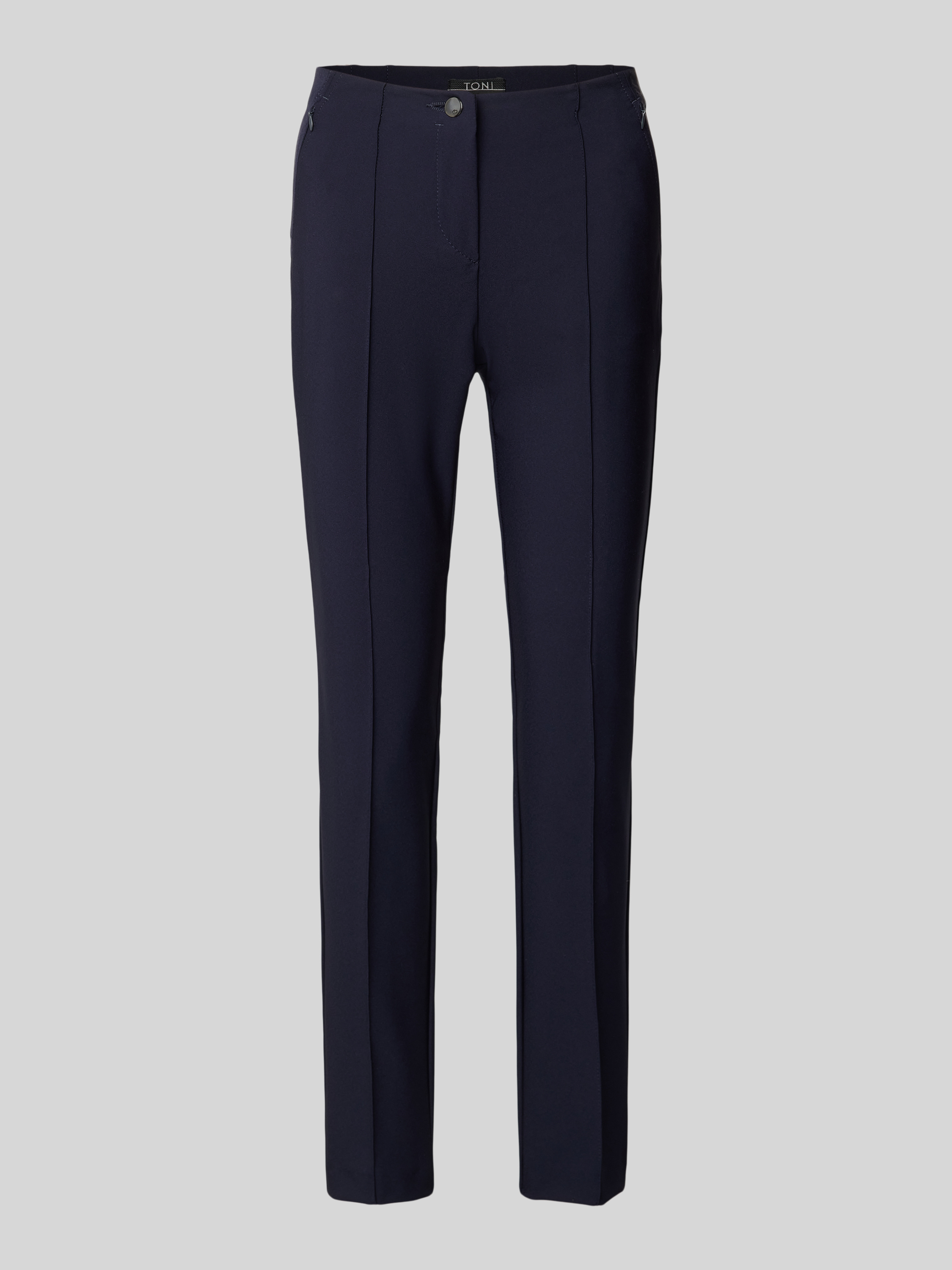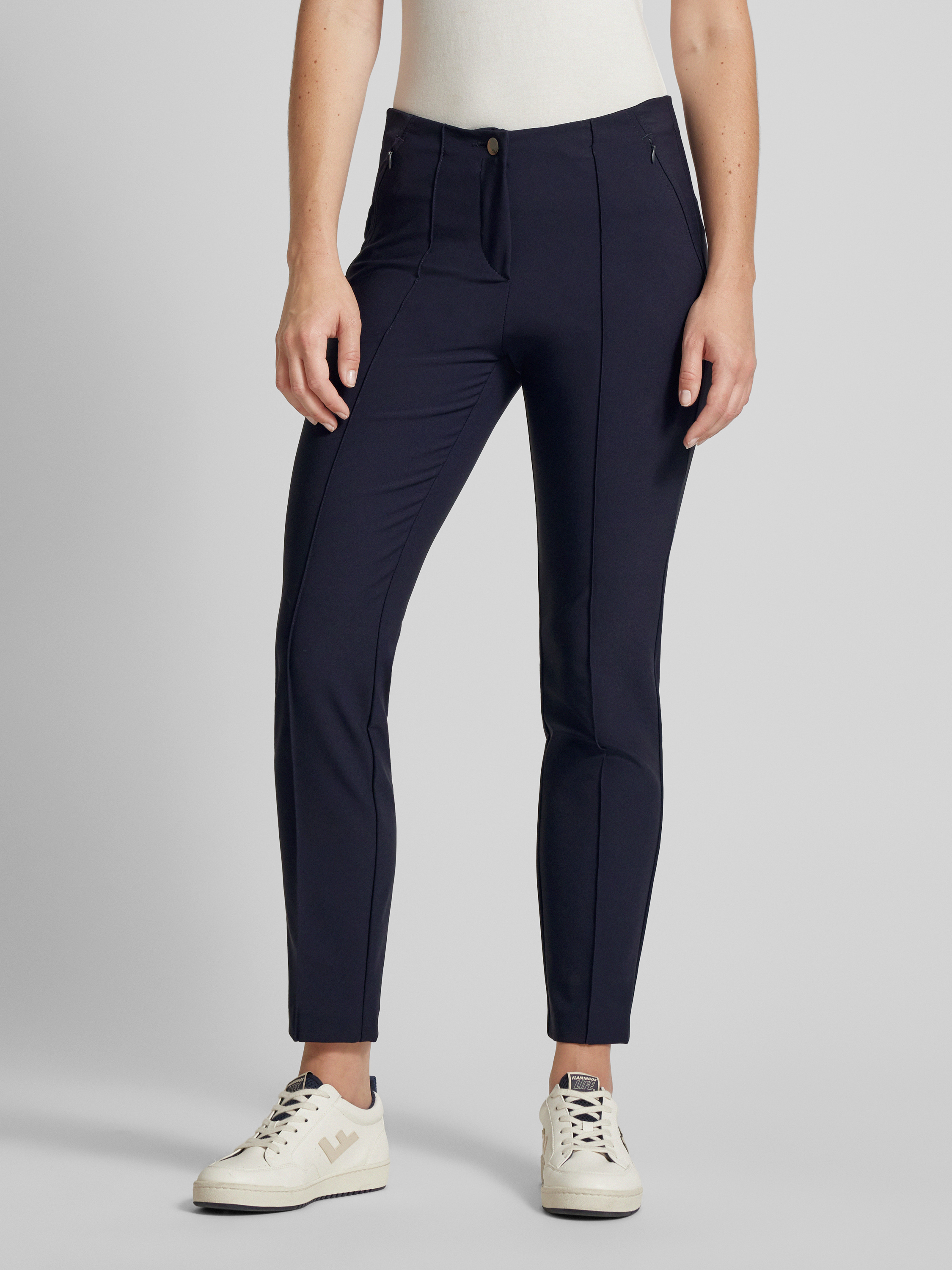 Spodnie materiałowe o kroju regular fit z kieszeniami zapinanymi na zamek błyskawiczny model ‘Alessa’ - granatowy