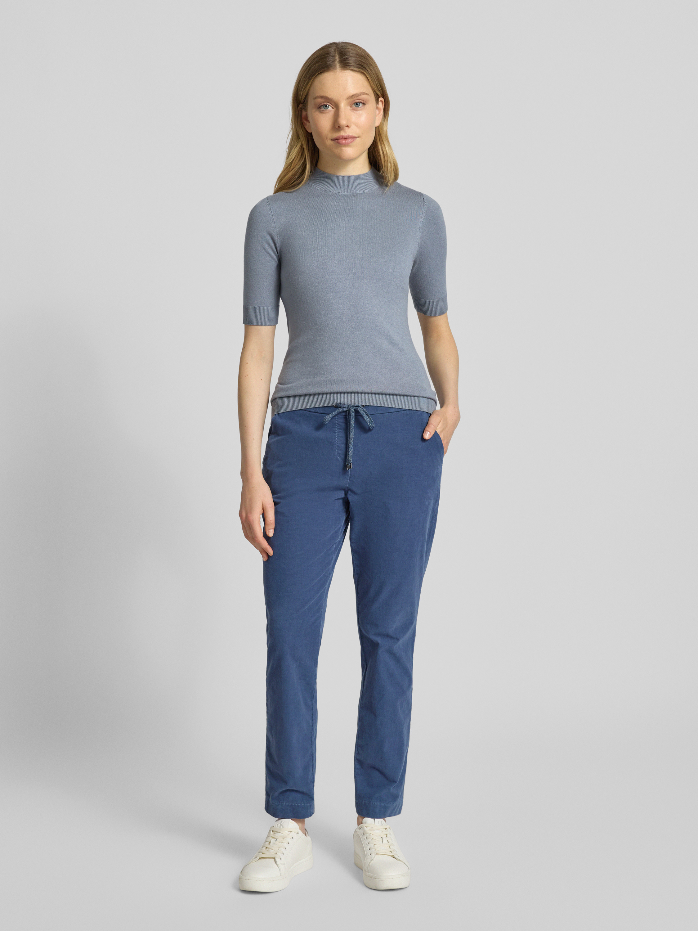Spodnie o skróconym kroju z elastycznym pasem model ‘sue’ - niebieski