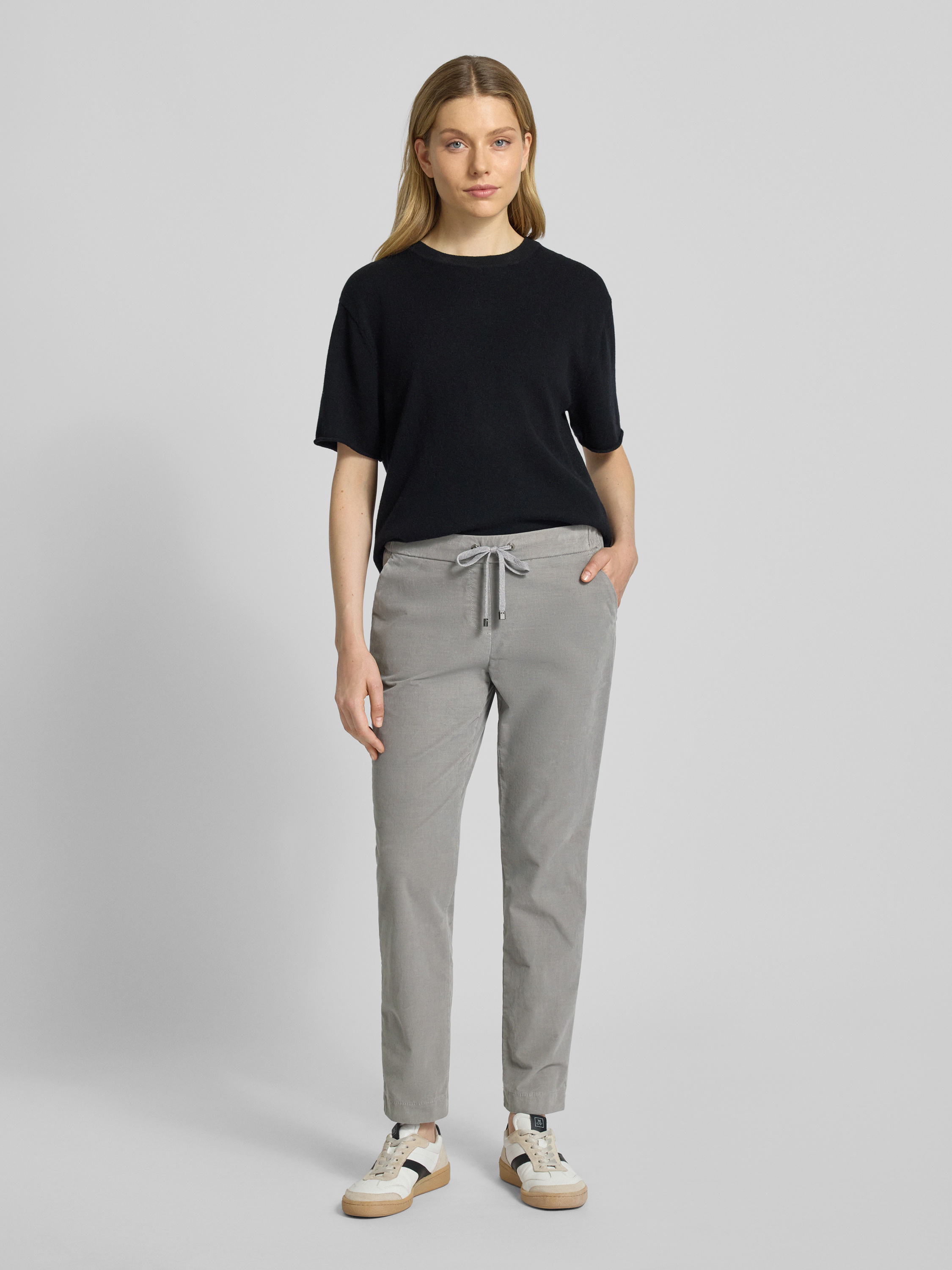 Spodnie o skróconym kroju z elastycznym pasem model ‘sue’ - średnioszary