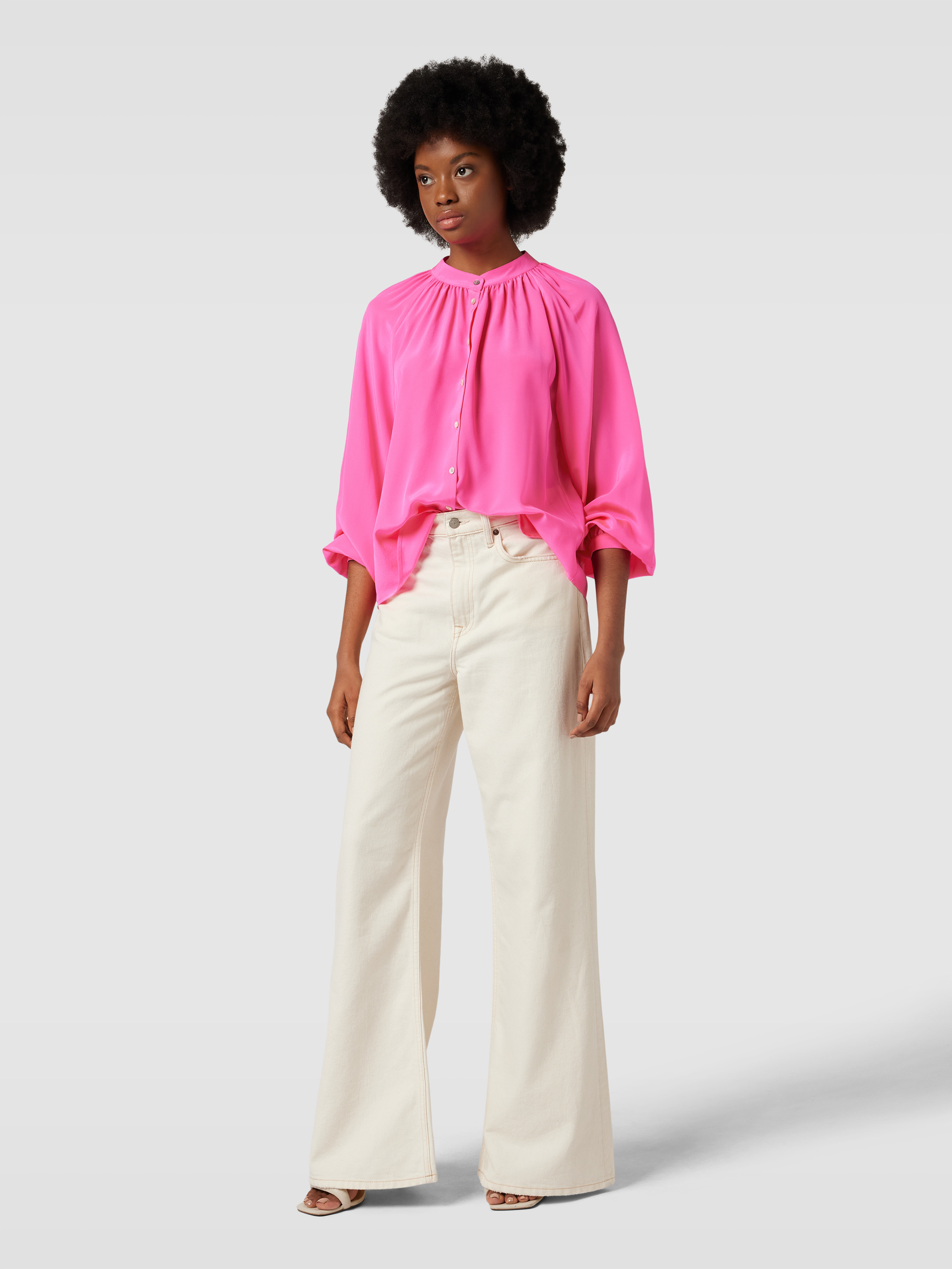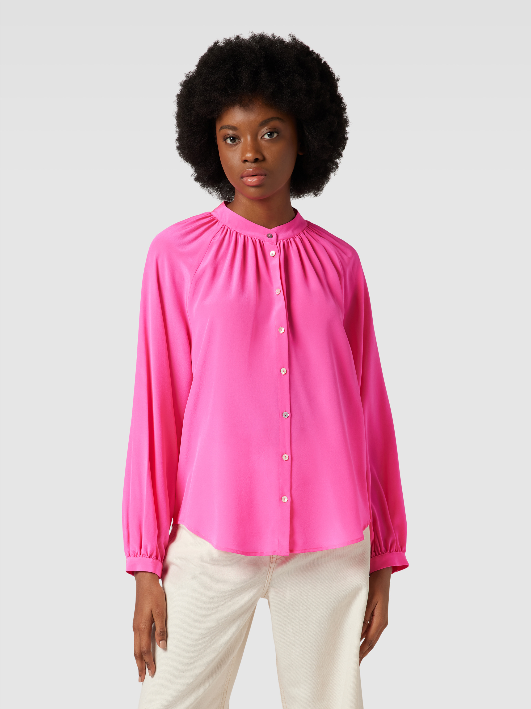 Bluzka jedwabna w jednolitym kolorze model ‘Birteton’ - mocnoróżowy