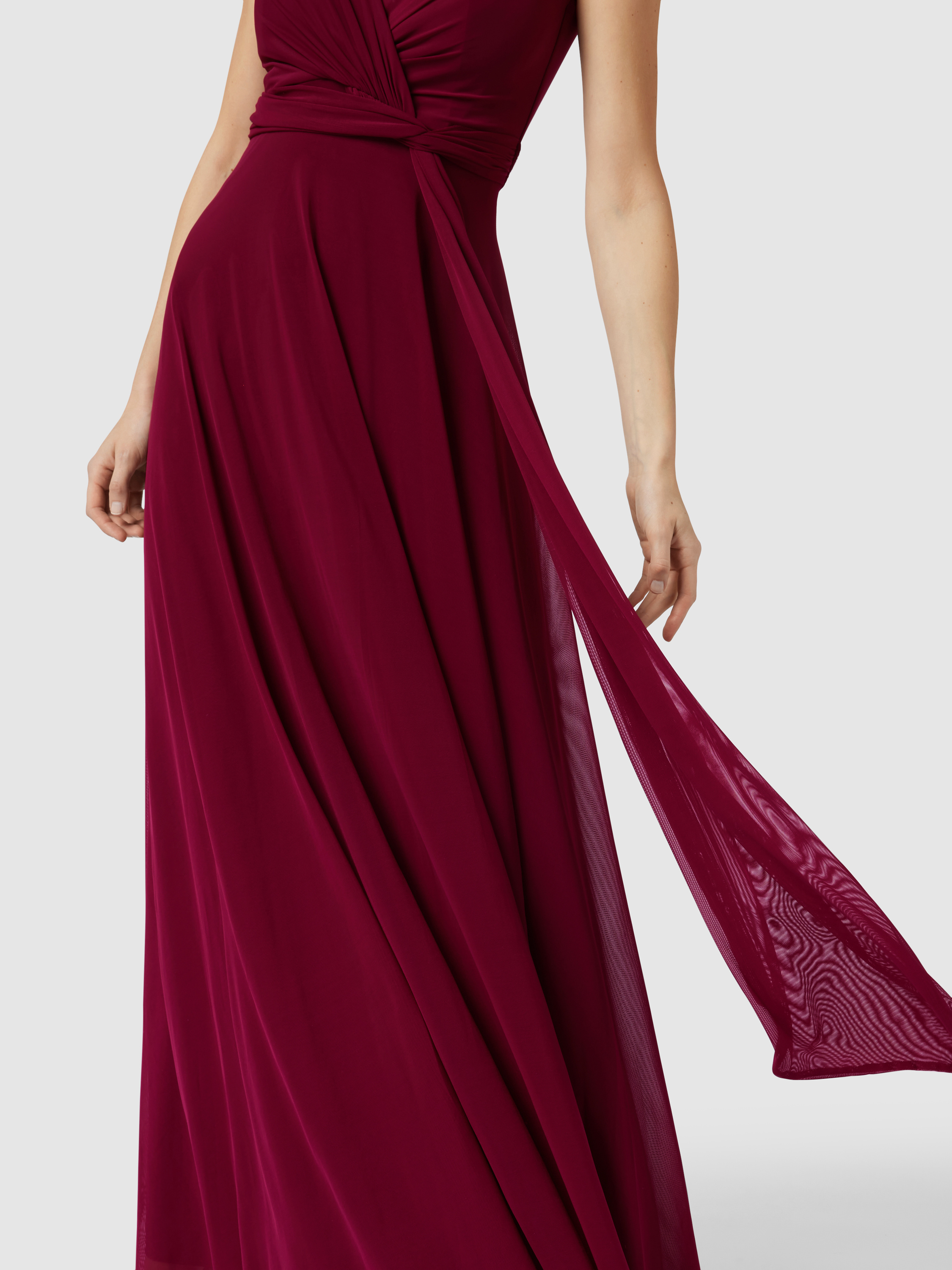 Sukienka wieczorowa z tasiemką w talii - wiśniowy