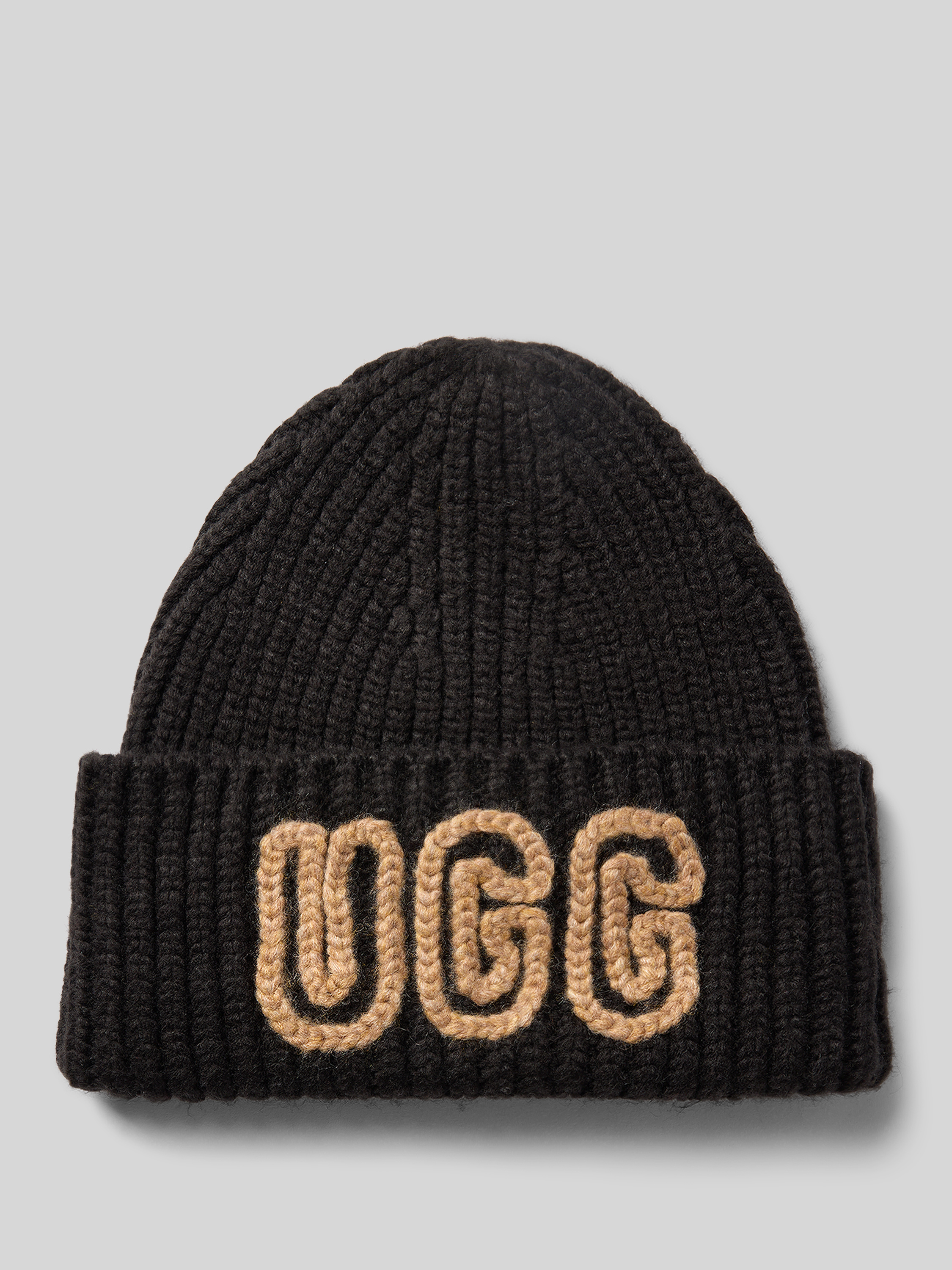 Czapka beanie z brzegiem i haftem z logo - czarny