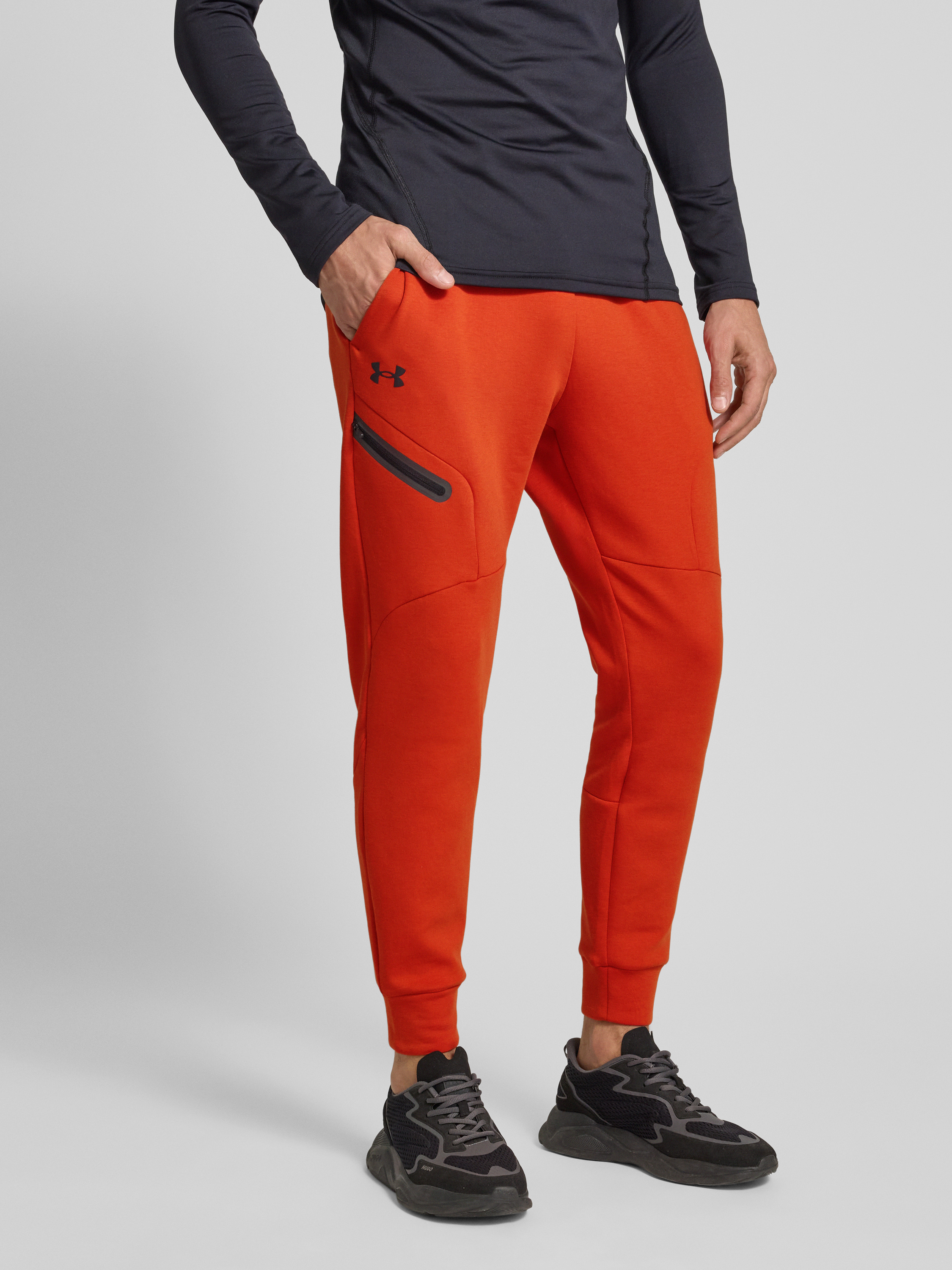 Spodnie dresowe o kroju slim fit z nadrukiem z logo model ‘Unstoppable’ - jasnoczerwony