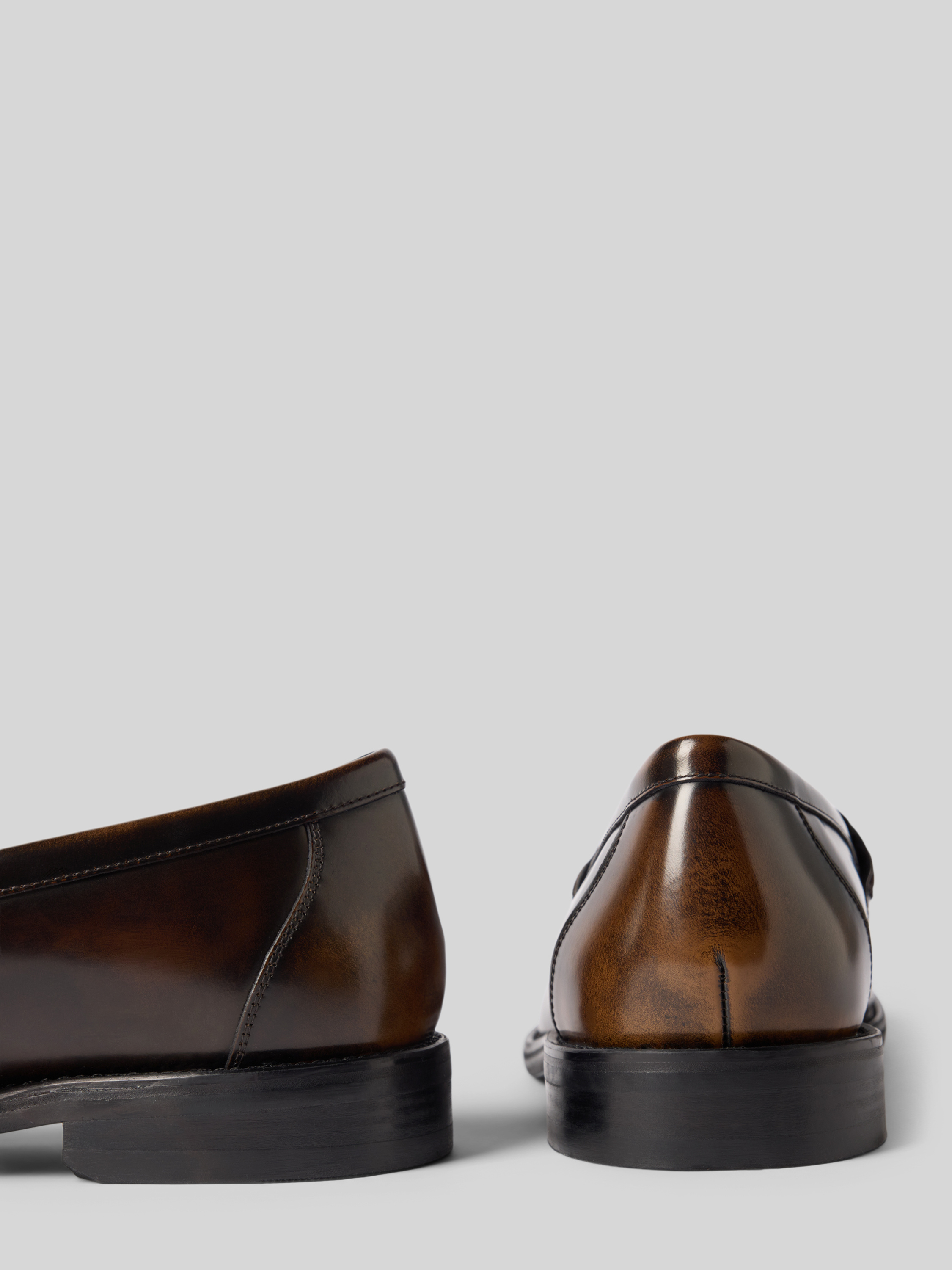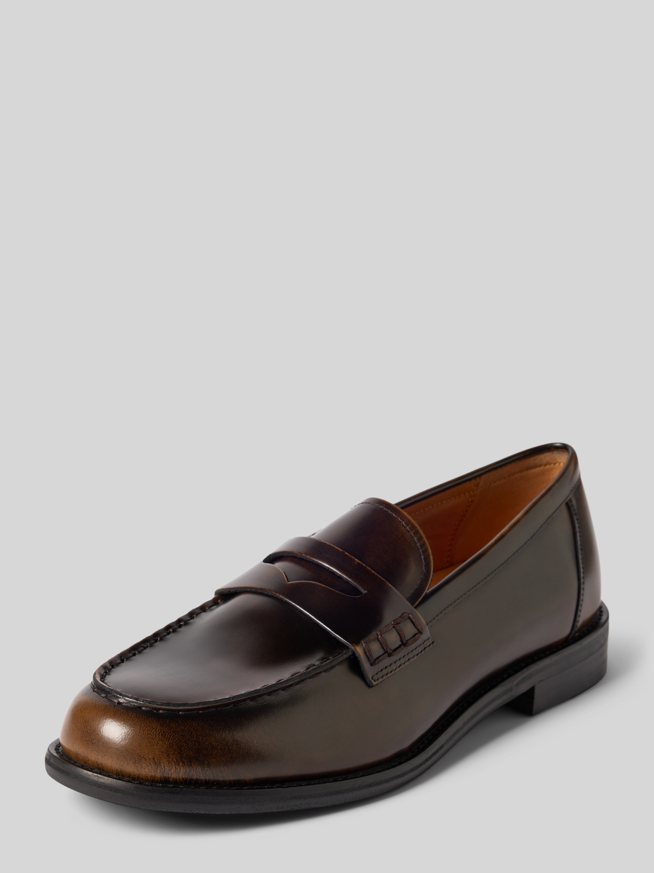 Klapki ze skóry bydlęcej model ‘LINN’ - ciemnobrązowy