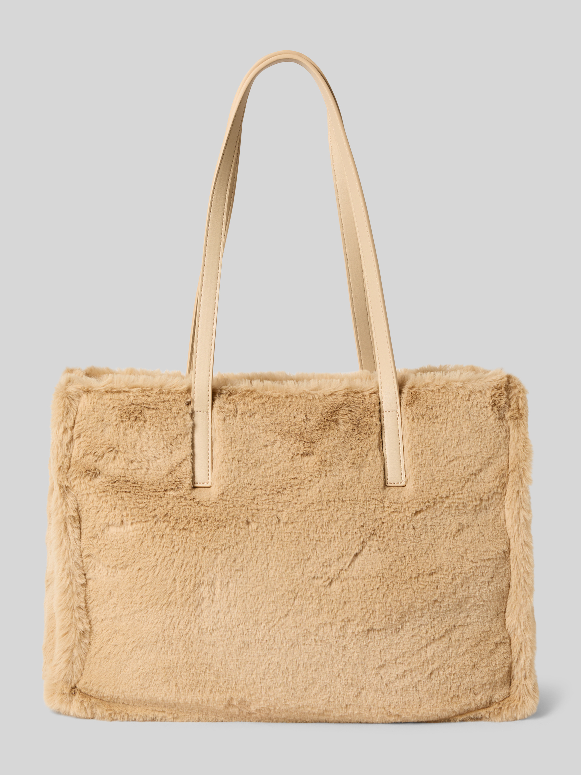 Torba shopper z imitacji futra z detalem z logo model ‘SPECIAL FADIA’ - piaskowy