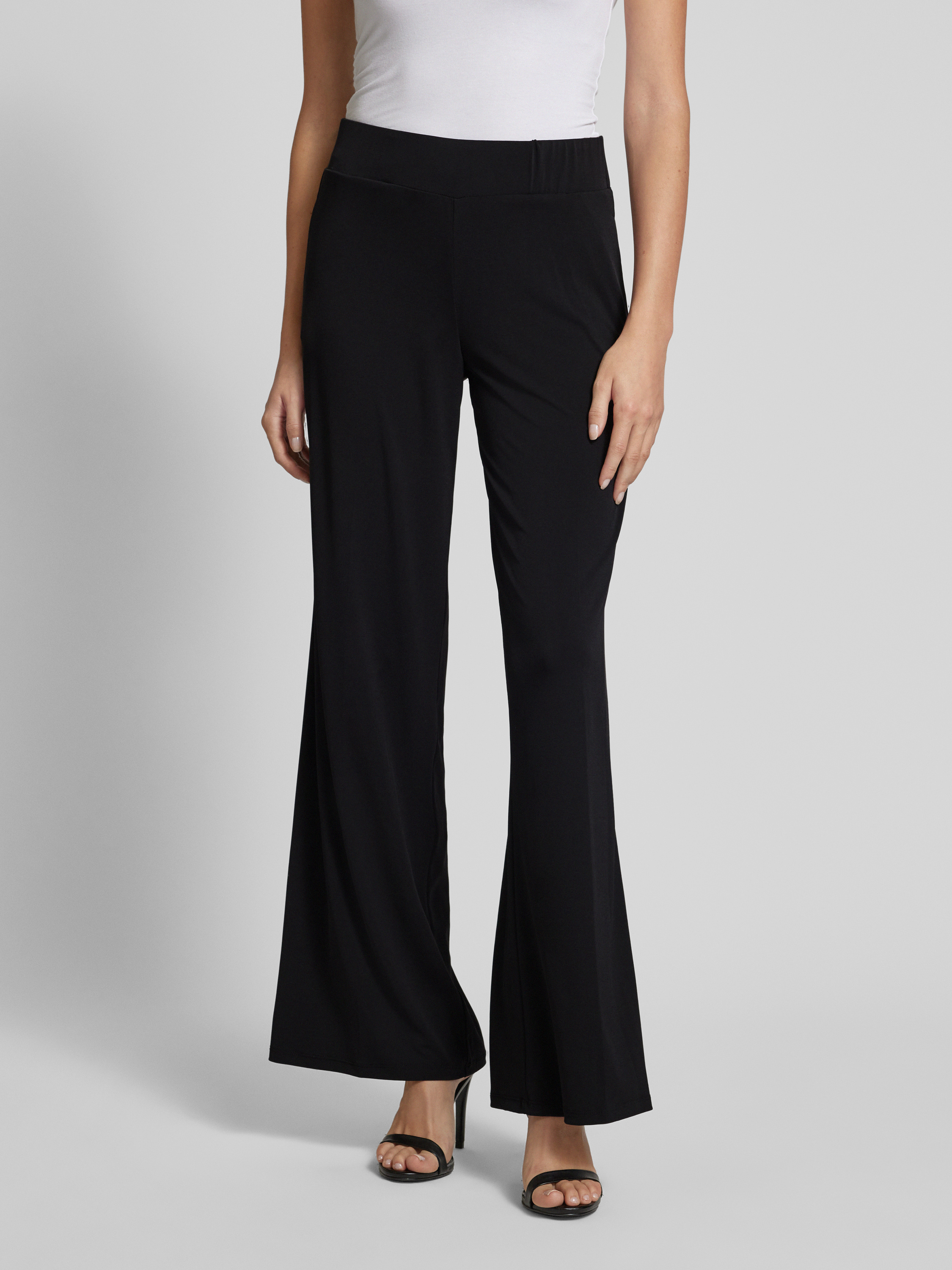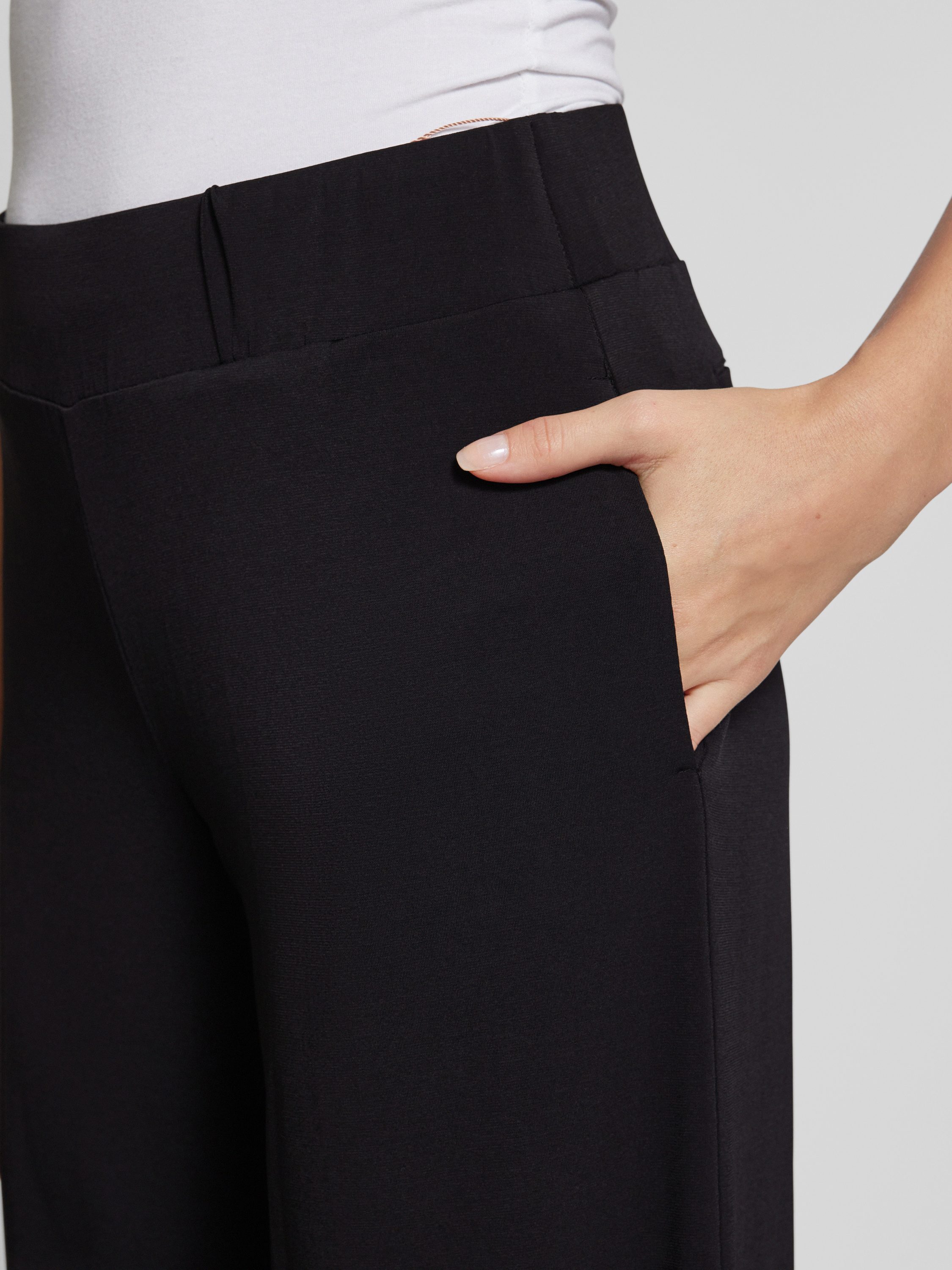 Spodnie materiałowe z prostą nogawką i elastycznym pasem - czarny