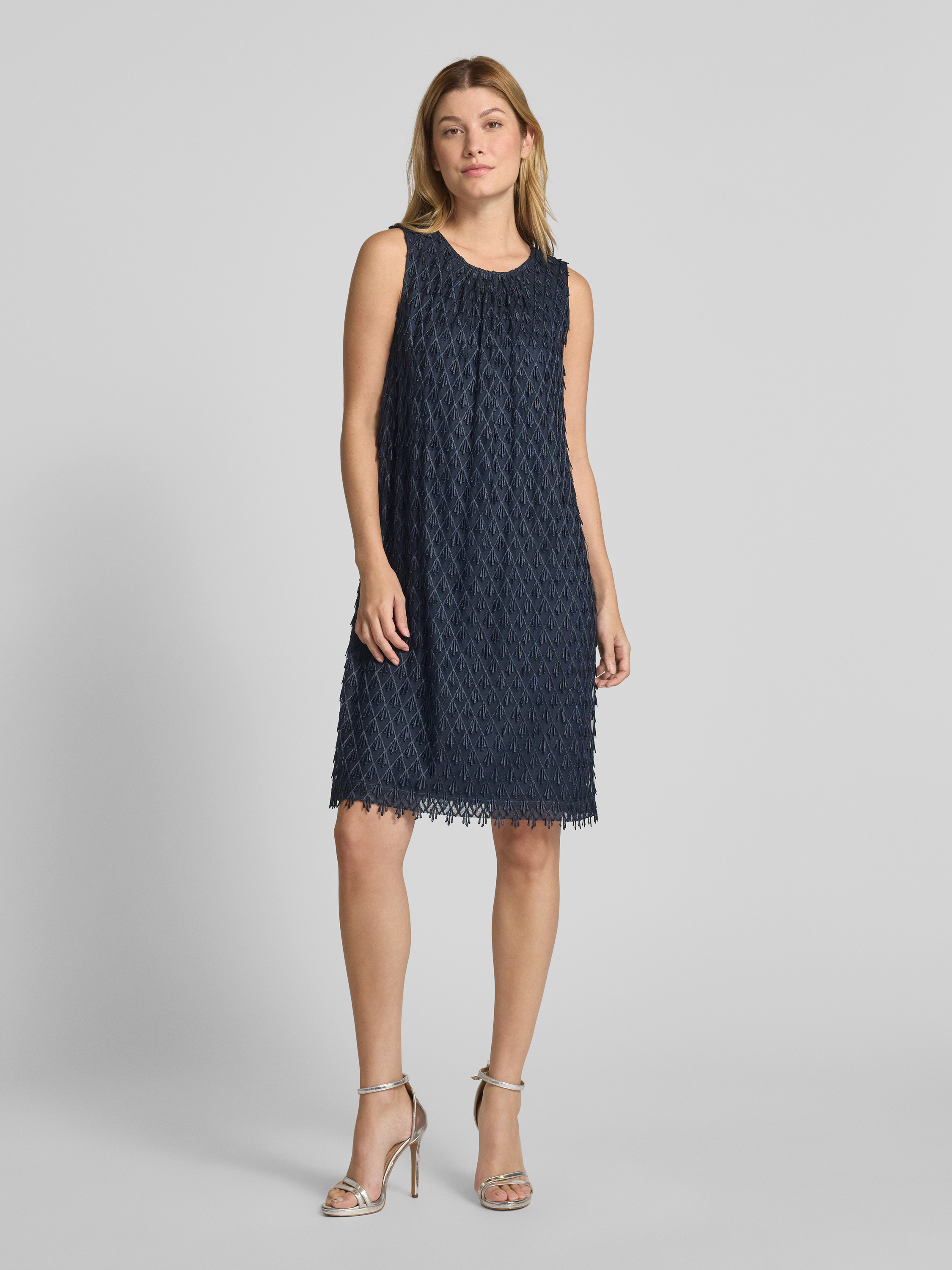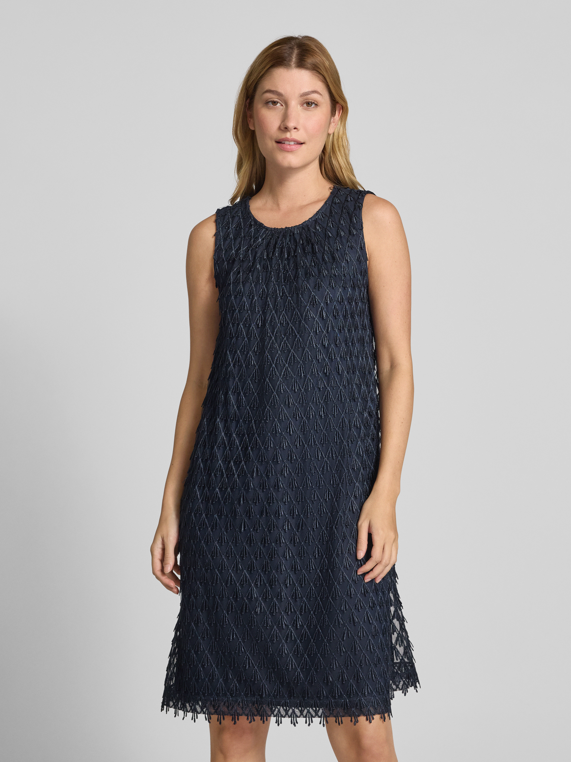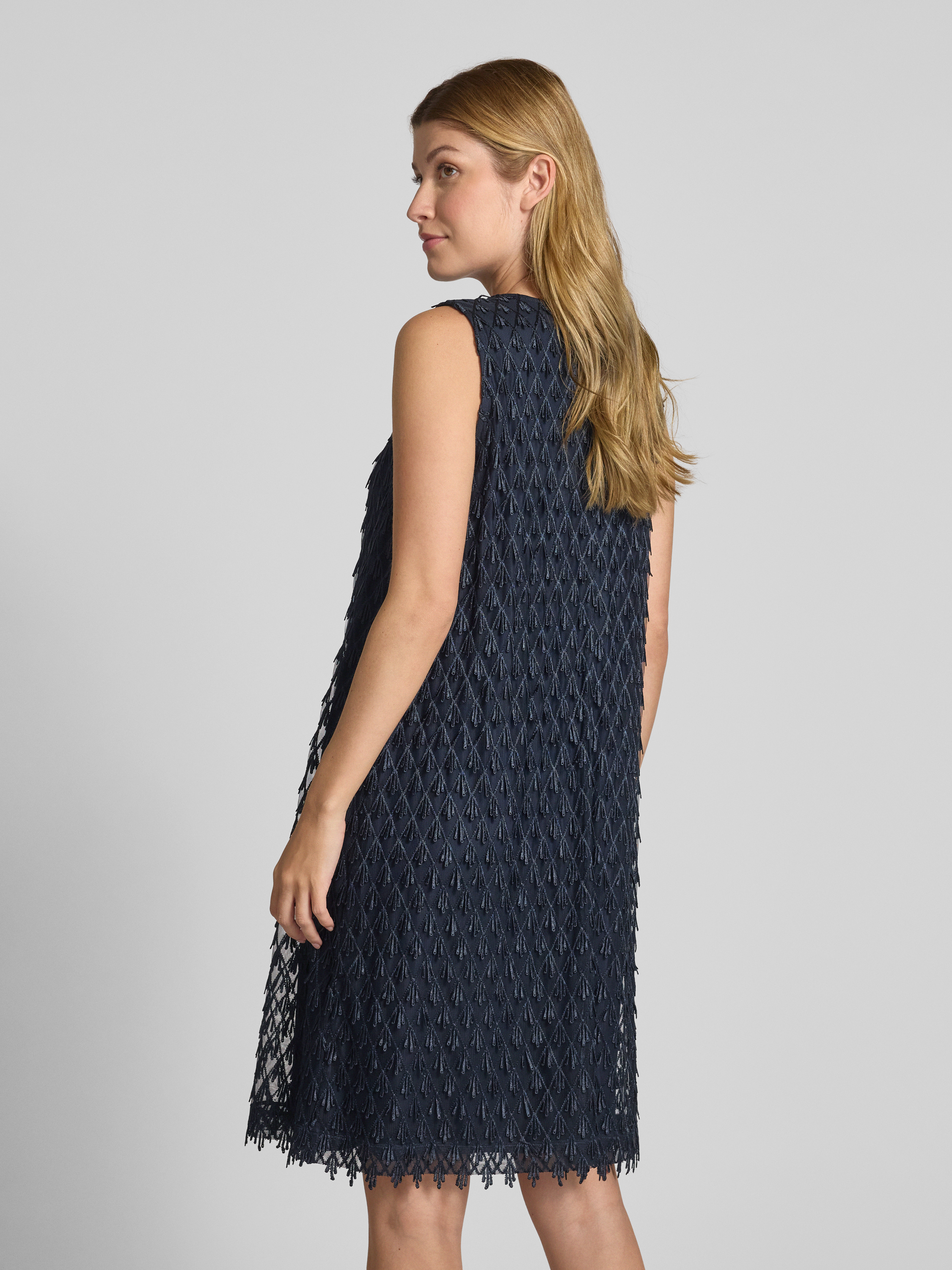 Sukienka koktajlowa o długości do kolan z aplikacjami na całej powierzchni - ciemnoniebieski