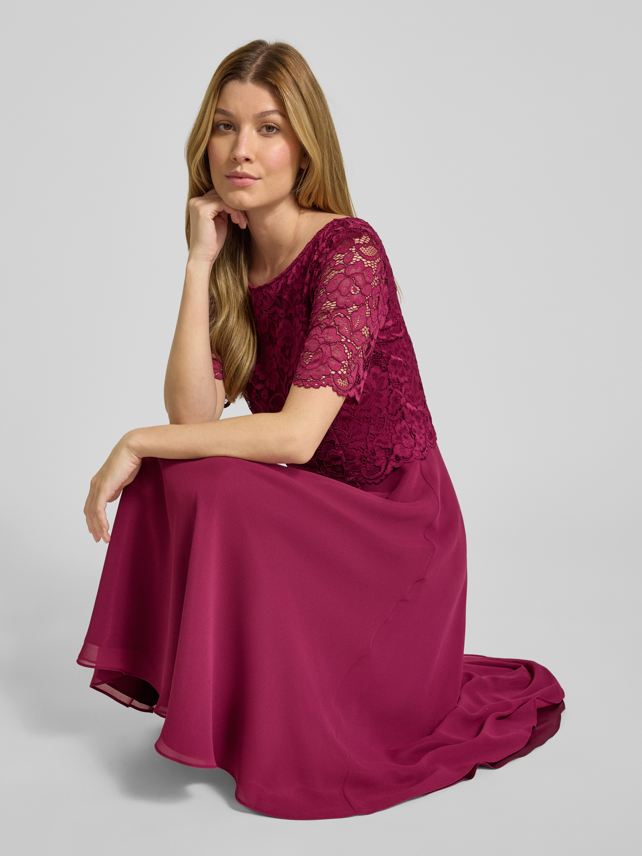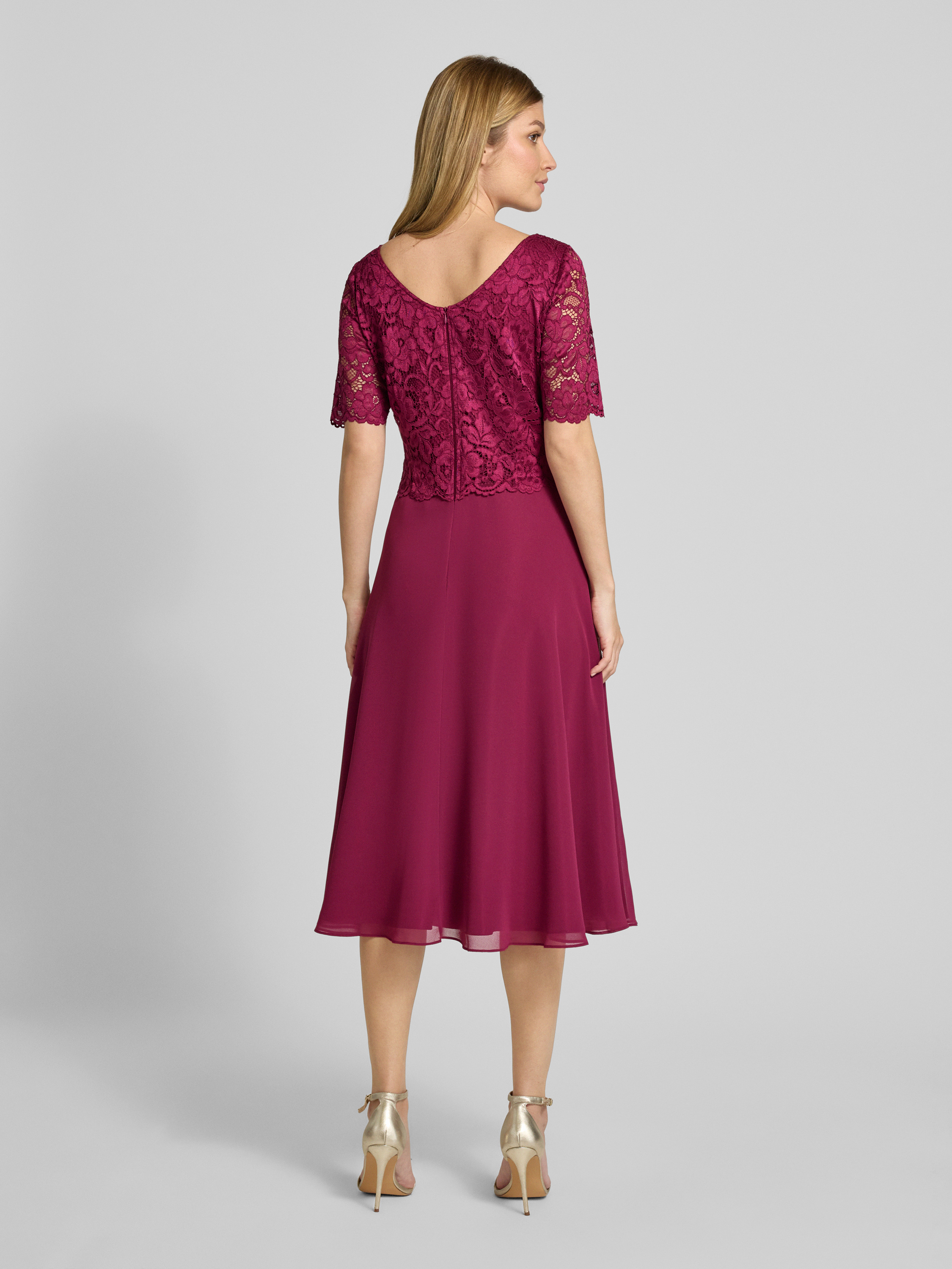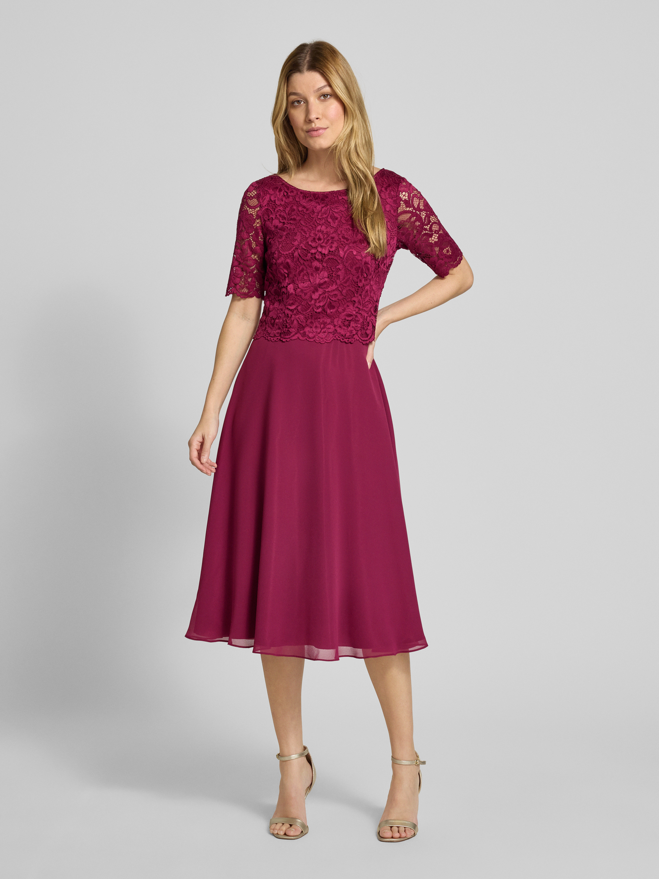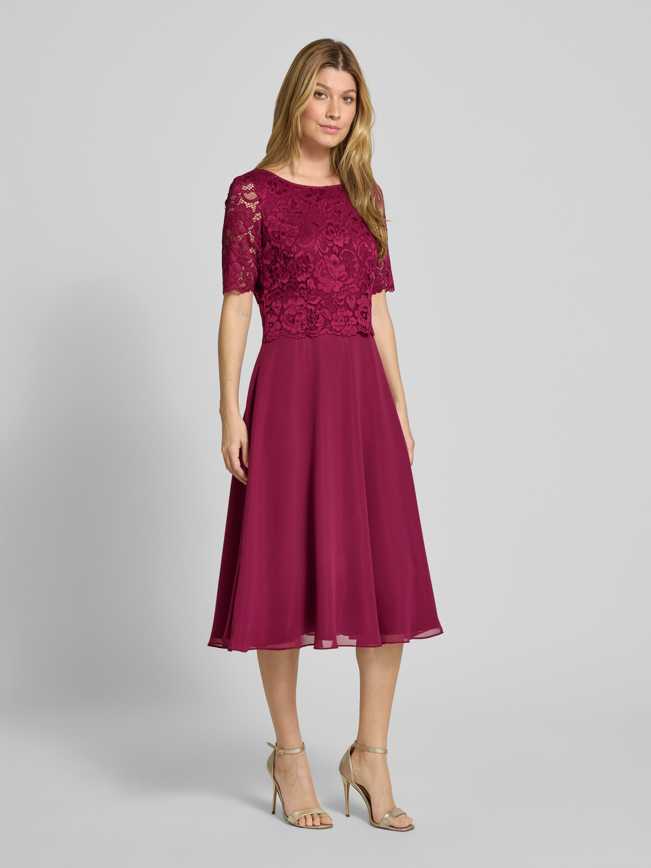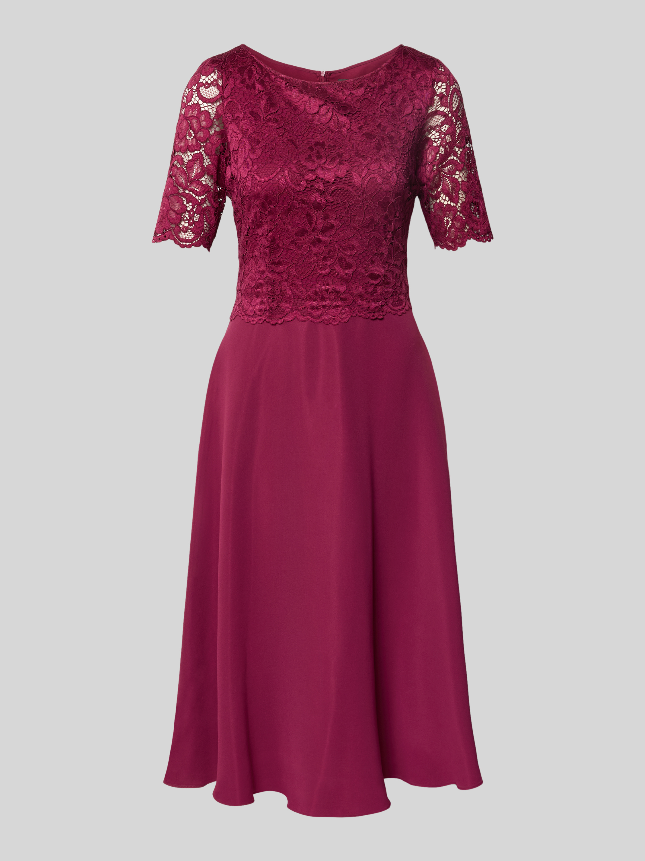 Sukienka koktajlowa o długości do kolan z koronką - bordowy