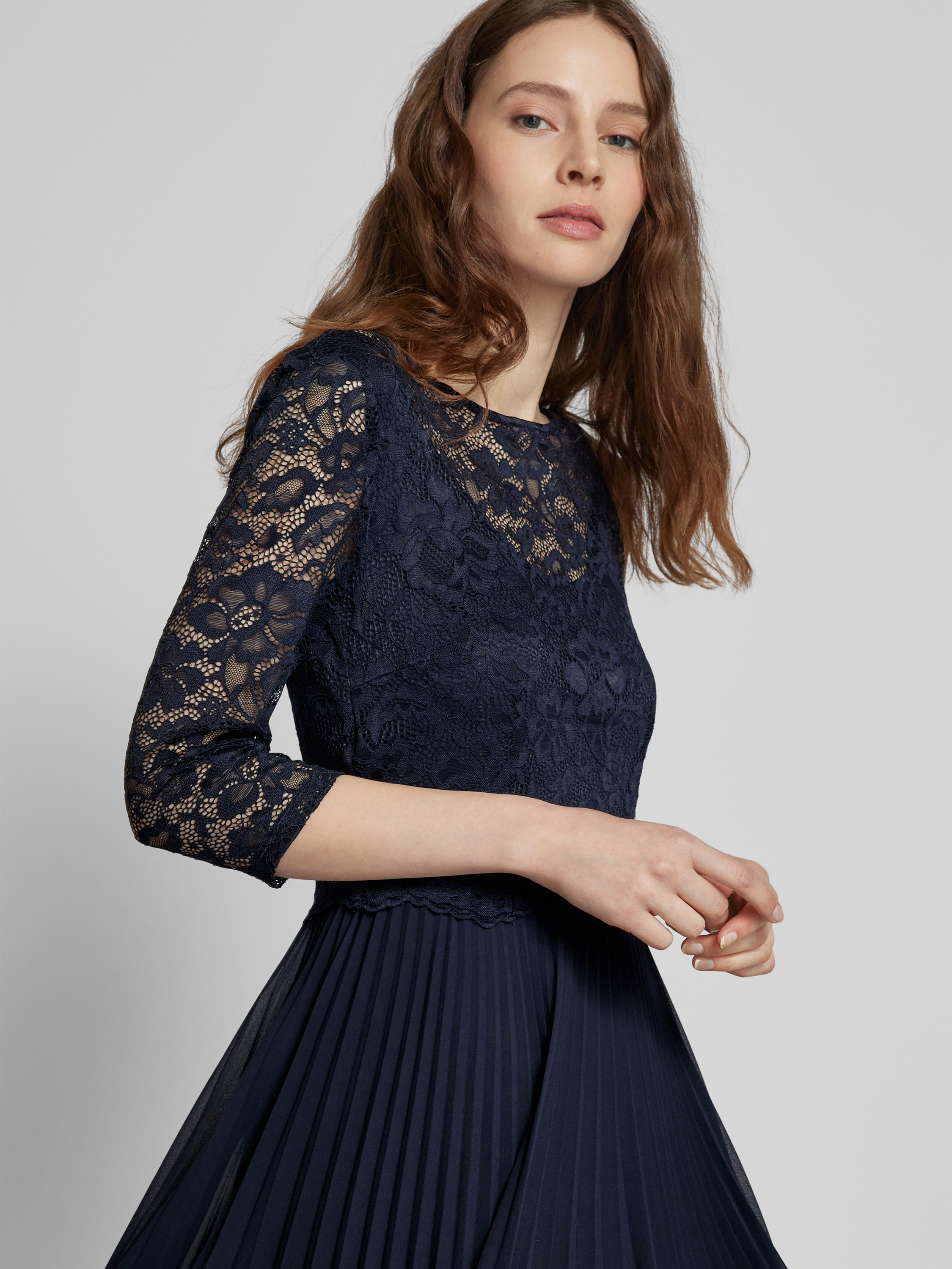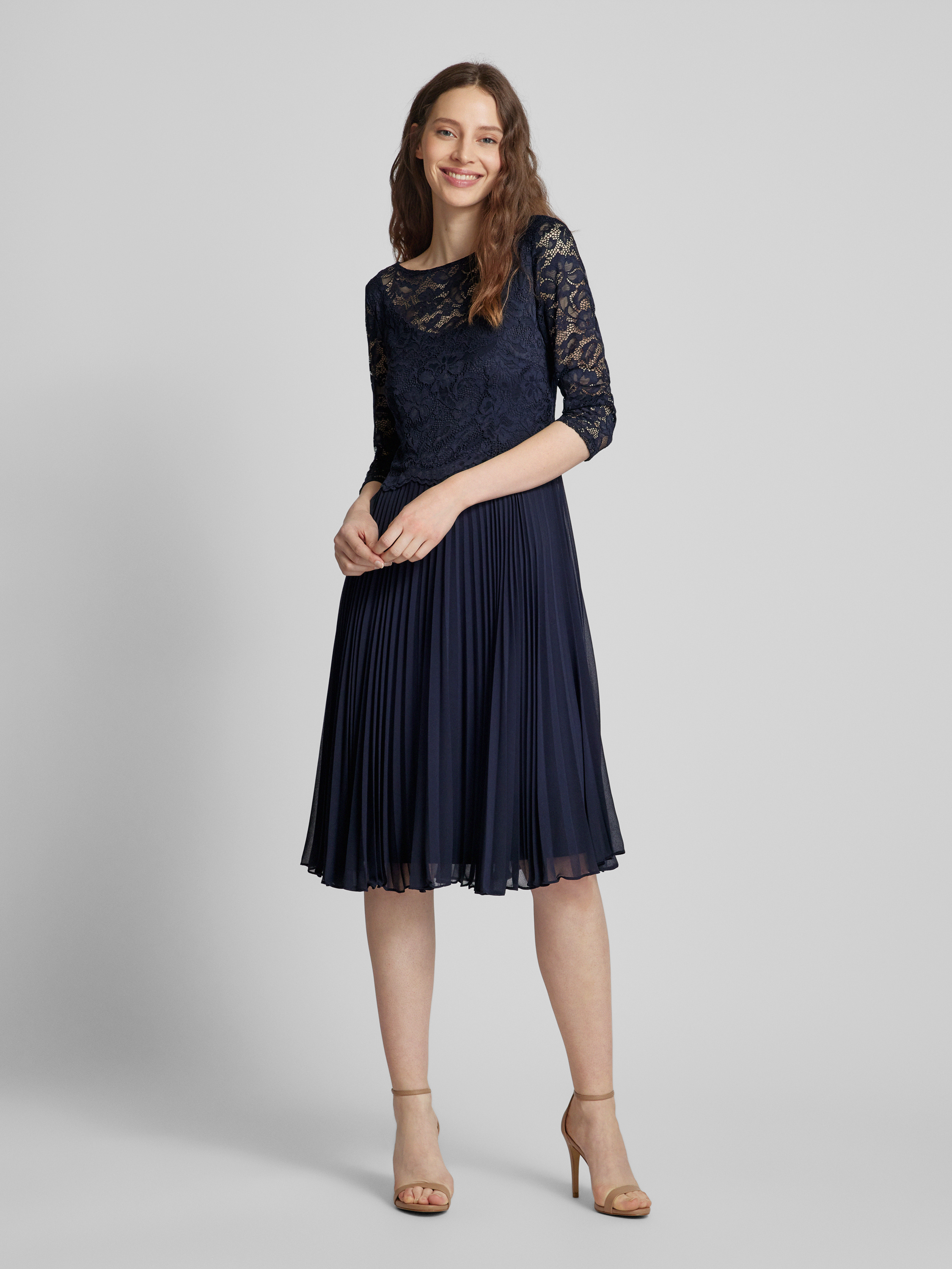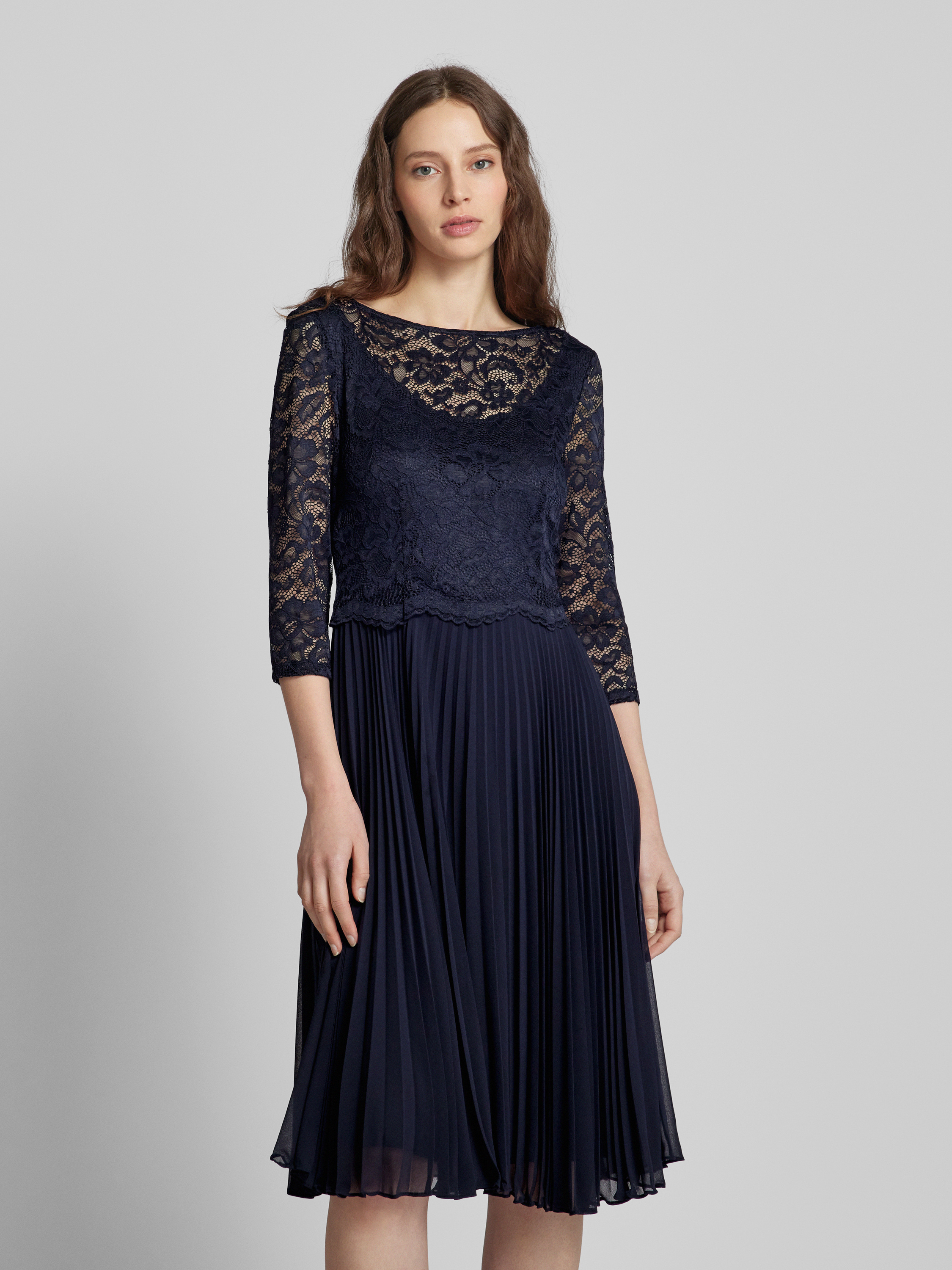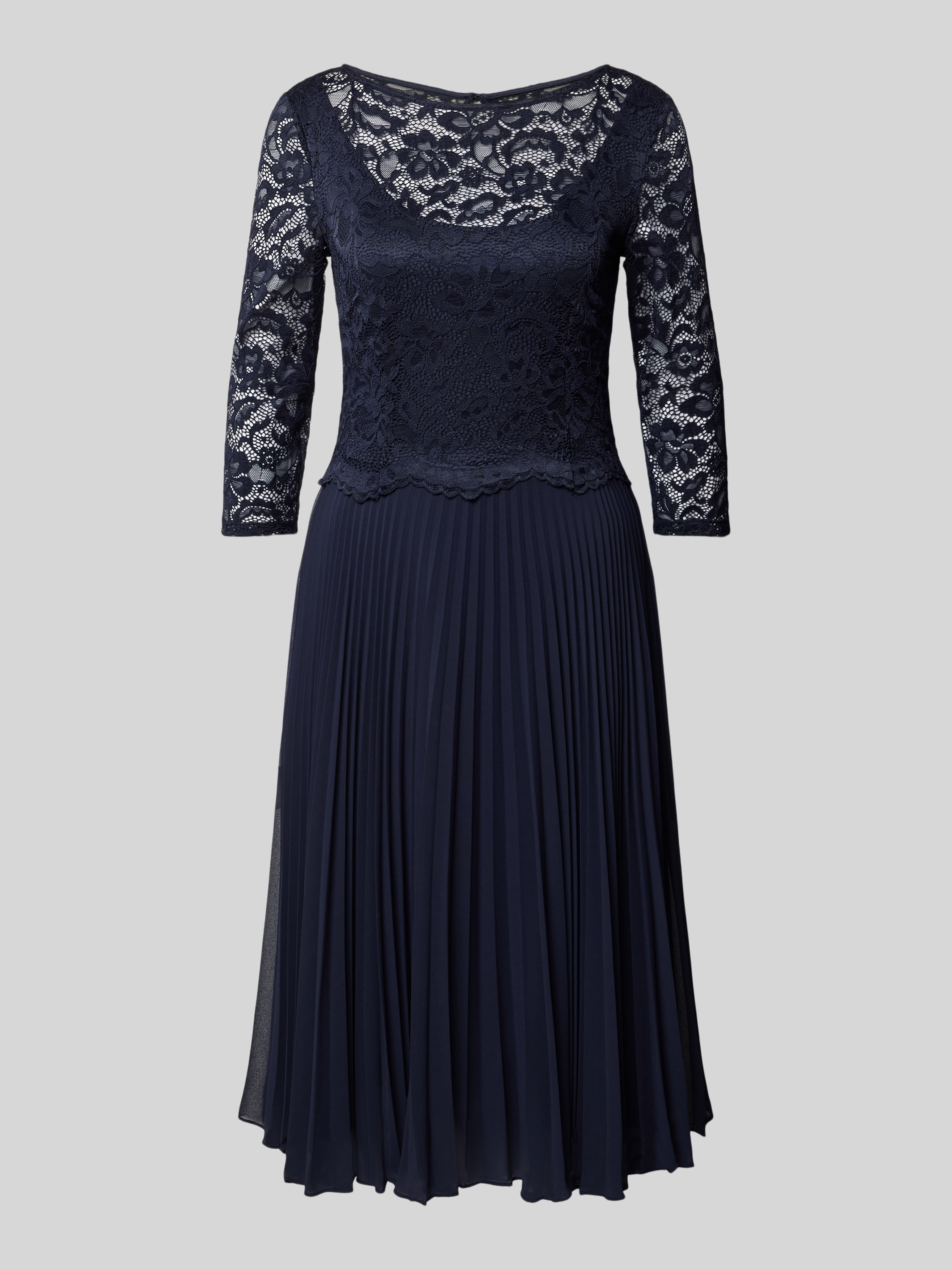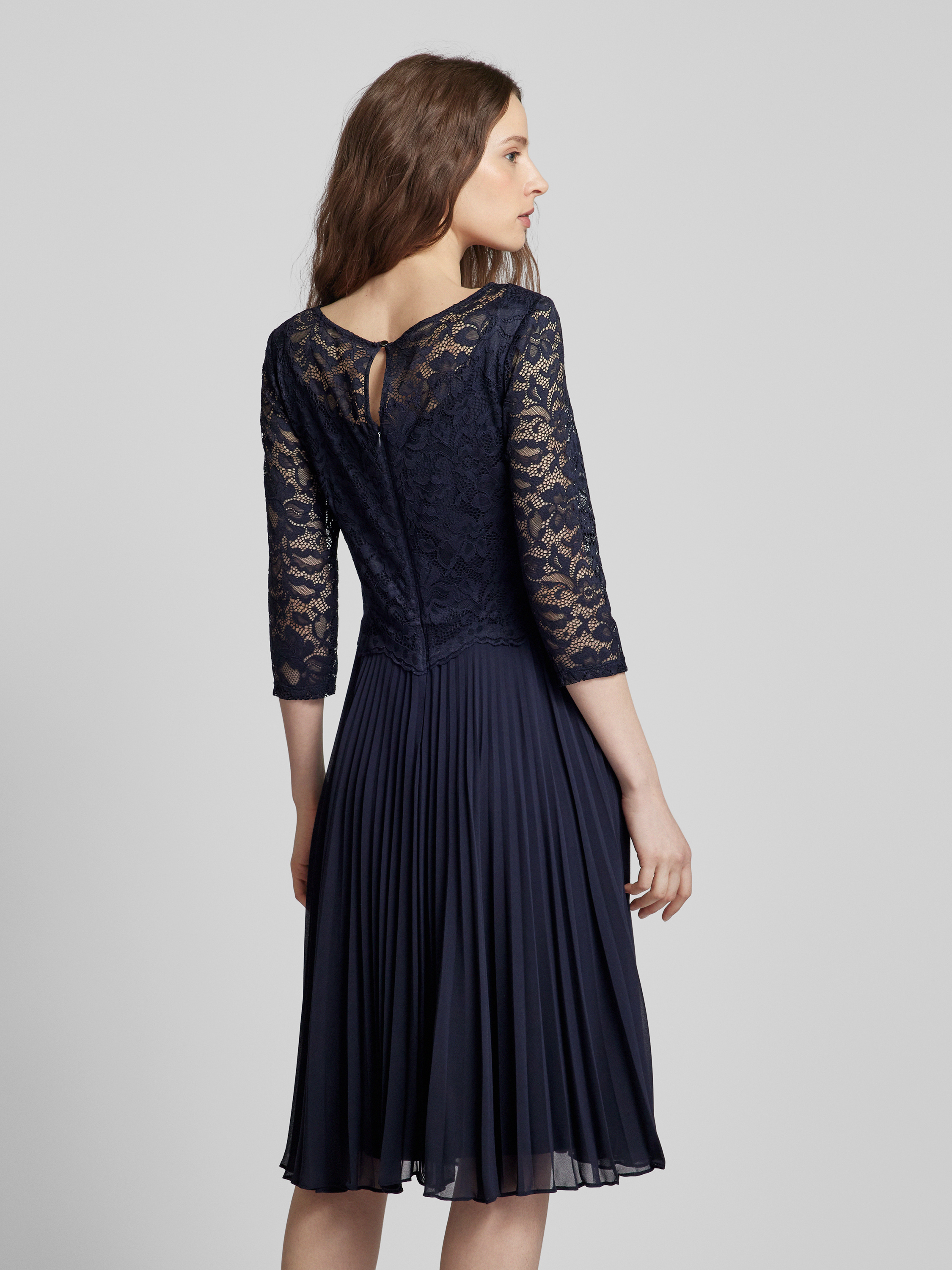 Sukienka koktajlowa o długości do kolan z obszyciem koronką - ciemnoniebieski